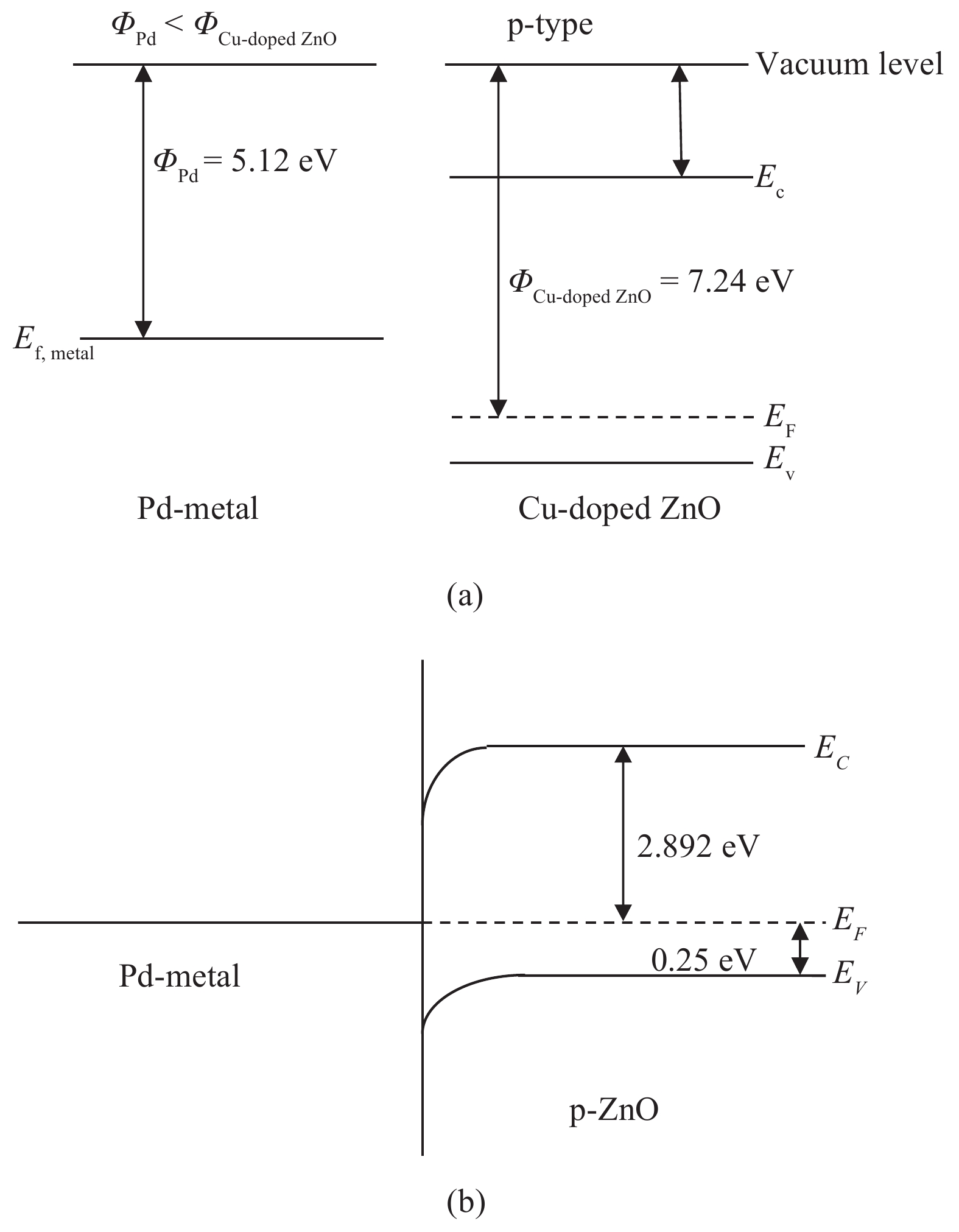 A systematic study of the behaviour of Pd/p-ZnO thin film Schottky diode has been reported. The p-type ZnO thin film with improved stability has been grown on n-type Si by doping ZnO with copper. Seebeck measurement confirmed the p-type nature of Cu-doped ZnO thin film. The X-ray diffraction spectra of the deposited film revealed polycrystalline nature with preferred growth orientation of (101) of ZnO film. The surface morphological study demonstrated the conformal deposition of a thin film over n-Si wafer. The estimated bandgap of Cu-doped p-type ZnO thin film from ellipsometric measurement turns out to be 3.14 eV at 300 K. The measured electrical parameters of the proposed Pd/p-ZnO Schottky diode have also been validated by the results of numerical simulation obtained by using ATLASTM device simulator.