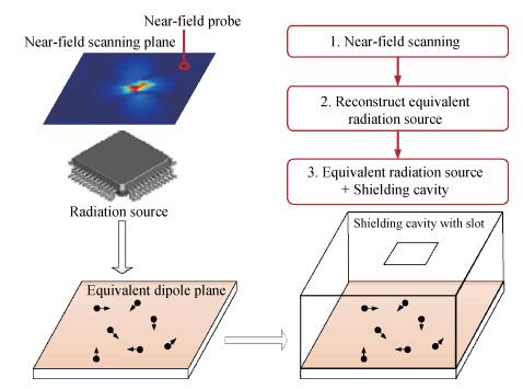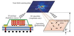 An equivalent radiation source method is proposed to characterize electromagnetic emission and interference of complex three dimensional integrated circuits (IC) in this paper. The method utilizes amplitude-only near-field scanning data to reconstruct an equivalent magnetic dipole array, and the differential evolution optimization algorithm is proposed to extract the locations, orientation and moments of those dipoles. By importing the equivalent dipoles model into a 3D full-wave simulator together with the victim circuit model, the electromagnetic interference issues in mixed RF/digital systems can be well predicted. A commercial IC is used to validate the accuracy and efficiency of this proposed method. The coupled power at the victim antenna port calculated by the equivalent radiation source is compared with the measured data. Good consistency is obtained which confirms the validity and efficiency of the method.
