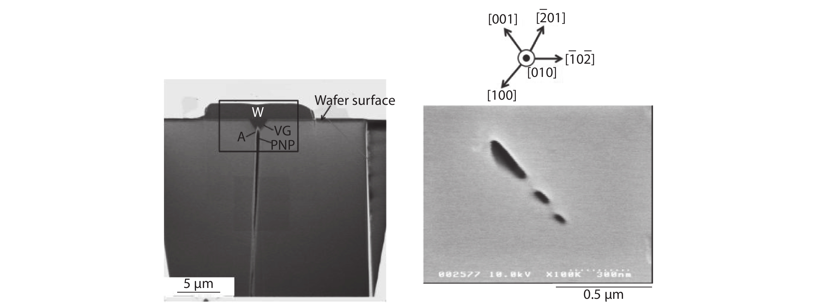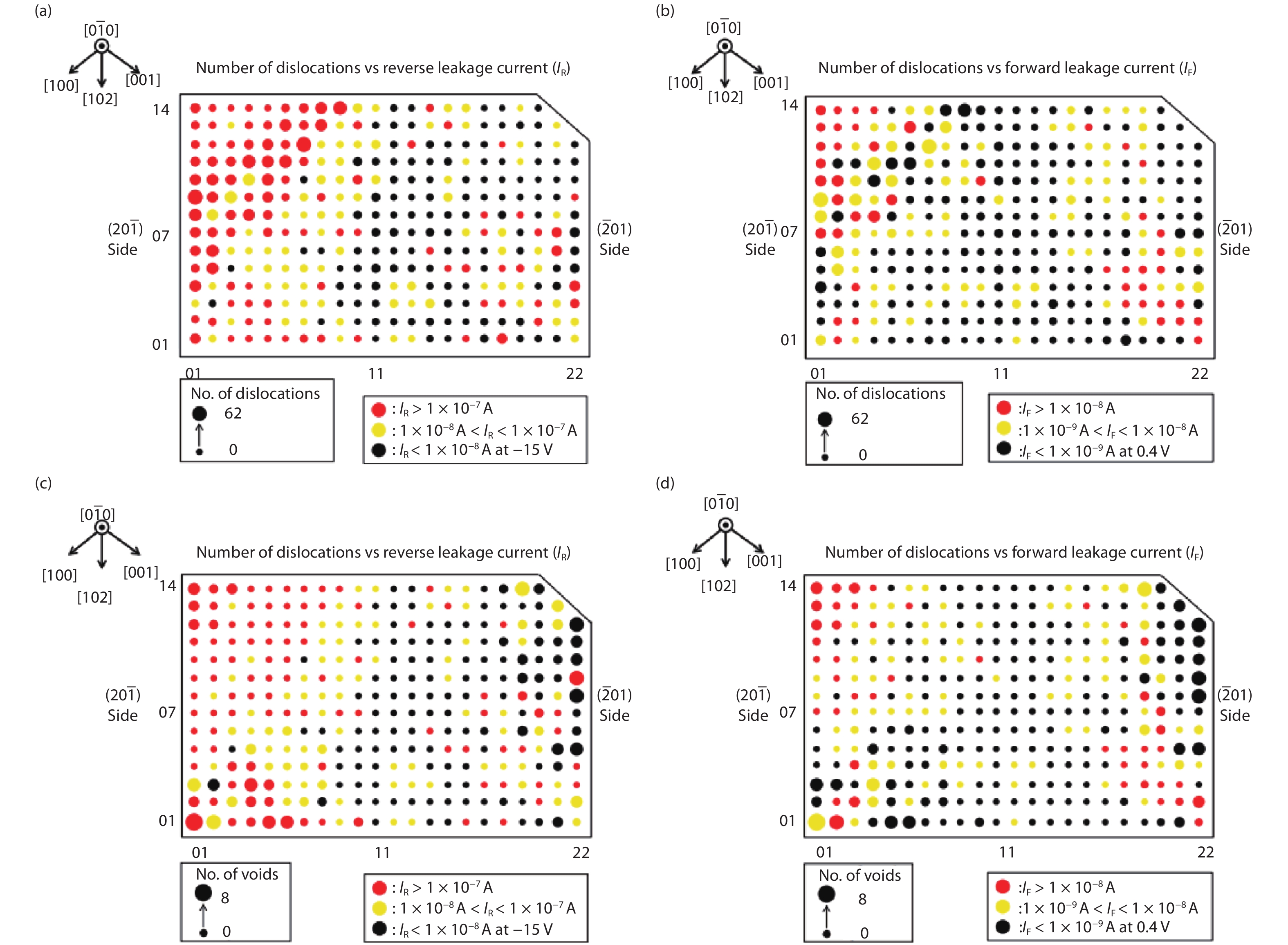 As a wide-bandgap semiconductor (WBG), β-Ga2O3 is expected to be applied to power electronics and solar blind UV photodetectors. In this review, defects in β-Ga2O3 single crystals were summarized, including dislocations, voids, twin, and small defects. Their effects on device performance were discussed. Dislocations and their surrounding regions can act as paths for the leakage current of SBD in single crystals. However, not all voids lead to leakage current. There’s no strong evidence yet to show small defects affect the electrical properties. Doping impurity was definitely irrelated to the leakage current. Finally, the formation mechanism of the defects was analyzed. Most small defects were induced by mechanical damages. The screw dislocation originated from a subgrain boundary. The edge dislocation lying on a plane slightly tilted towards the (102) plane, the (101) being the possible slip plane. The voids defects like hollow nanopipes, PNPs, NSGs and line-shaped grooves may be caused by the condensation of excess oxygen vacancies, penetration of tiny bubbles or local meltback. The nucleation of twin lamellae occurred at the initial stage of " shoulder part” during the crystal growth. These results are helpful in controlling the occurrence of crystal defects and improving the device performance.