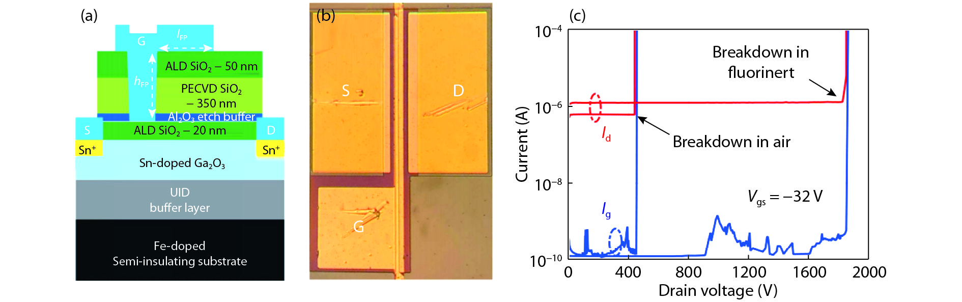 As a promising ultra-wide bandgap semiconductor, gallium oxide (Ga2O3) has attracted increasing attention in recent years. The high theoretical breakdown electrical field (8 MV/cm), ultra-wide bandgap (~ 4.8 eV) and large Baliga’s figure of merit (BFOM) of Ga2O3 make it a potential candidate material for next generation high-power electronics, including diode and field effect transistor (FET). In this paper, we introduce the basic physical properties of Ga2O3 single crystal, and review the recent research process of Ga2O3 based field effect transistors. Furthermore, various structures of FETs have been summarized and compared, and the potential of Ga2O3 is preliminary revealed. Finally, the prospect of the Ga2O3 based FET for power electronics application is analyzed.