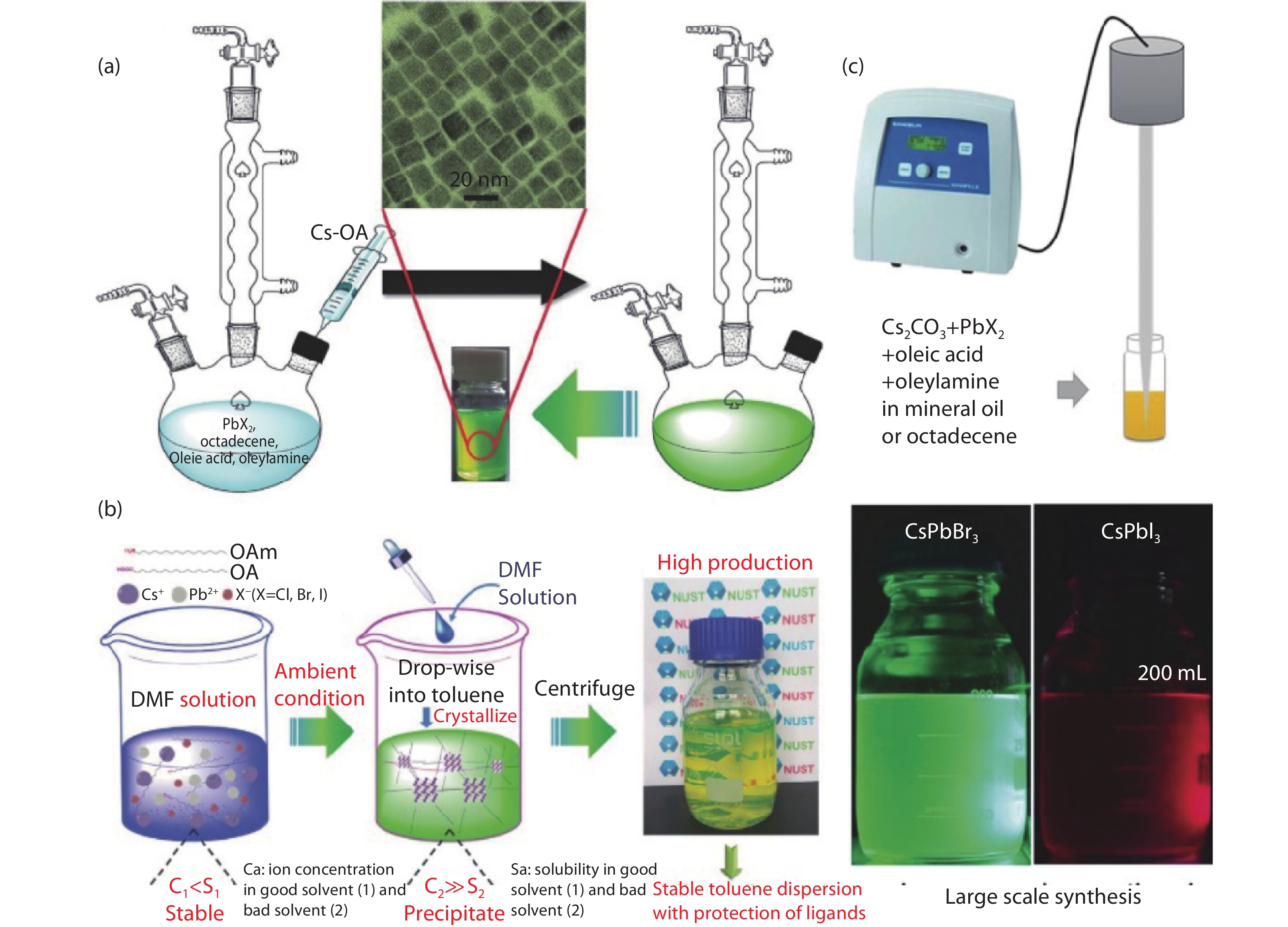 In the past five years, all-inorganic metal halide perovskite (CsPbX3, X = Cl, Br, I) nanocrystals have been intensely studied due to their outstanding optical properties and facile synthesis, which endow them with potential optoelectronic applications. In order to optimize their physical and chemical properties, different strategies have been developed to realize the controllable synthesis of CsPbX3 nanocrystals. In this short review, we firstly present a comprehensive and detailed summary of existed synthesis strategies of CsPbX3 nanocrystals and their analogues. Then, we introduce the regulations of several reaction parameters and their effects on the morphologies of CsPbX3 nanocrystals. At the same time, we provide stability improvement methods and representative applications. Finally, we propose the current challenges and future perspectives of the promising materials.