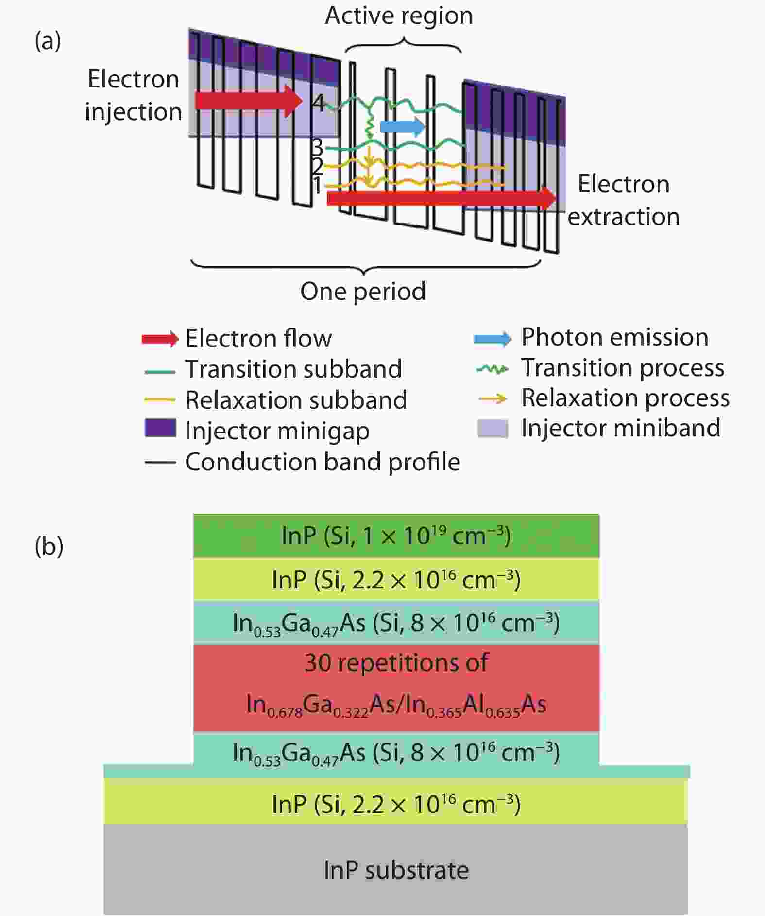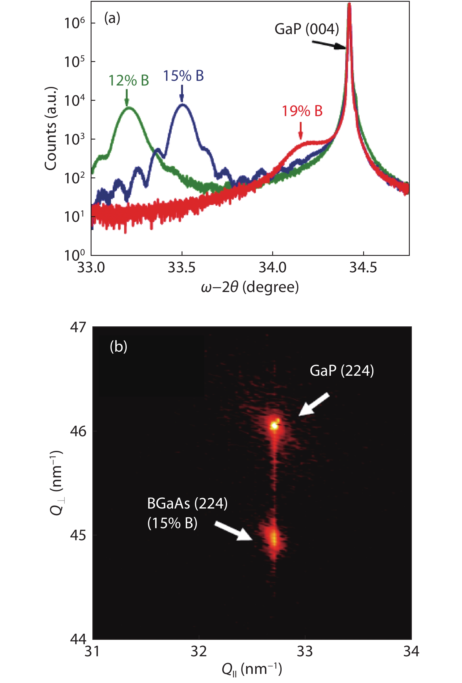 Optoelectronic devices on silicon substrates are essential not only to the optoelectronic integrated circuit but also to low-cost lasers, large-area detectors, and so forth. Although heterogeneous integration of III–V semiconductors on Si has been well-developed, the thermal dissipation issue and the complicated fabrication process still hinders the development of these devices. The monolithic growth of III–V materials on Si has also been demonstrated by applying complicated buffer layers or interlayers. On the other hand, the growth of lattice-matched B-doped group-III–V materials is an attractive area of research. However, due to the difficulty in growth, the development is still relatively slow. Herein, we present a comprehensive review of the recent achievements in this field. We summarize and discuss the conditions and mechanisms involved in growing B-doped group-III–V materials. The unique surface morphology, crystallinity, and optical properties of the epitaxy correlating with their growth conditions are discussed, along with their respective optoelectronic applications. Finally, we detail the obstacles and challenges to exploit the potential for such practical applications fully.
