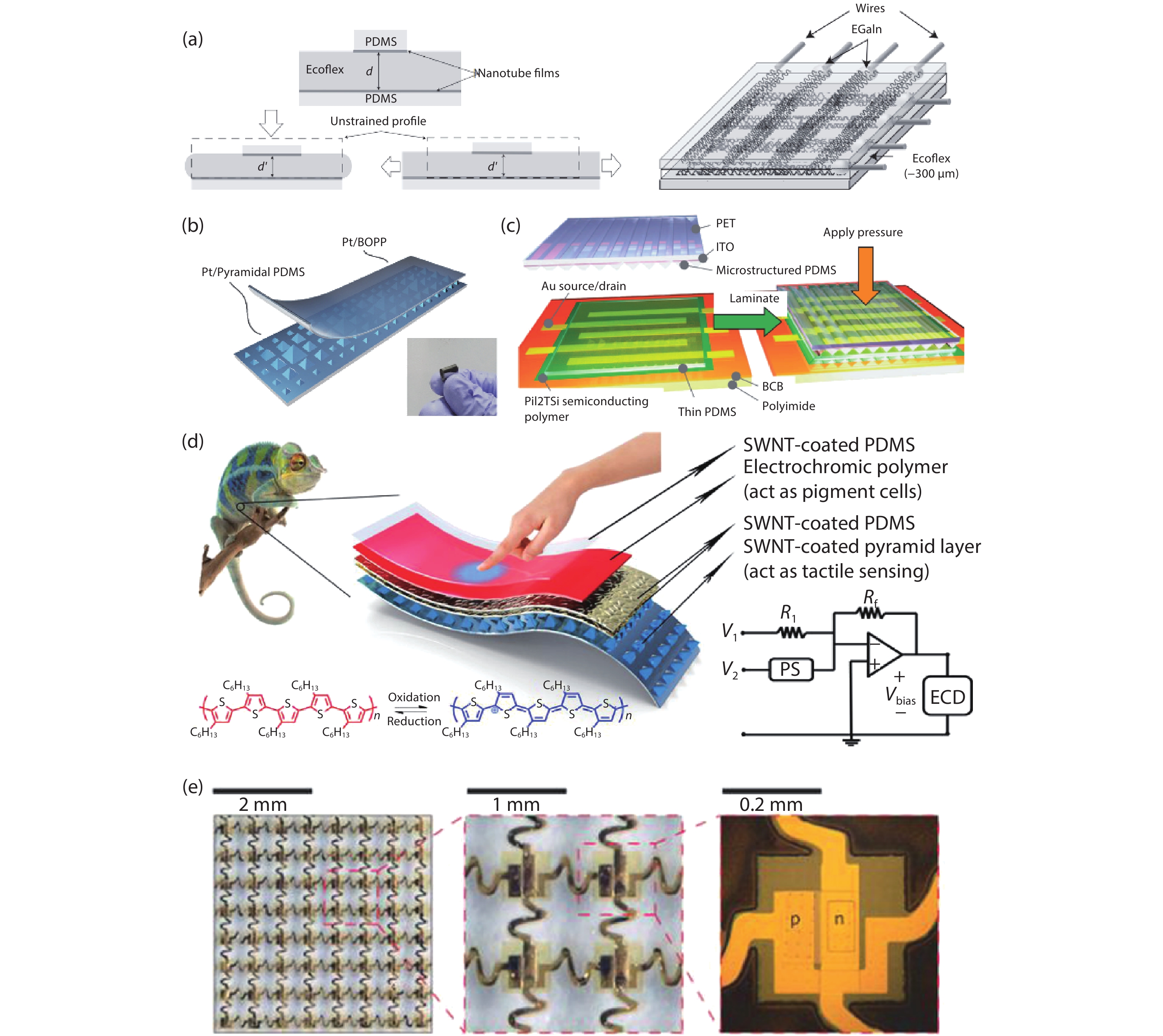Current electronics are driven by advanced microfabrication for fast and efficient information processing. In spite of high performance, these wafer-based devices are rigid, non-degradable, and unable to autonomous repair. Skin-inspired electronics have emerged as a new class of devices and systems for next-generation flexible and wearable electronics. The technology gains inspiration from the structures, properties, and sensing mechanisms of the skin, which may find a broad range of applications in cutting-edge fields such as healthcare monitoring, human-machine interface, and soft robotics/prostheses. Practical demands have fueled the development of electronic materials with skin-like properties in terms of stretchability, self-healing capability, and biodegradability. These materials provide the basis for functional sensors with innovative and biomimetic designs. Further system-level integrations and optimizations enable new forms of electronics for real-world applications. This review summarizes recent advancements in this active area and speculates on future directions.