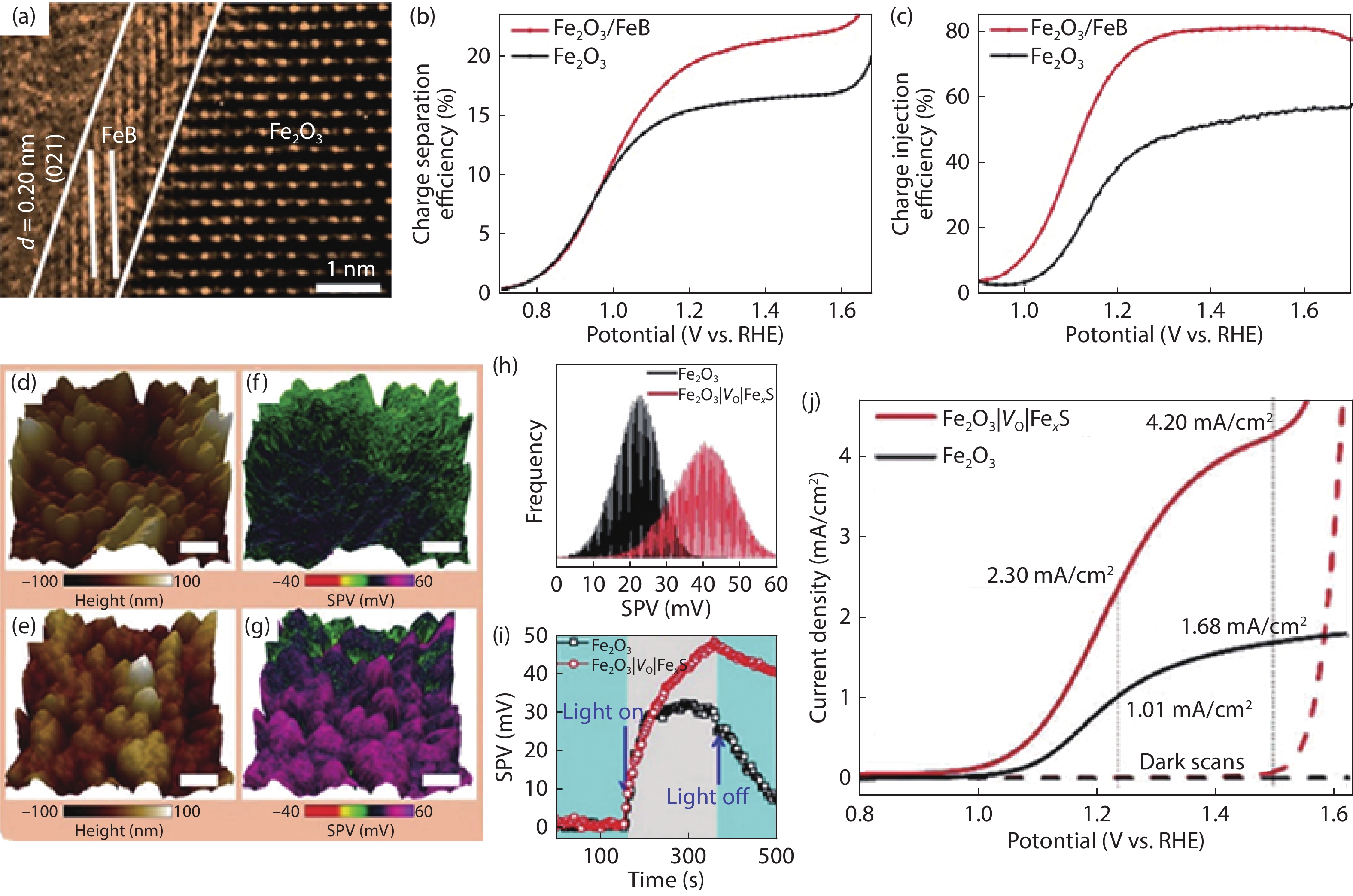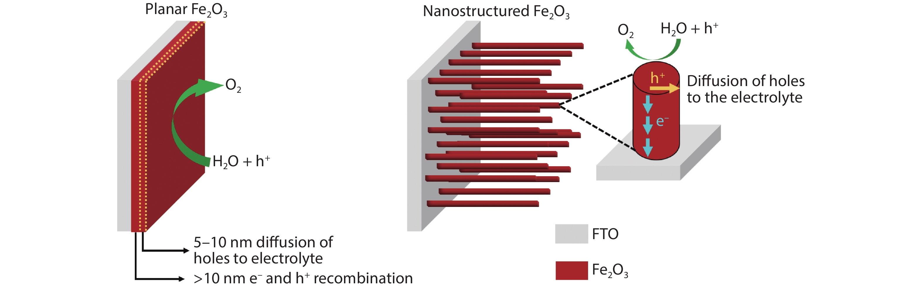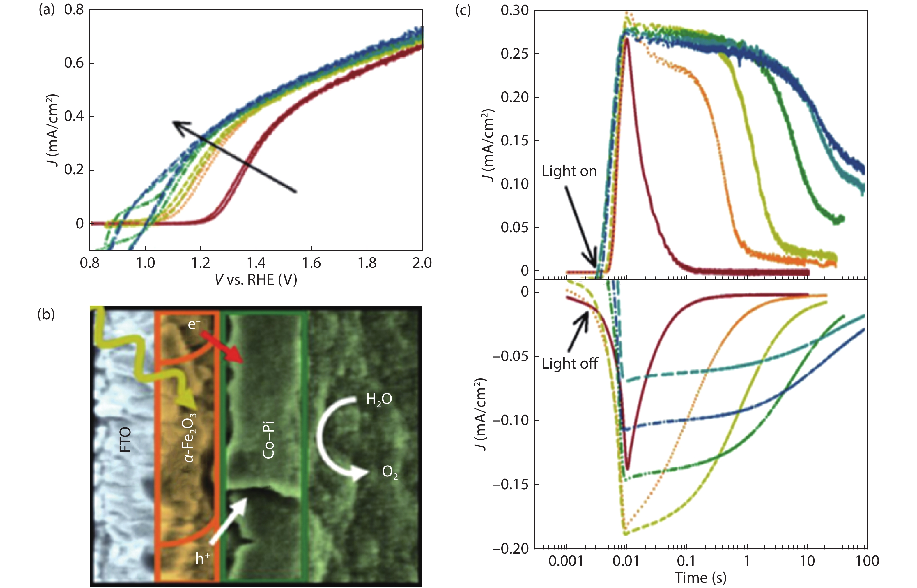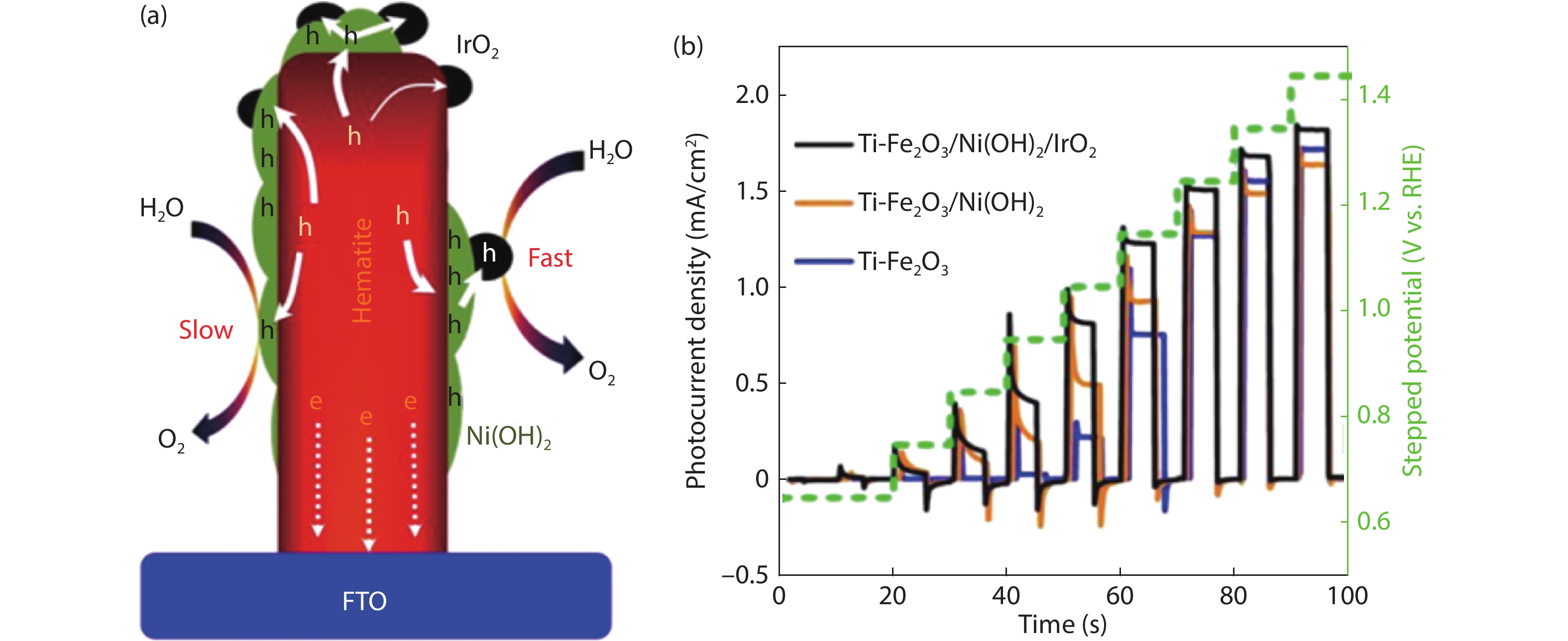 Hydrogen can be sustainably produced through photoelectrochemical (PEC) water splitting. The process of PEC water splitting is composed of two vital half-reactions: water oxidation to O2 on photoanode, and proton reduction to H2 on photocathode. Both in thermodynamics and kinetics, the oxidation of water on photoanode is much more challenging, because the formation of O2 involves the four-holes reaction process that is more difficult than the two-protons reduction. Accordingly, the oxidation of water into O2 is the rate-determining reaction for PEC water splitting, which is closely affected by the light harvesting, charge separation and transfer, as well as surface activity of photoanode. In principle, water oxidation is initiated by the photo-excited charge of photoanode. In this review, we took hematite photoanode as a typical example to illustrate the progress in modifying the charge separation and migration property of metal-oxide photoanodes for water oxidation. The typical strategies adopted to facilitate the charge transfer and separation of hematite photoanode were specifically summarized. In addition, the views designing and developing hematite photoanode with high-performance for water oxidation were presented. This review provides comprehensive information about the state-of-the-art progress of hematite-based photoanodes and forecast the developing directions of photoanode materials for solar water splitting.