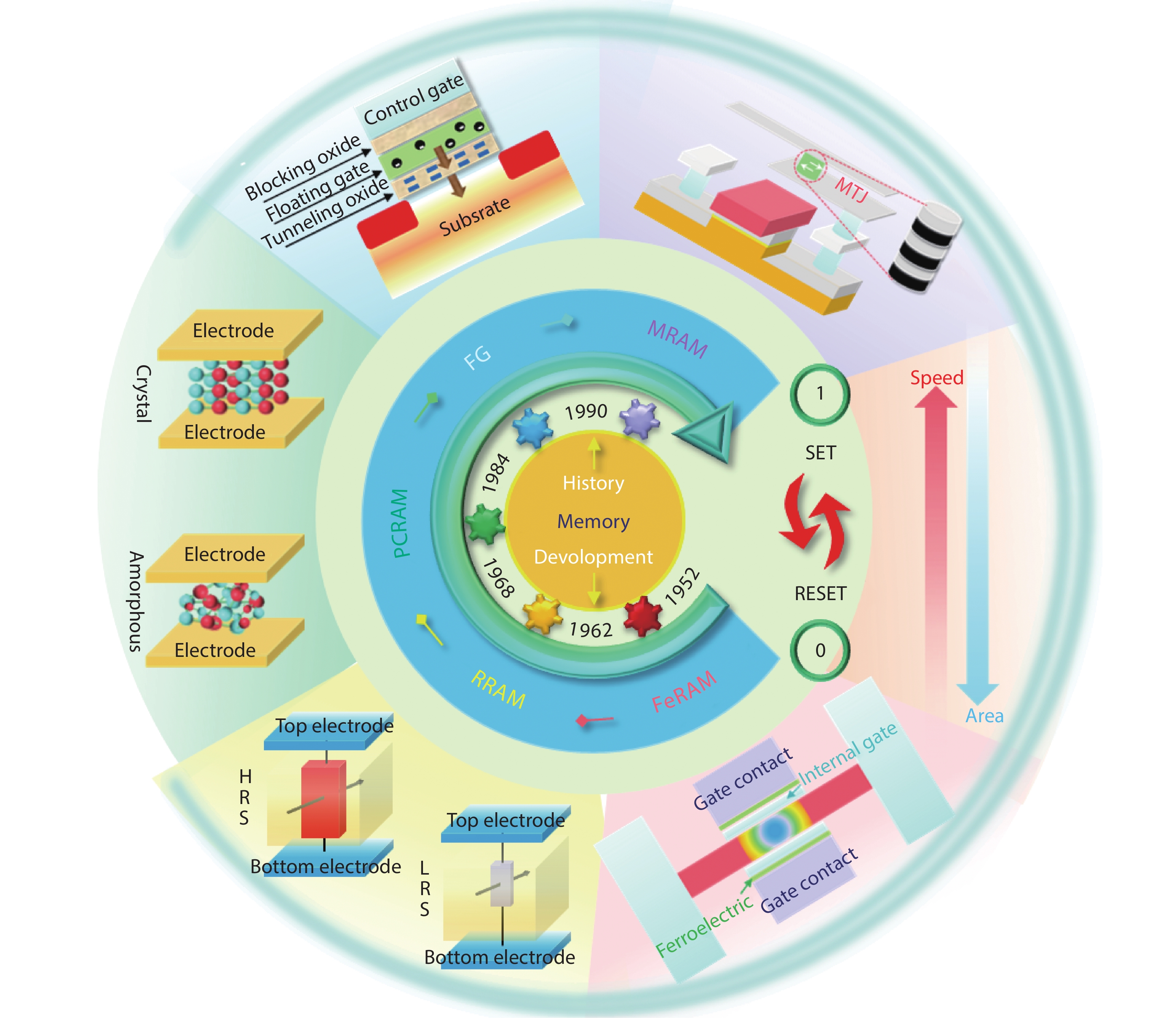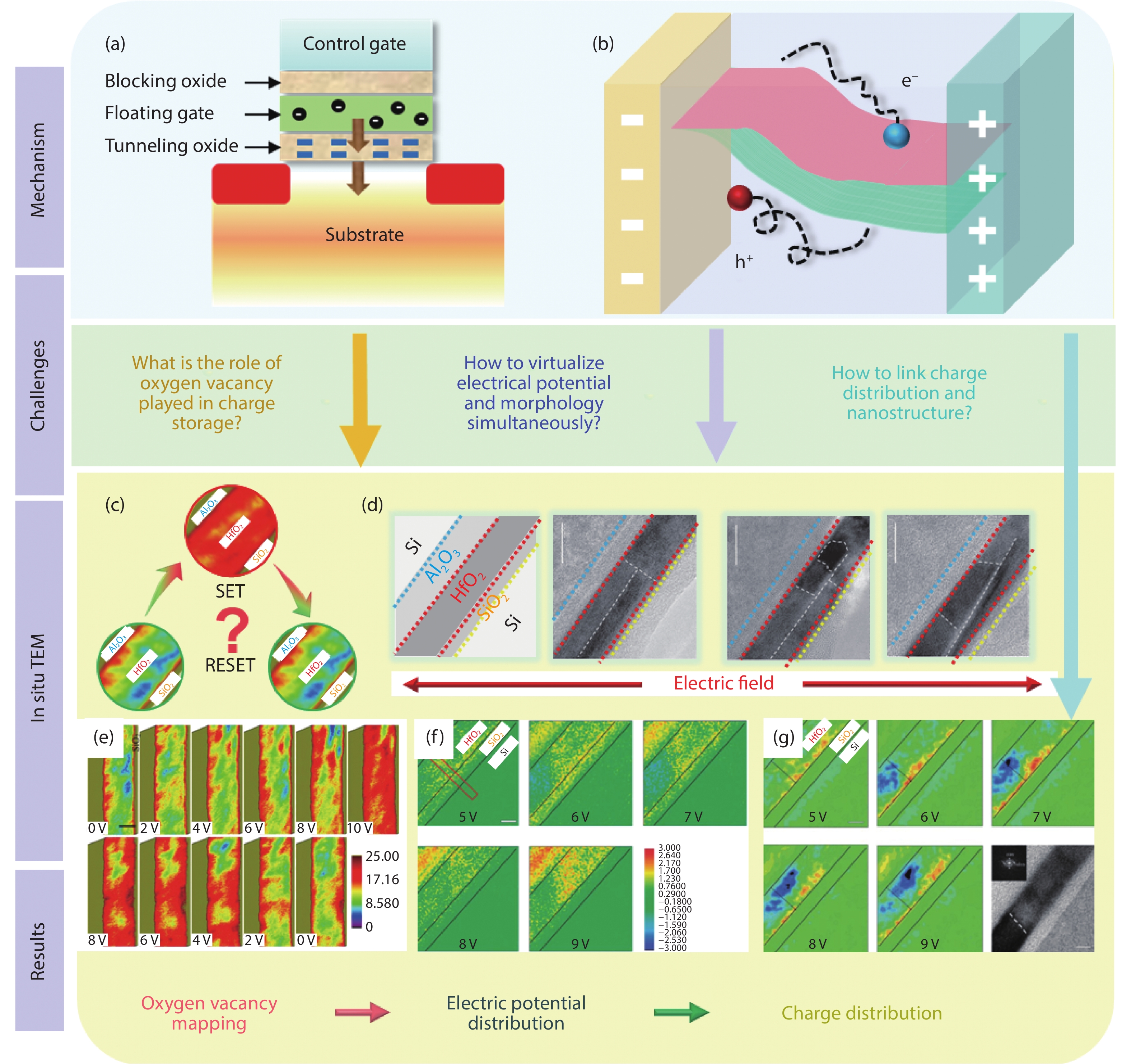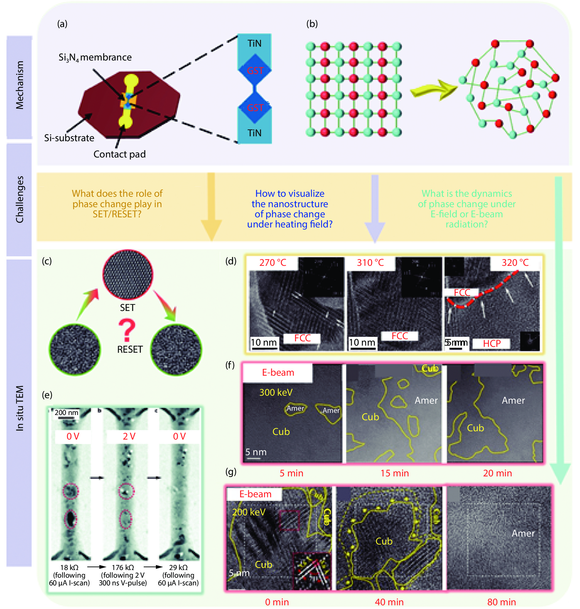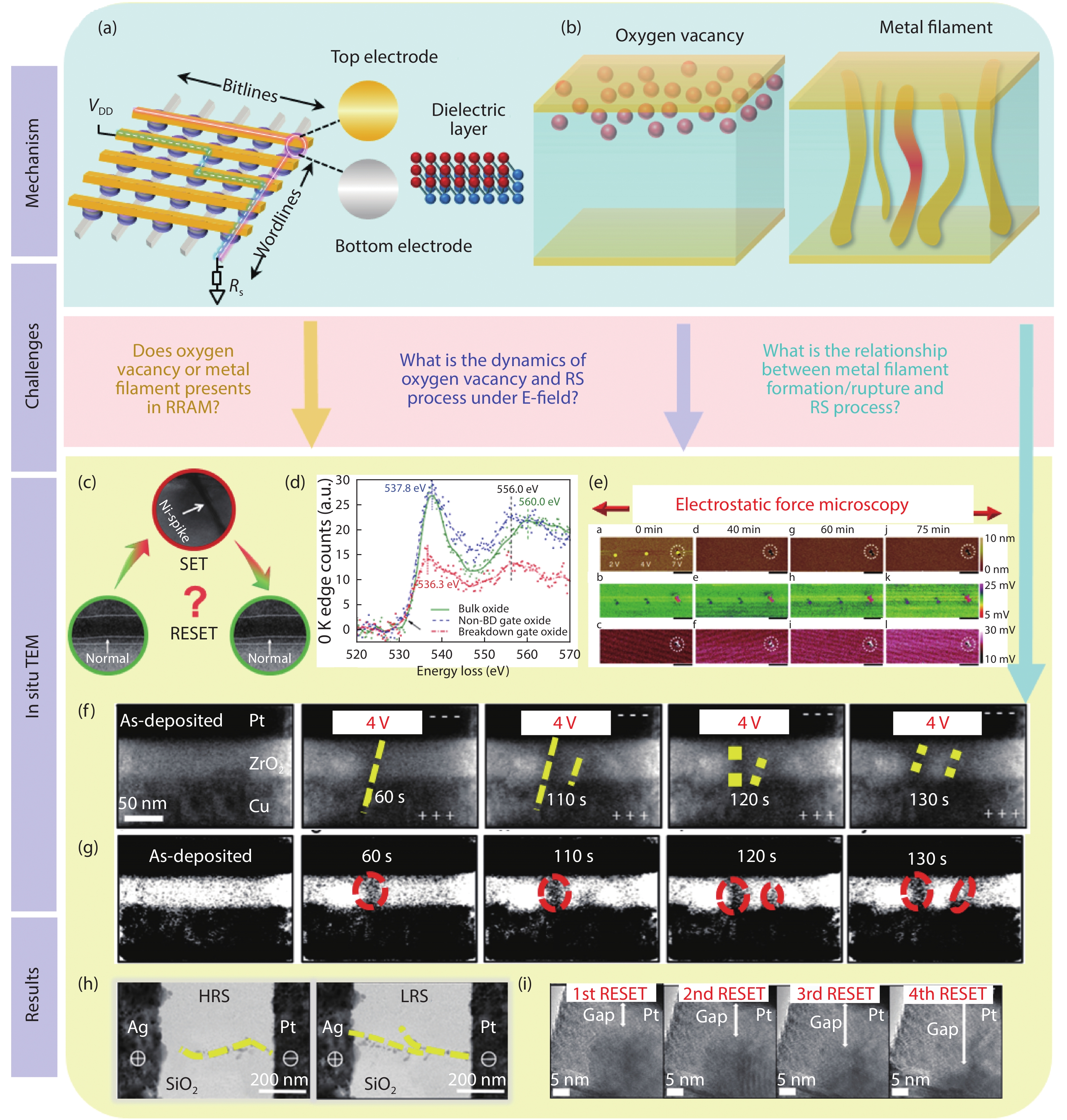 Non-volatile memory (NVM) devices with non-volatility and low power consumption properties are important in the data storage field. The switching mechanism and packaging reliability issues in NVMs are of great research interest. The switching process in NVM devices accompanied by the evolution of microstructure and composition is fast and subtle. Transmission electron microscopy (TEM) with high spatial resolution and versatile external fields is widely used in analyzing the evolution of morphology, structures and chemical compositions at atomic scale. The various external stimuli, such as thermal, electrical, mechanical, optical and magnetic fields, provide a platform to probe and engineer NVM devices inside TEM in real-time. Such advanced technologies make it possible for an in situ and interactive manipulation of NVM devices without sacrificing the resolution. This technology facilitates the exploration of the intrinsic structure-switching mechanism of NVMs and the reliability issues in the memory package. In this review, the evolution of the functional layers in NVM devices characterized by the advanced in situ TEM technology is introduced, with intermetallic compounds forming and degradation process investigated. The principles and challenges of TEM technology on NVM device study are also discussed.
