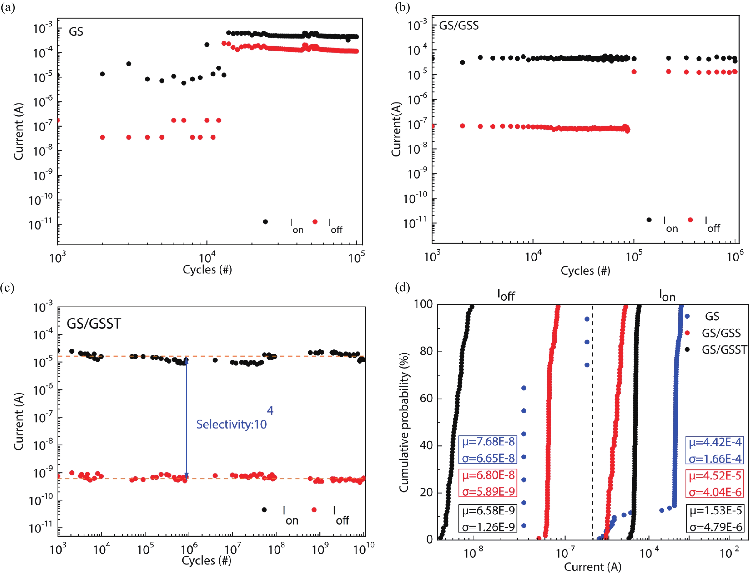 Selector devices are indispensable components of large-scale memristor array systems. The thereinto, ovonic threshold switching (OTS) selector is one of the most suitable candidates for selector devices, owing to its high selectivity and scalability. However, OTS selectors suffer from poor endurance and stability which are persistent tricky problems for application. Here, we report on a multilayer OTS selector based on simple GeSe and doped-GeSe. The experimental results show improving selector performed extraordinary endurance up to 1010 and the fluctuation of threshold voltage is 2.5%. The reason for the improvement may lie in more interface states which strengthen the interaction among individual layers. These developments pave the way towards tuning a new class of OTS materials engineering, ensuring improvement of electrical performance.