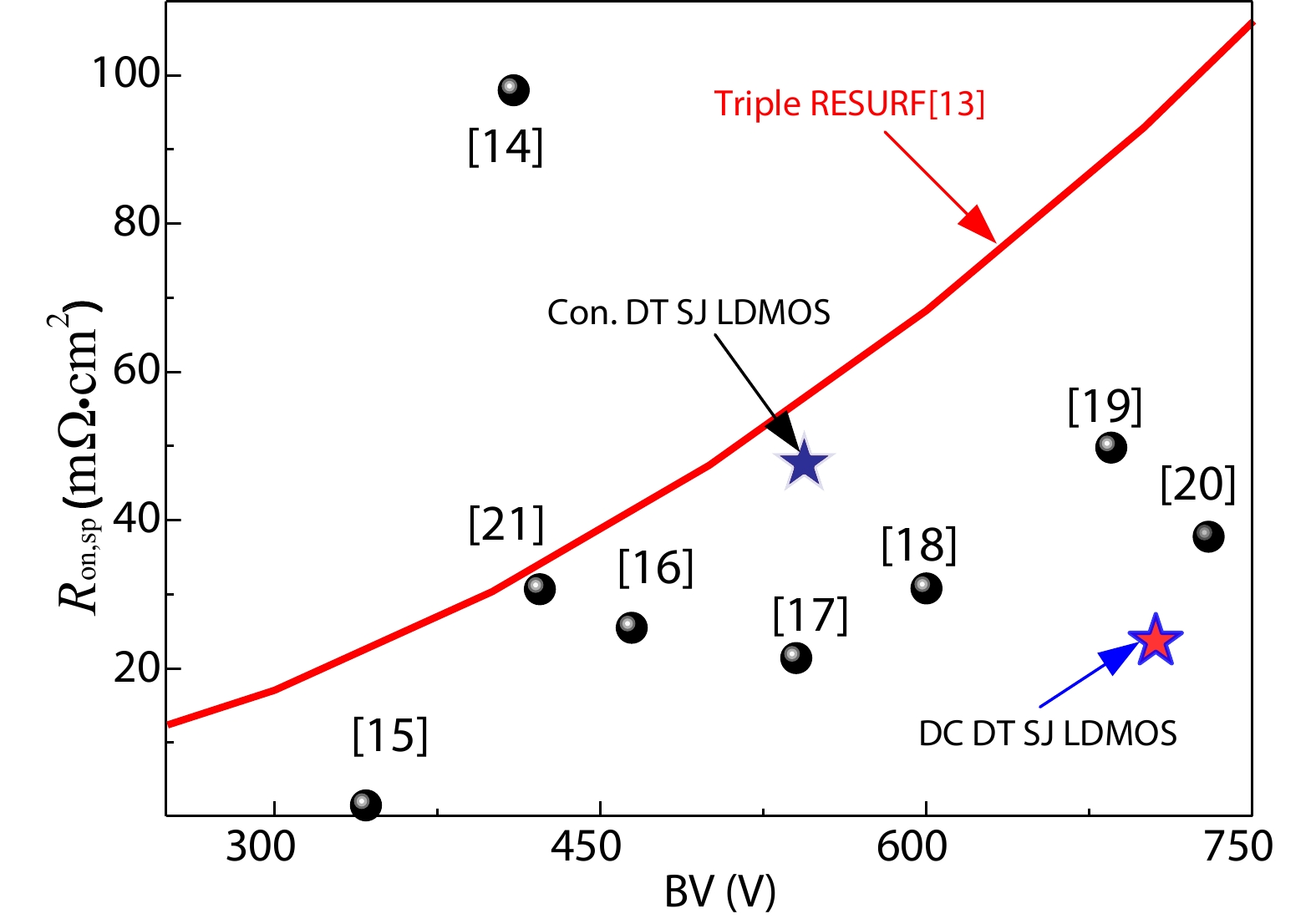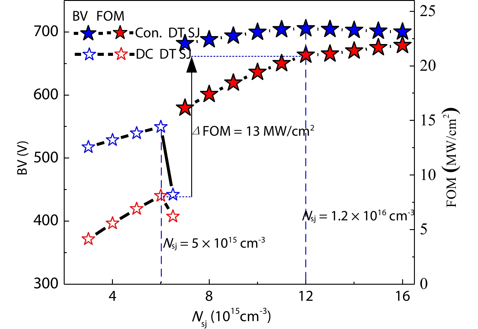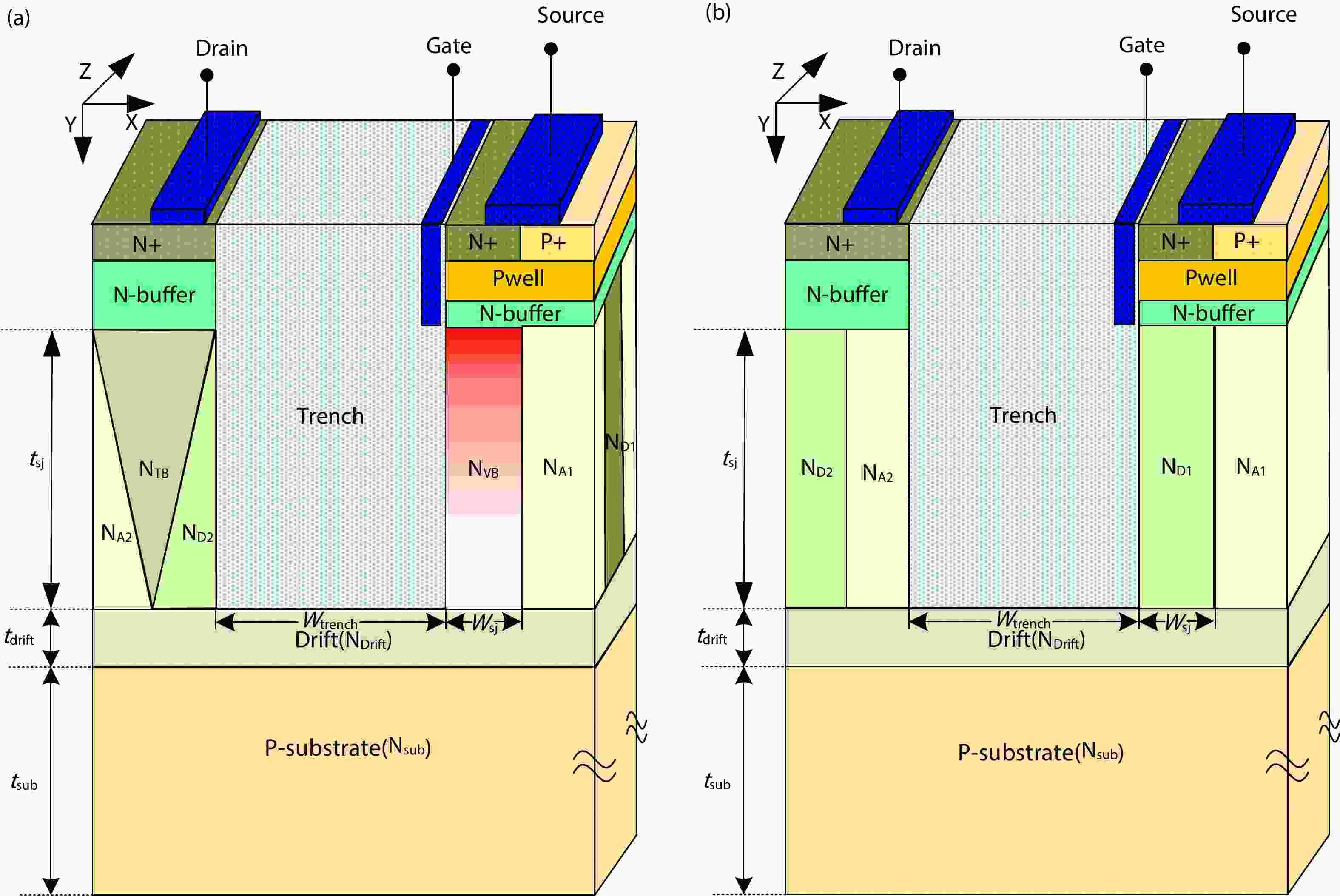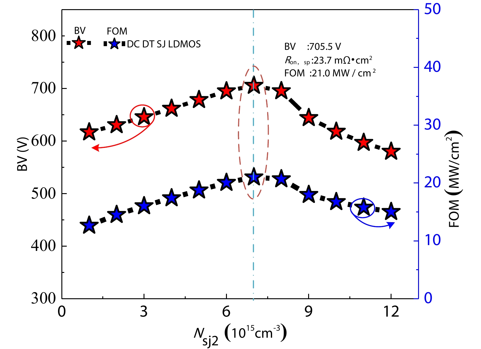 A deep trench super-junction LDMOS with double charge compensation layer (DC DT SJ LDMOS) is proposed in this paper. Due to the capacitance effect of the deep trench which is known as silicon–insulator–silicon (SIS) capacitance, the charge balance in the super-junction region of the conventional deep trench SJ LDMOS (Con. DT SJ LDMOS) device will be broken, resulting in breakdown voltage (BV) of the device drops. DC DT SJ LDMOS solves the SIS capacitance effect by adding a vertical variable doped charge compensation layer and a triangular charge compensation layer inside the Con. DT SJ LDMOS device. Therefore, the drift region reaches an ideal charge balance state again. The electric field is optimized by double charge compensation and gate field plate so that the breakdown voltage of the proposed device is improved sharply, meanwhile the enlarged on-current region reduces its specific on-resistance. The simulation results show that compared with the Con. DT SJ LDMOS, the BV of the DC DT SJ LDMOS has been increased from 549.5 to 705.5 V, and the Ron,sp decreased to 23.7 mΩ·cm2.