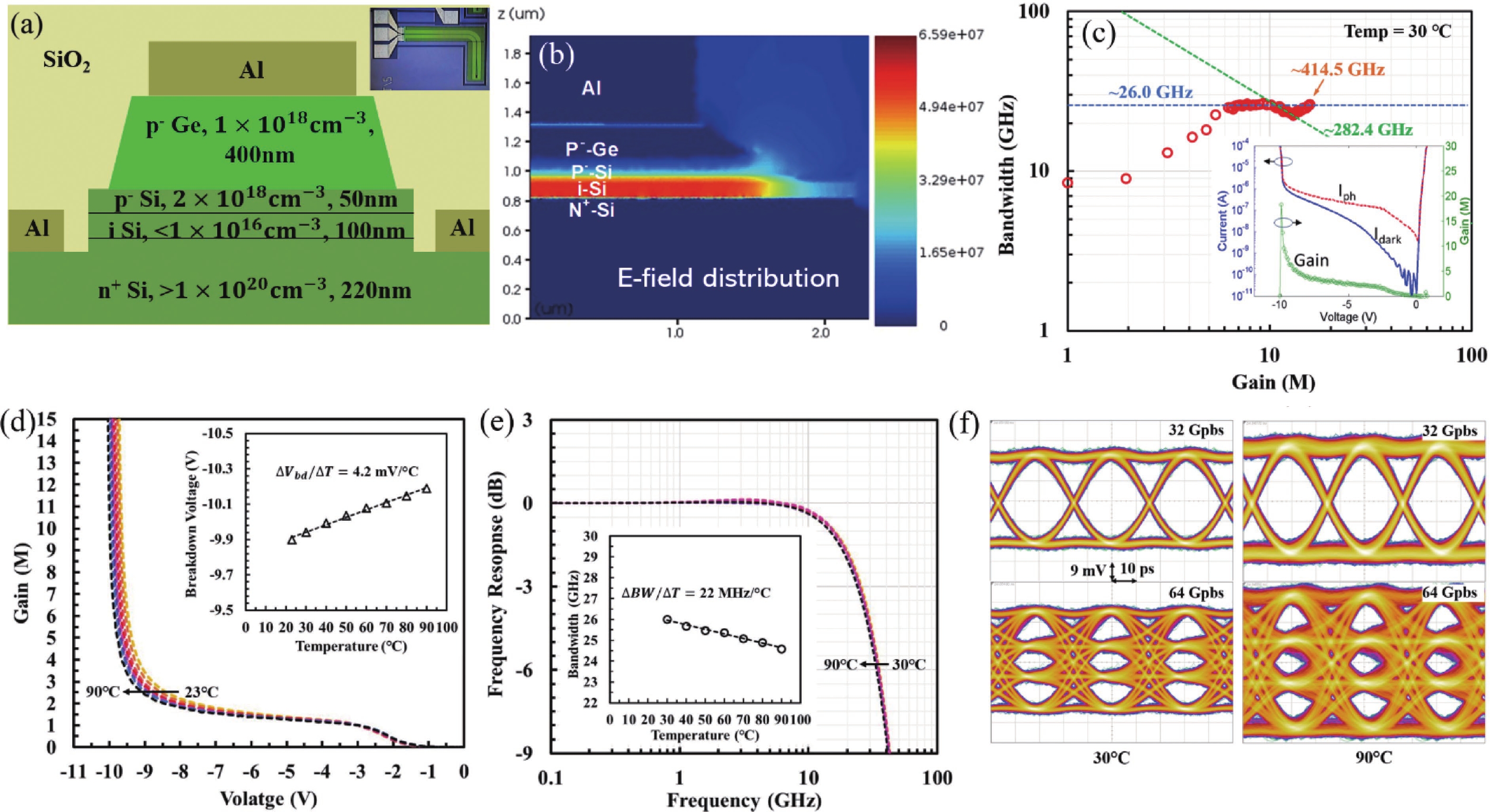Silicon photonics technology has drawn significant interest due to its potential for compact and high-performance photonic integrated circuits. The Ge- or III–V material-based avalanche photodiodes integrated on silicon photonics provide ideal high sensitivity optical receivers for telecommunication wavelengths. Herein, the last advances of monolithic and heterogeneous avalanche photodiodes on silicon are reviewed, including different device structures and semiconductor systems.