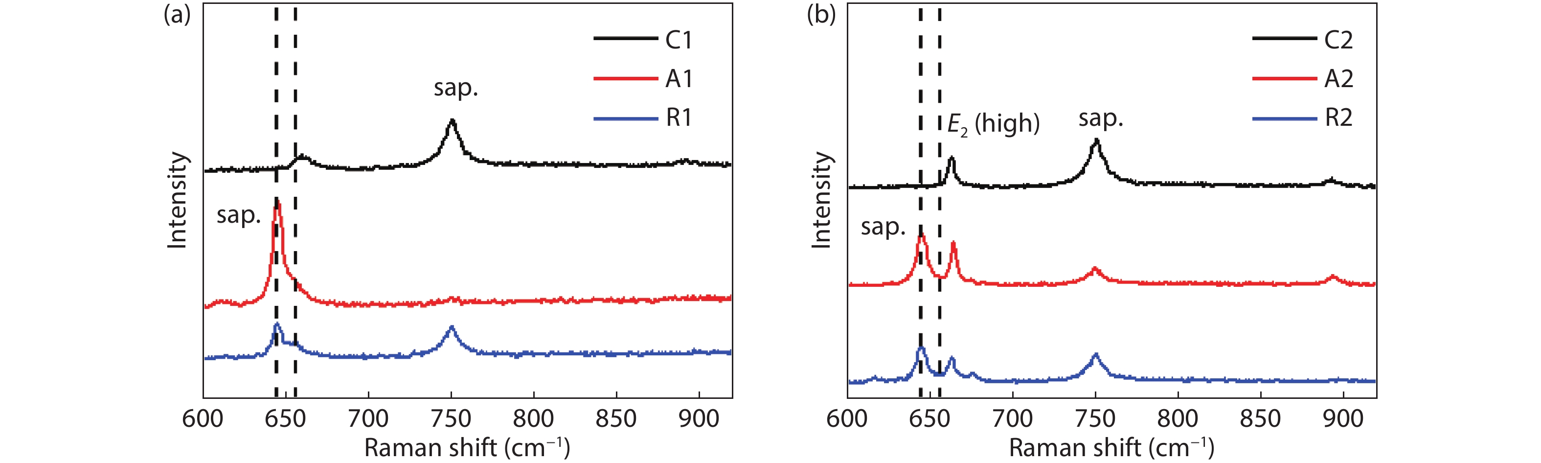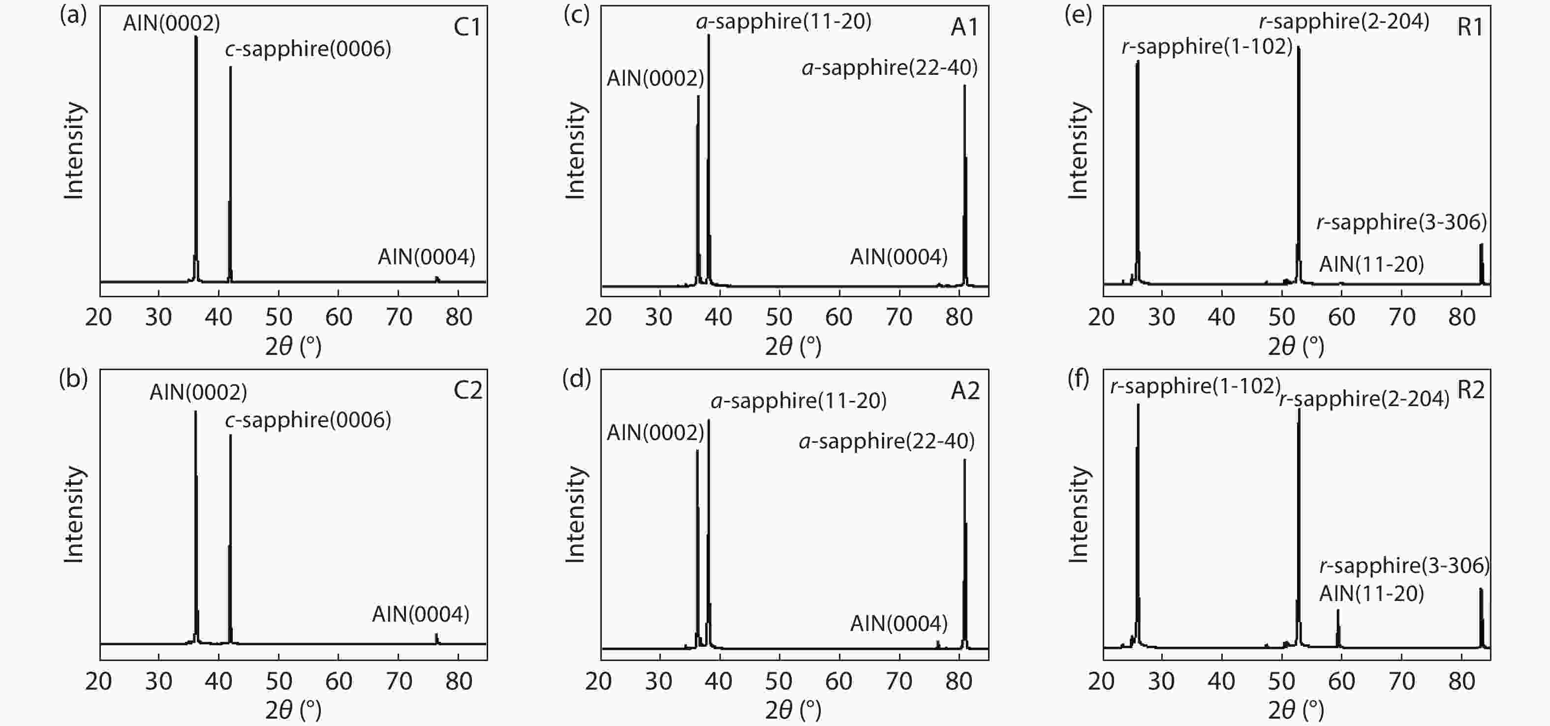 AlN thin films were deposited on c-, a- and r-plane sapphire substrates by the magnetron sputtering technique. The influence of high-temperature thermal annealing (HTTA) on the structural, optical properties as well as surface stoichiometry were comprehensively investigated. The significant narrowing of the (0002) diffraction peak to as low as 68 arcsec of AlN after HTTA implies a reduction of tilt component inside the AlN thin films, and consequently much-reduced dislocation densities. This is also supported by the appearance of E2(high) Raman peak and better Al–N stoichiometry after HTTA. Furthermore, the increased absorption edge after HTTA suggests a reduction of point defects acting as the absorption centers. It is concluded that HTTA is a universal post-treatment technique in improving the crystalline quality of sputtered AlN regardless of sapphire orientation.