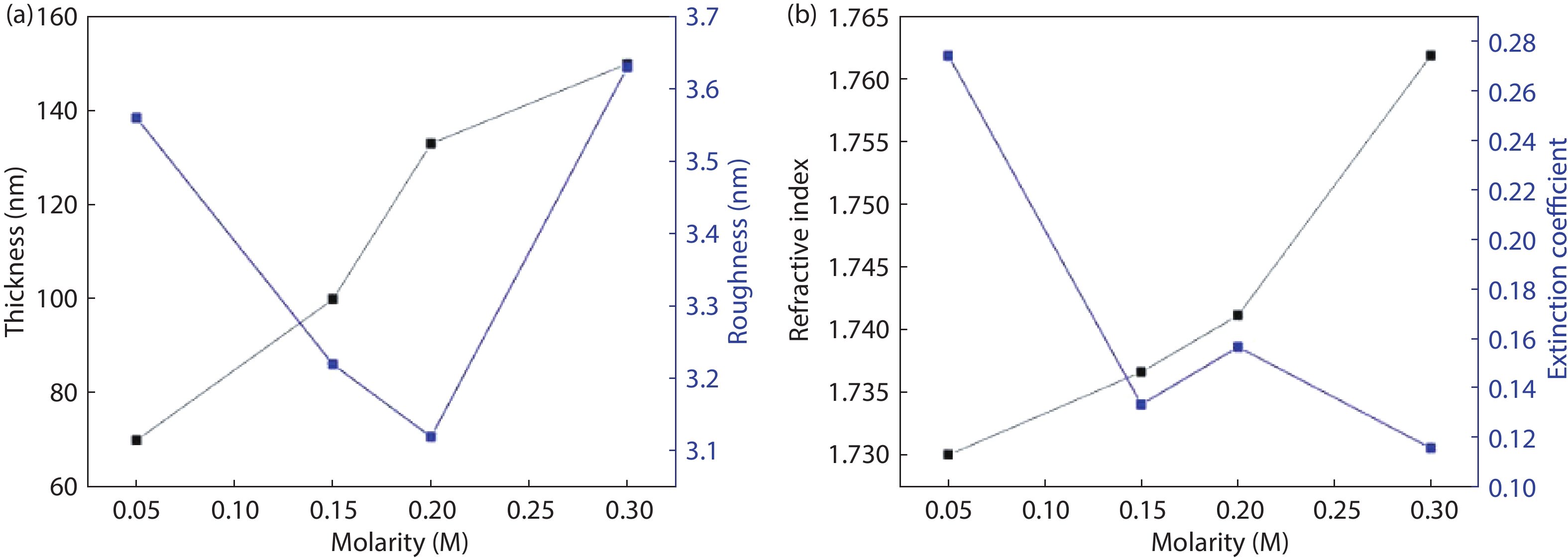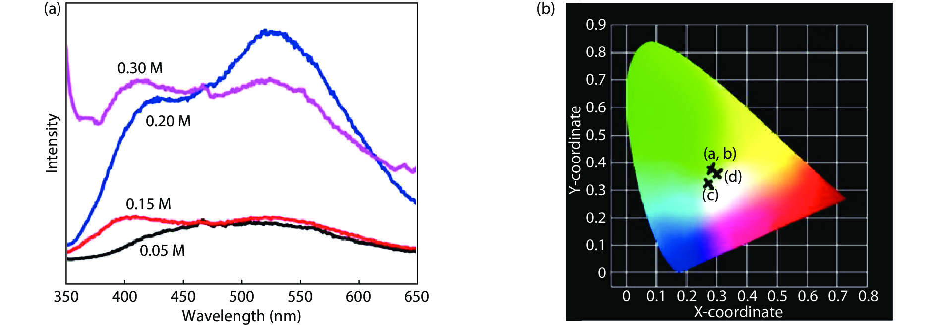 Highly transparent conductive stoichiometric nanocrystalline stannic oxide coatings were deposited onto Corning? EAGLE XG? slim glass substrates. Including each coating, it was deposited for various concentrations in the aerosol solution with the substrate temperature maintained at 623.15 K by an ultrasonic spray pyrolysis (USP) technique. Nitrogen was employed both as the solution carrier in addition to aerosol directing gas, maintaining its flow rates at 3500.0 and 500.0 mL/min, respectively. The coatings were polycrystalline, with preferential growth along the stannic oxide (112) plane, irrespective of the molarity content in the spray solution. The coating prepared at 0.2 M, a concentration in the aerosol solution, showed an average transmission of 60% in the visible light region spectrum with a maximum conductivity of 24.86 S/cm. The coatings deposited exhibited in the general photoluminescence spectrum emission colors of green, greenish white, and bluish white calculated on the intensities of the excitonic and oxygen vacancy defect level emissions.