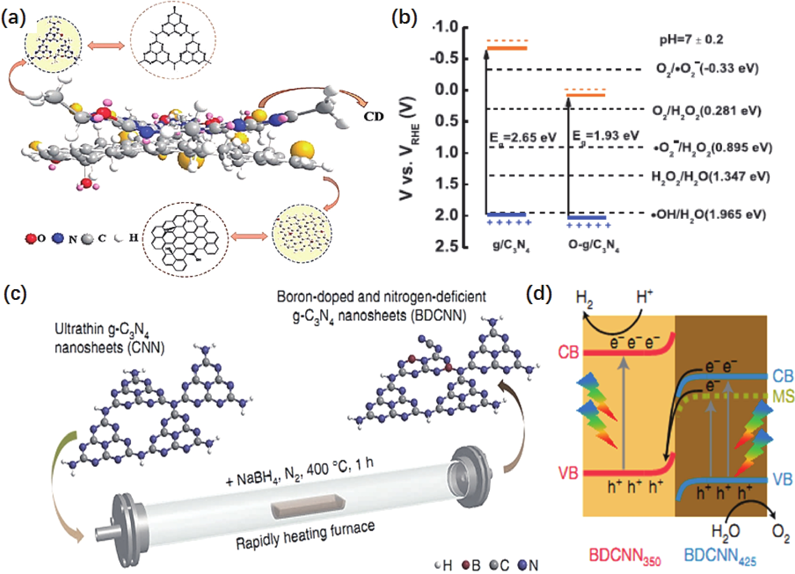 The utilization of solar energy to drive energy conversion and simultaneously realize pollutant degradation via photocatalysis is one of most promising strategies to resolve the global energy and environment issues. During the past decade, graphite carbon nitride (g-C3N4) has attracted dramatically growing attention for solar energy conversion due to its excellent physicochemical properties as a photocatalyst. However, its practical application is still impeded by several limitations and shortcomings, such as high recombination rate of charge carriers, low visible-light absorption, etc. As an effective solution, the electronic structure tuning of g-C3N4 has been widely adopted. In this context, firstly, the paper critically focuses on the different strategies of electronic structure tuning of g-C3N4 like vacancy modification, doping, crystallinity modulation and synthesis of a new molecular structure. And the recent progress is reviewed. Finally, the challenges and future trends are summarized.