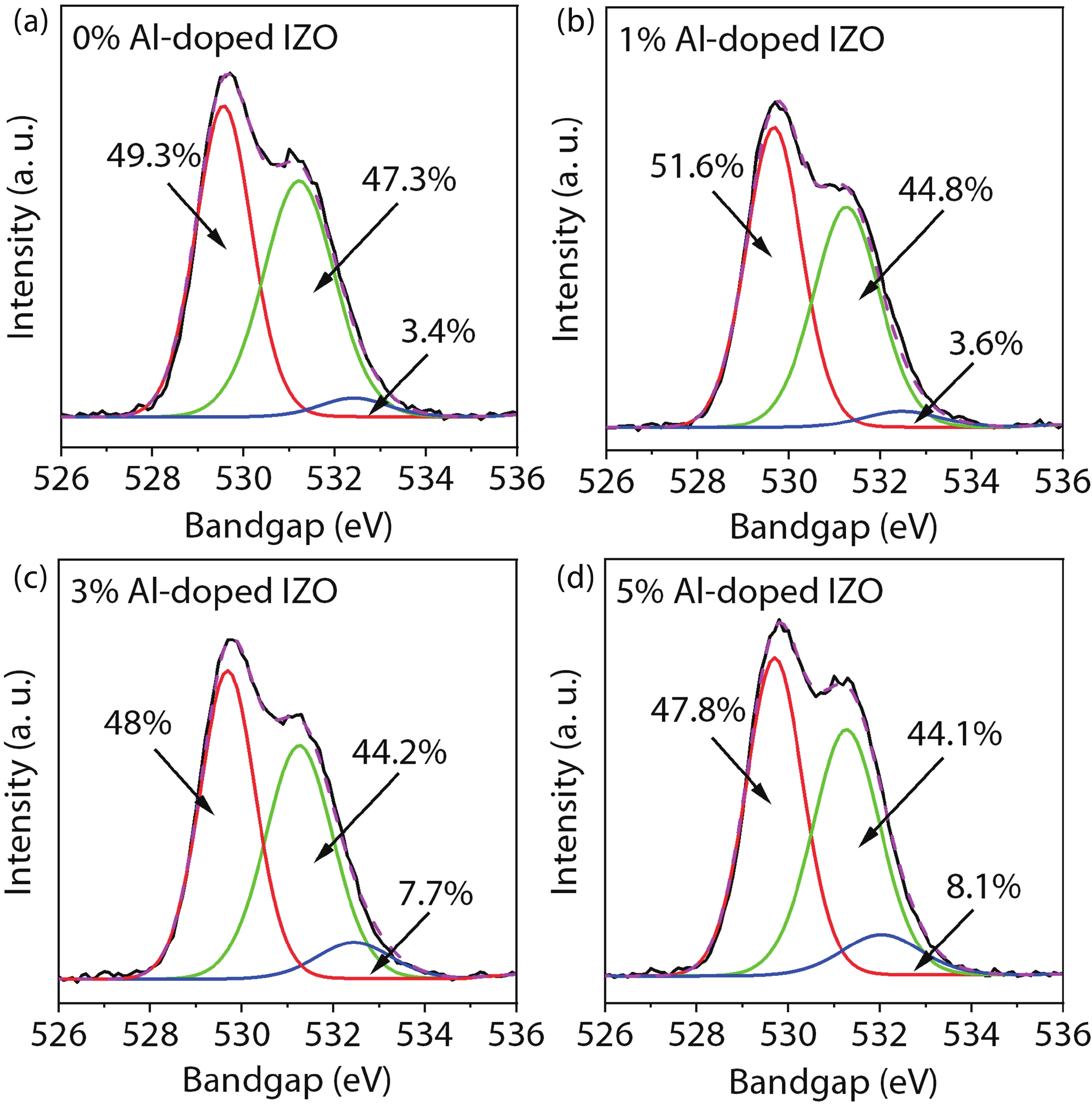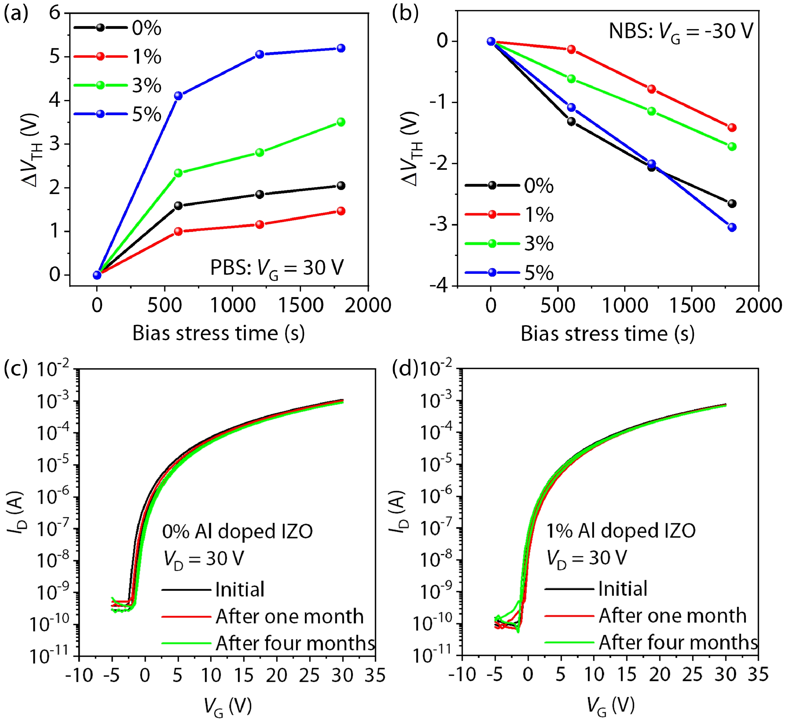 Solution-processed oxide semiconductors have been considered as a potential alternative to vacuum-based ones in printable electronics. However, despite spin-coated InZnO (IZO) thin-film transistors (TFTs) have shown a relatively high mobility, the lack of carrier suppressor and the high sensitivity to oxygen and water molecules in ambient air make them potentially suffer issues of poor stability. In this work, Al is used as the third cation doping element to study the effects on the electrical, optoelectronic, and physical properties of IZO TFTs. A hydrophobic self-assembled monolayer called octadecyltrimethoxysilane is introduced as the surface passivation layer, aiming to reduce the effects from air and understand the importance of top surface conditions in solution-processed, ultra-thin oxide TFTs. Owing to the reduced trap states within the film and at the top surface enabled by the doping and passivation, the optimized TFTs show an increased current on/off ratio, a reduced drain current hysteresis, and a significantly enhanced bias stress stability, compared with the untreated ones. By combining with high-capacitance AlOx, TFTs with a low operating voltage of 1.5 V, a current on/off ratio of > 104 and a mobility of 4.6 cm2/(V·s) are demonstrated, suggesting the promising features for future low-cost, low-power electronics.