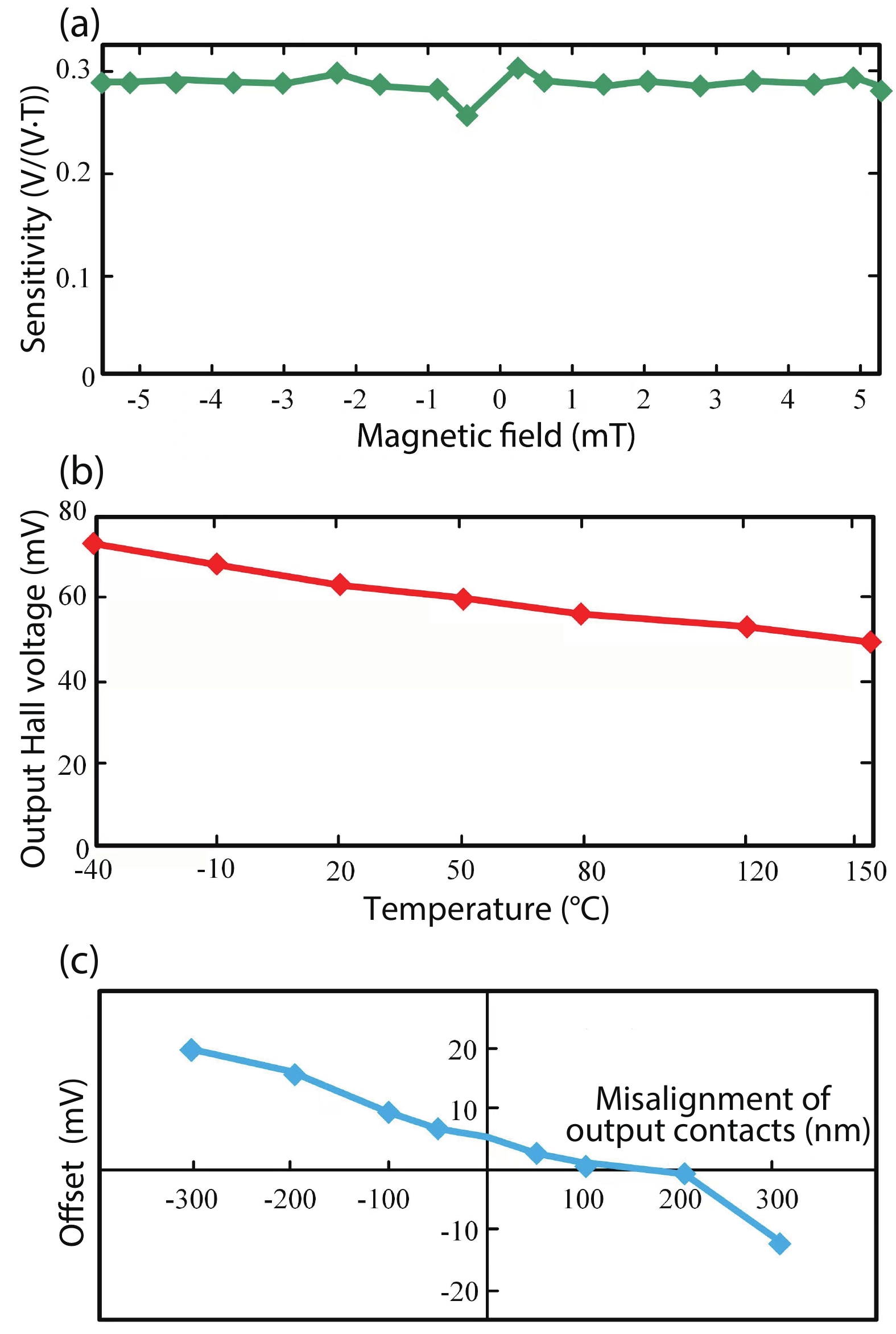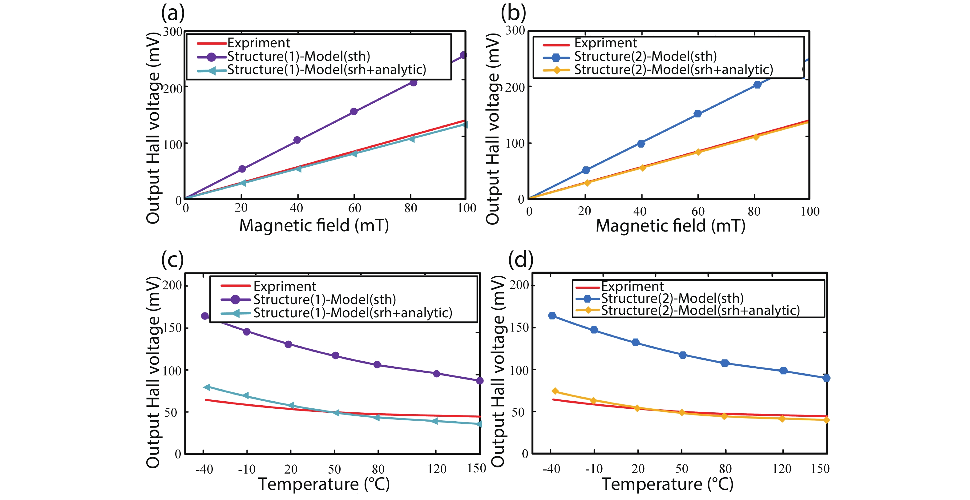 Silicon Hall-effect sensors have been widely used in industry and research fields due to their straightforward fabrication process and CMOS compatibility. However, as their material property limitations, technicians usually implement complex CMOS circuits to improve the sensors’ performance including temperature drift and offset compensation for fitting tough situation, but it is no doubt that it increases the design complexity and the sensor area. Gallium arsenide (GaAs) is a superior material of Hall-effect device because of its large mobility and stable temperature characteristics. Concerning there is no specified modelling of GaAs Hall-effect device, this paper investigated its modelling by using finite element method (FEM) software Silvaco TCAD? to help and guide GaAs Hall-effect device fabrication. The modeled sensor has been fabricated and its experimental results are in agreement with the simulation results. Comparing to our previous silicon Hall-effect sensor, the GaAs Hall-effect sensor demonstrates potential and reliable benchmark for the future Hall magnetic sensor developments.