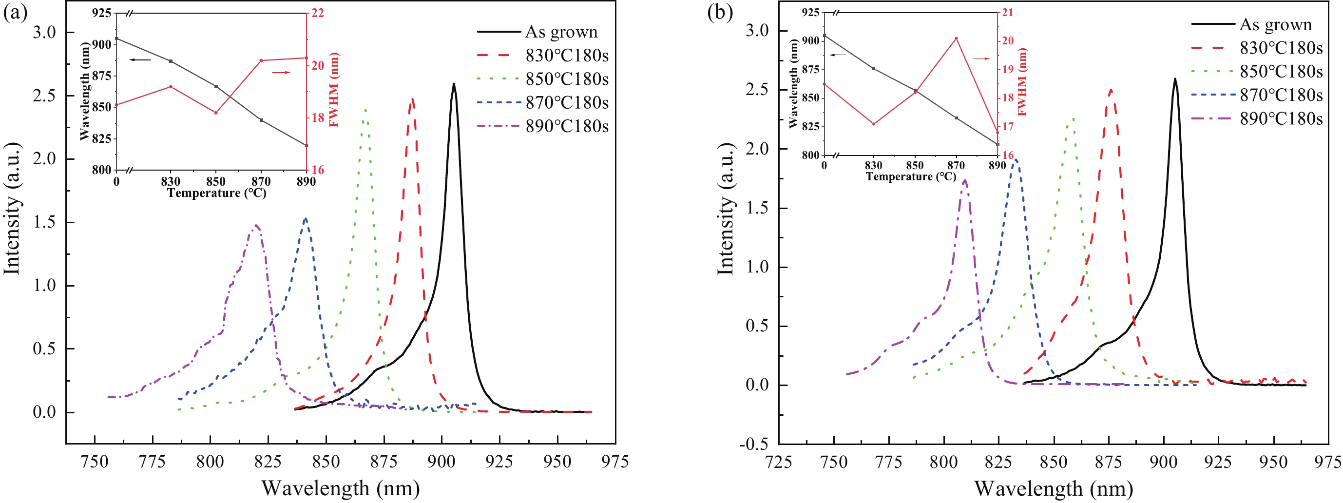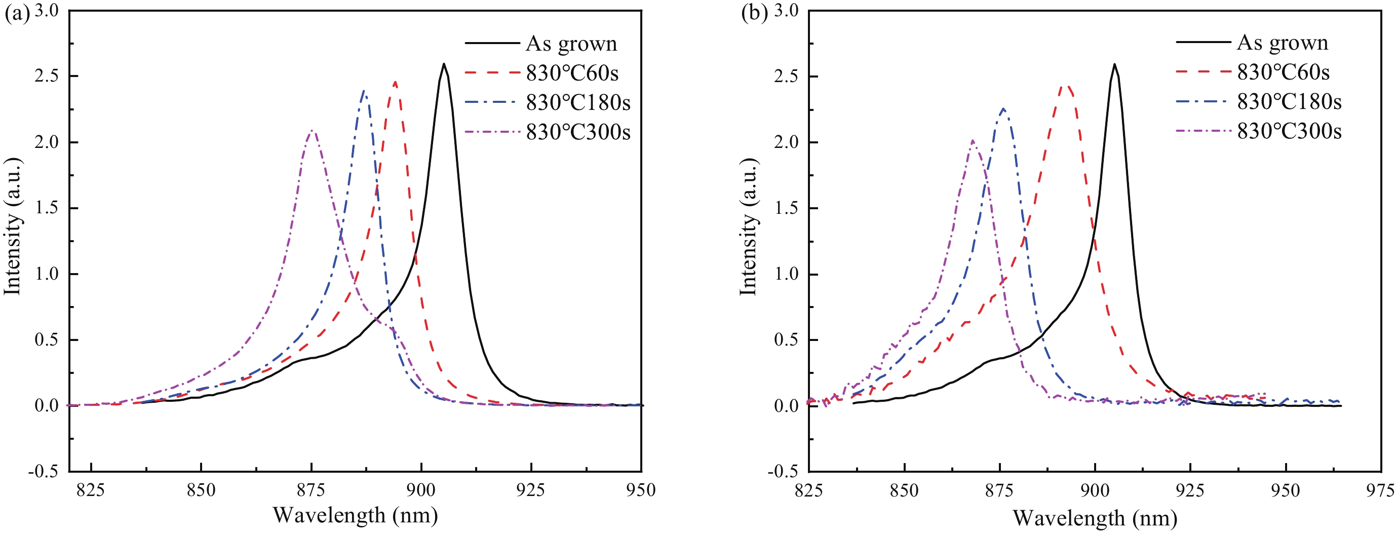 Output power and reliability are the most important characteristic parameters of semiconductor lasers. However, catastrophic optical damage (COD), which usually occurs on the cavity surface, will seriously damage the further improvement of the output power and affect the reliability. To improve the anti-optical disaster ability of the cavity surface, a non-absorption window (NAW) is adopted for the 915 nm InGaAsP/GaAsP single-quantum well semiconductor laser using quantum well mixing (QWI) induced by impurity-free vacancy. Both the principle and the process of point defect diffusion are described in detail in this paper. We also studied the effects of annealing temperature, annealing time, and the thickness of SiO2 film on the quantum well mixing in a semiconductor laser with a primary epitaxial structure, which is distinct from the previous structures. We found that when compared with the complete epitaxial structure, the blue shift of the semiconductor laser with the primary epitaxial structure is larger under the same conditions. To obtain the appropriate blue shift window, the primary epitaxial structure can use a lower annealing temperature and shorter annealing time. In addition, the process is less expensive. We also provide references for upcoming device fabrication.