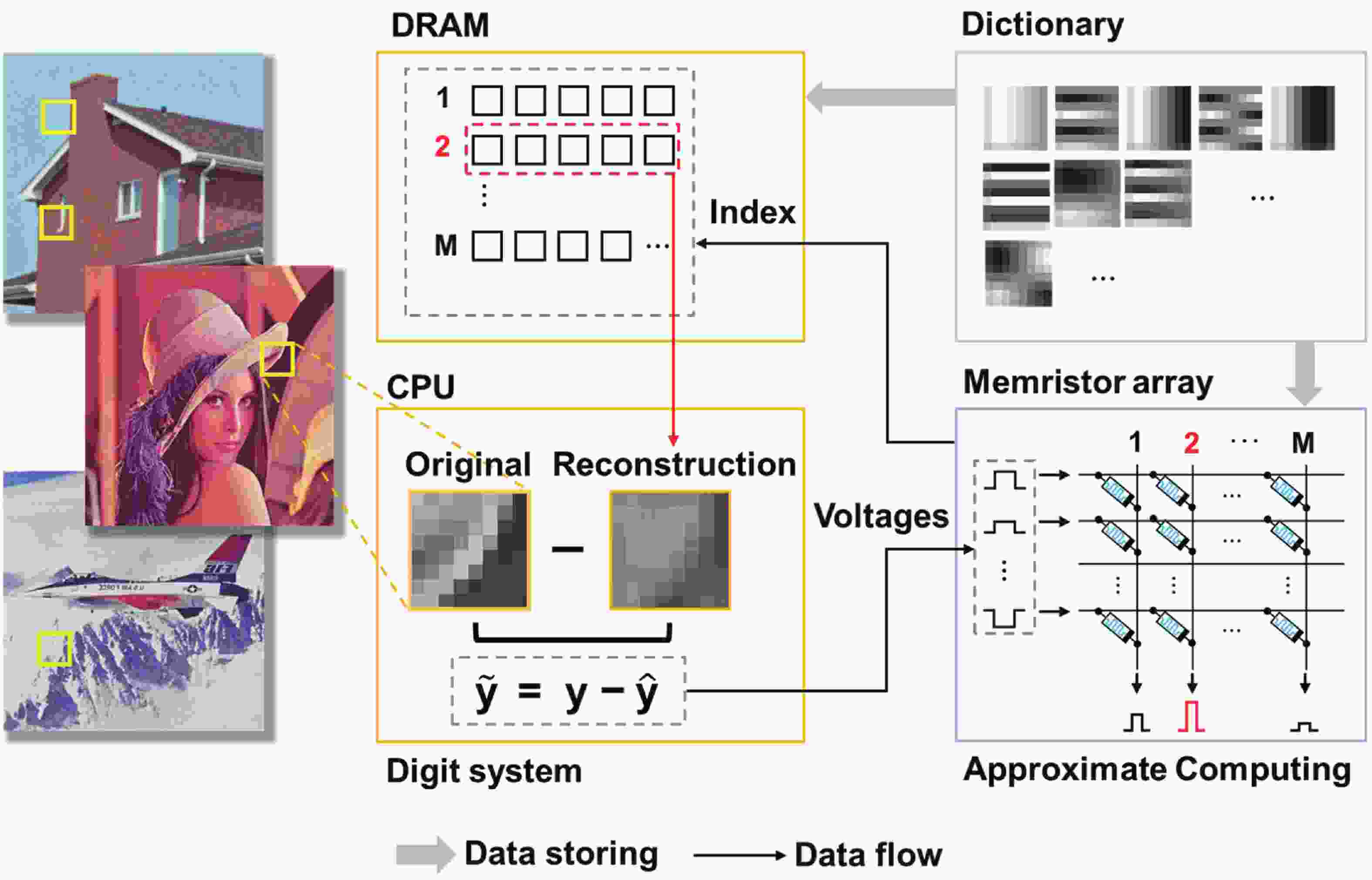 Sparse coding is a prevalent method for image inpainting and feature extraction, which can repair corrupted images or improve data processing efficiency, and has numerous applications in computer vision and signal processing. Recently, several memristor-based in-memory computing systems have been proposed to enhance the efficiency of sparse coding remarkably. However, the variations and low precision of the devices will deteriorate the dictionary, causing inevitable degradation in the accuracy and reliability of the application. In this work, a digital-analog hybrid memristive sparse coding system is proposed utilizing a multilevel Pt/Al2O3/AlOx/W memristor, which employs the forward stagewise regression algorithm: The approximate cosine distance calculation is conducted in the analog part to speed up the computation, followed by high-precision coefficient updates performed in the digital portion. We determine that four states of the aforementioned memristor are sufficient for the processing of natural images. Furthermore, through dynamic adjustment of the mapping ratio, the precision requirement for the digit-to-analog converters can be reduced to 4 bits. Compared to the previous system, our system achieves higher image reconstruction quality of the 38 dB peak-signal-to-noise ratio. Moreover, in the context of image inpainting, images containing 50% missing pixels can be restored with a reconstruction error of 0.0424 root-mean-squared error.