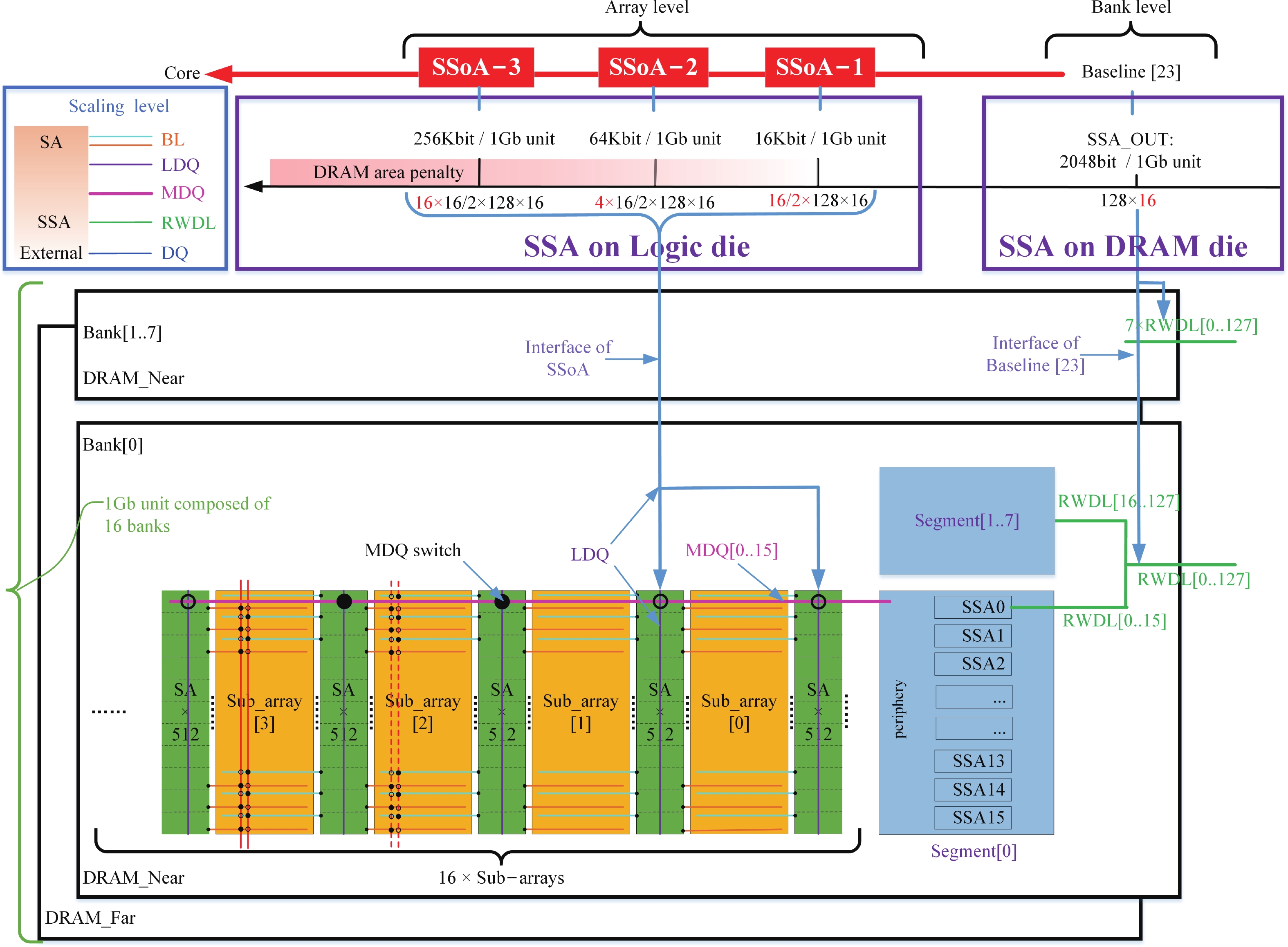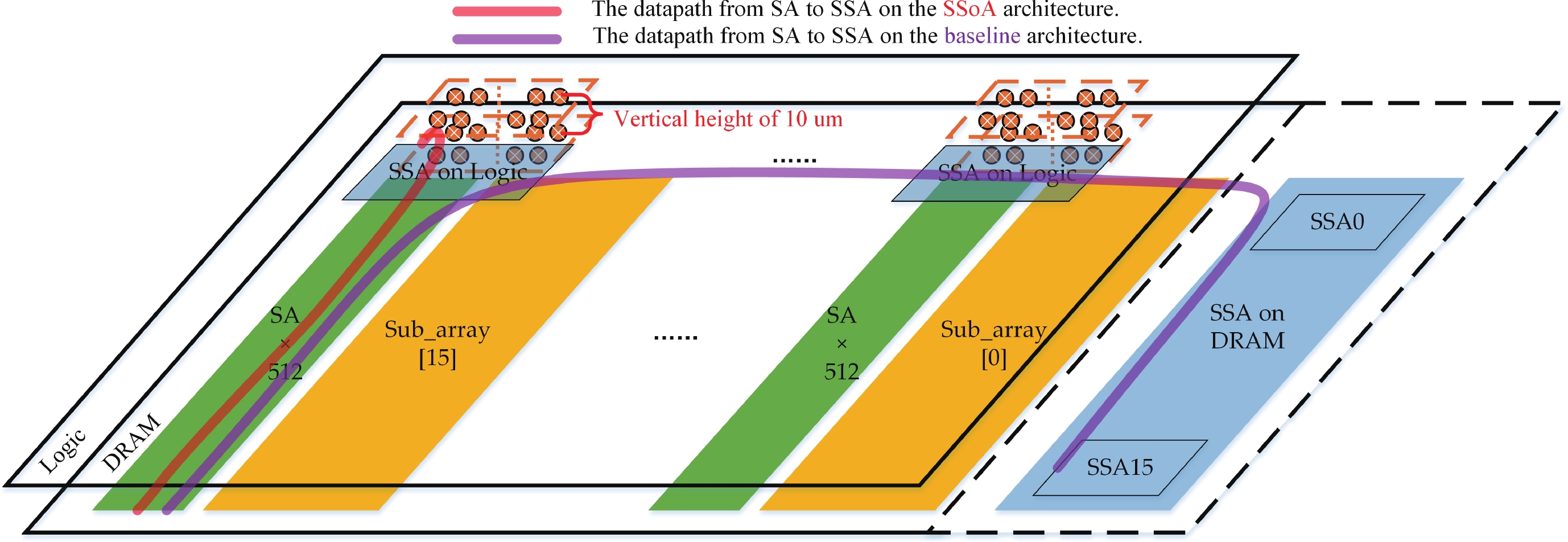 Aiming to enhance the bandwidth in near-memory computing, this paper proposes a SSA-over-array (SSoA) architecture. By relocating the secondary sense amplifier (SSA) from dynamic random access memory (DRAM) to the logic die and repositioning the DRAM-to-logic stacking interface closer to the DRAM core, the SSoA overcomes the layout and area limitations of SSA and master DQ (MDQ), leading to improvements in DRAM data-width density and frequency, significantly enhancing bandwidth density. The quantitative evaluation results show a 70.18 times improvement in bandwidth per unit area over the baseline, with a maximum bandwidth of 168.296 Tbps/Gb. We believe the SSoA is poised to redefine near-memory computing development strategies.