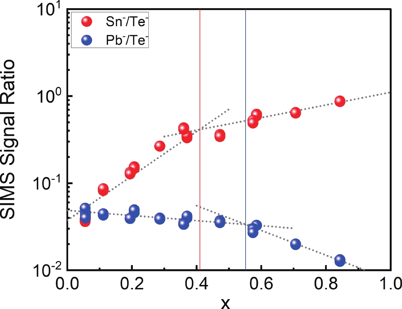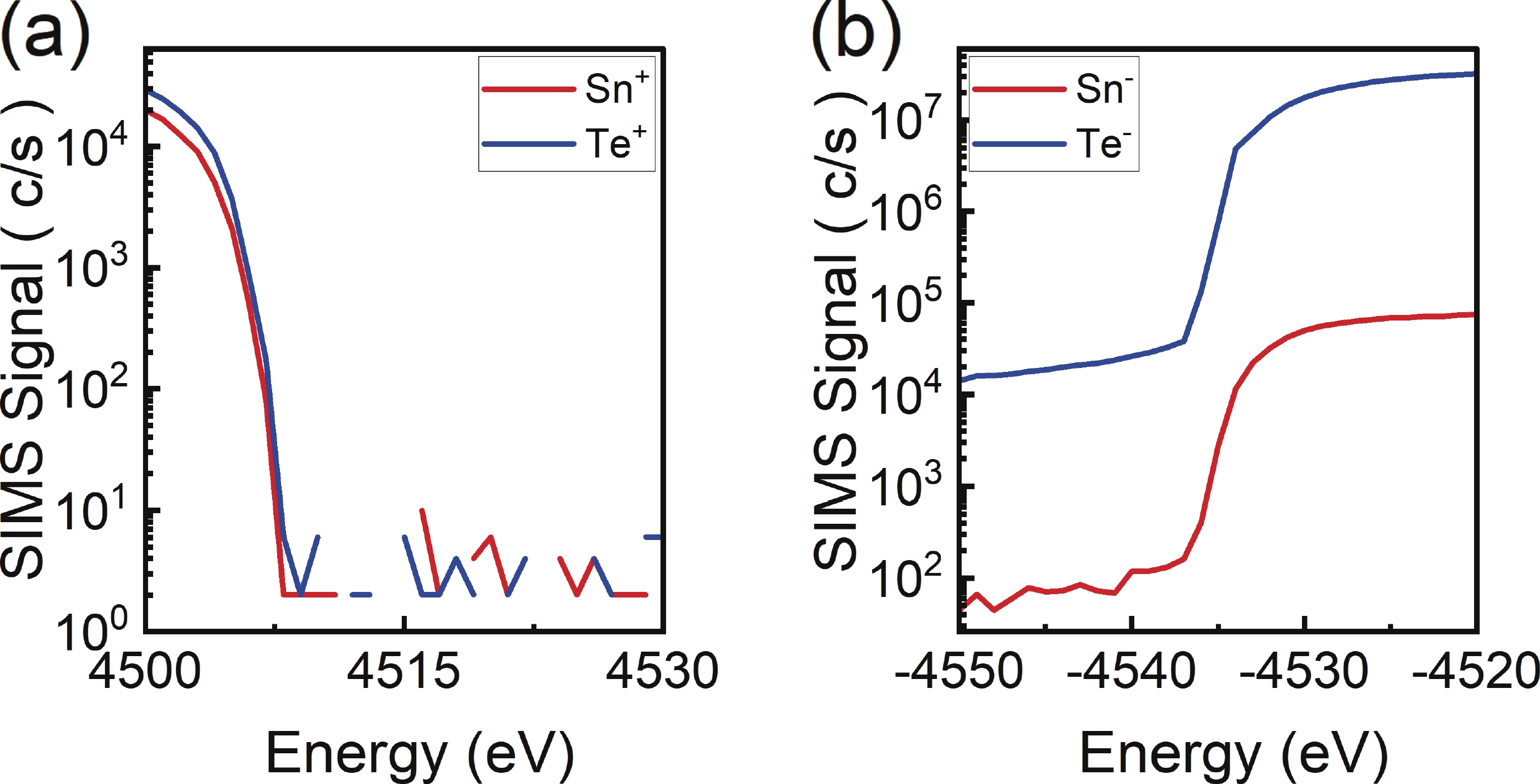 This paper introduces a pioneering application of secondary ion mass spectrometry (SIMS) for estimating the electronic properties of Pb1?xSnxTe, a compound categorized as a topological crystalline insulator. The proposed approach marks the first application of SIMS for such estimations and focuses on investigating variations in ionization probabilities and shifts in the energy distribution of secondary ions. The ionization probabilities are influenced by pivotal parameters such as the material's work function and electron affinity. The derivation of these parameters hinges upon the energy gap's positioning relative to the vacuum level for varying values of $ x $ within the Pb1?xSnxTe compound. The findings elucidate noteworthy alterations in SIMS signals, particularly near the critical point of band-gap closing.