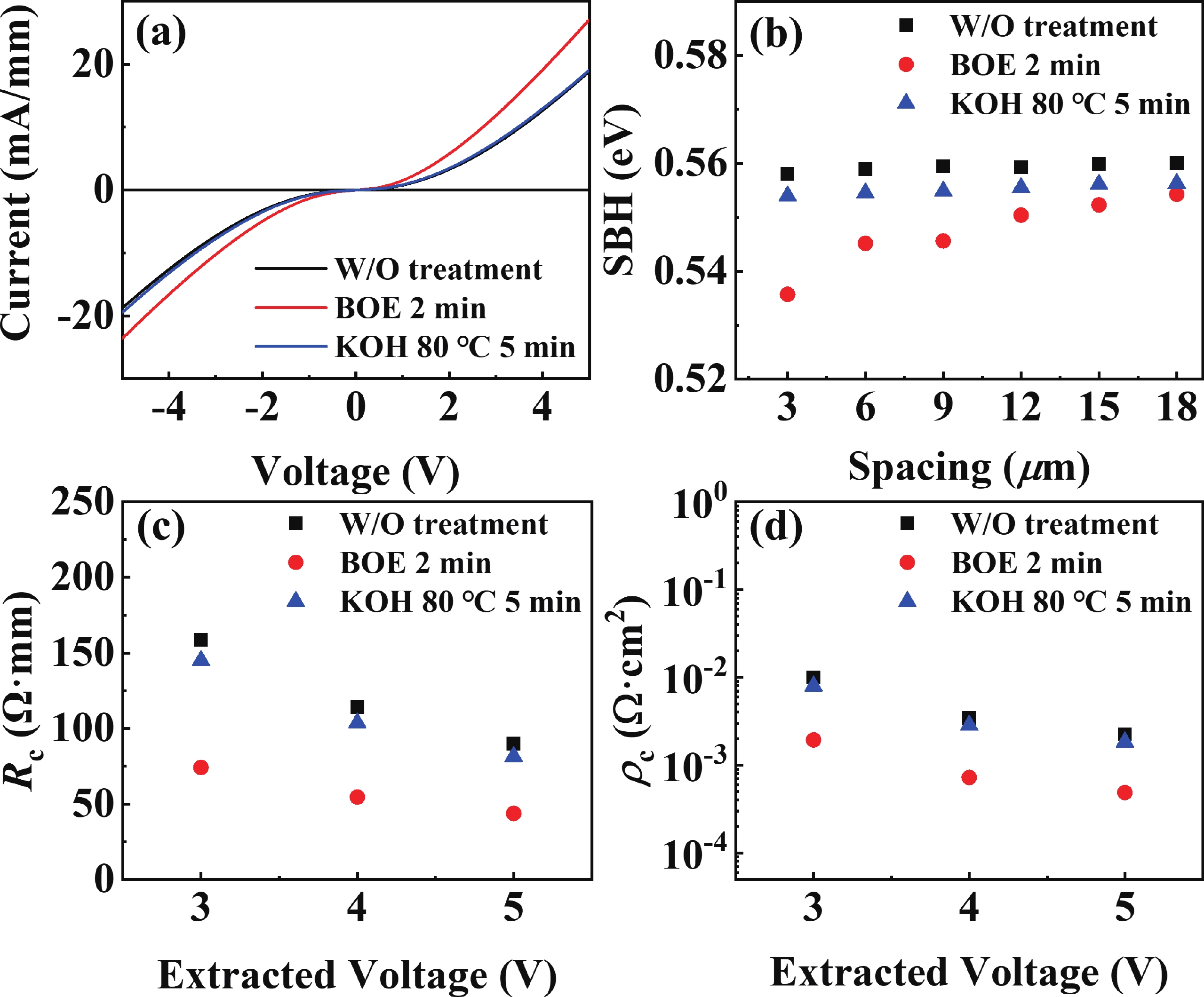 Pre-ohmic-annealing (POA) treatment of P-GaN/AlN/AlGaN epitaxy under N2 atmosphere was demonstrated to effectively achieve good p-type ohmic contact as well as decreased epitaxy sheet resistance. Ohmic contact resistance (Rc) extracted by transfer length method reduced from 38 to 23 Ω·mm with alleviated contact barrier height from 0.55 to 0.51 eV after POA treatment. X-ray photoelectron spectroscopy and Hall measurement confirmed that POA treatment was able to reduce surface state density and improve the hole concentration of p-GaN. Due to the decreased Rc and improved two-dimensional hole gas (2DHG) density, an outstanding-performance GaN E-mode p-channel MOSFET was successfully realized.