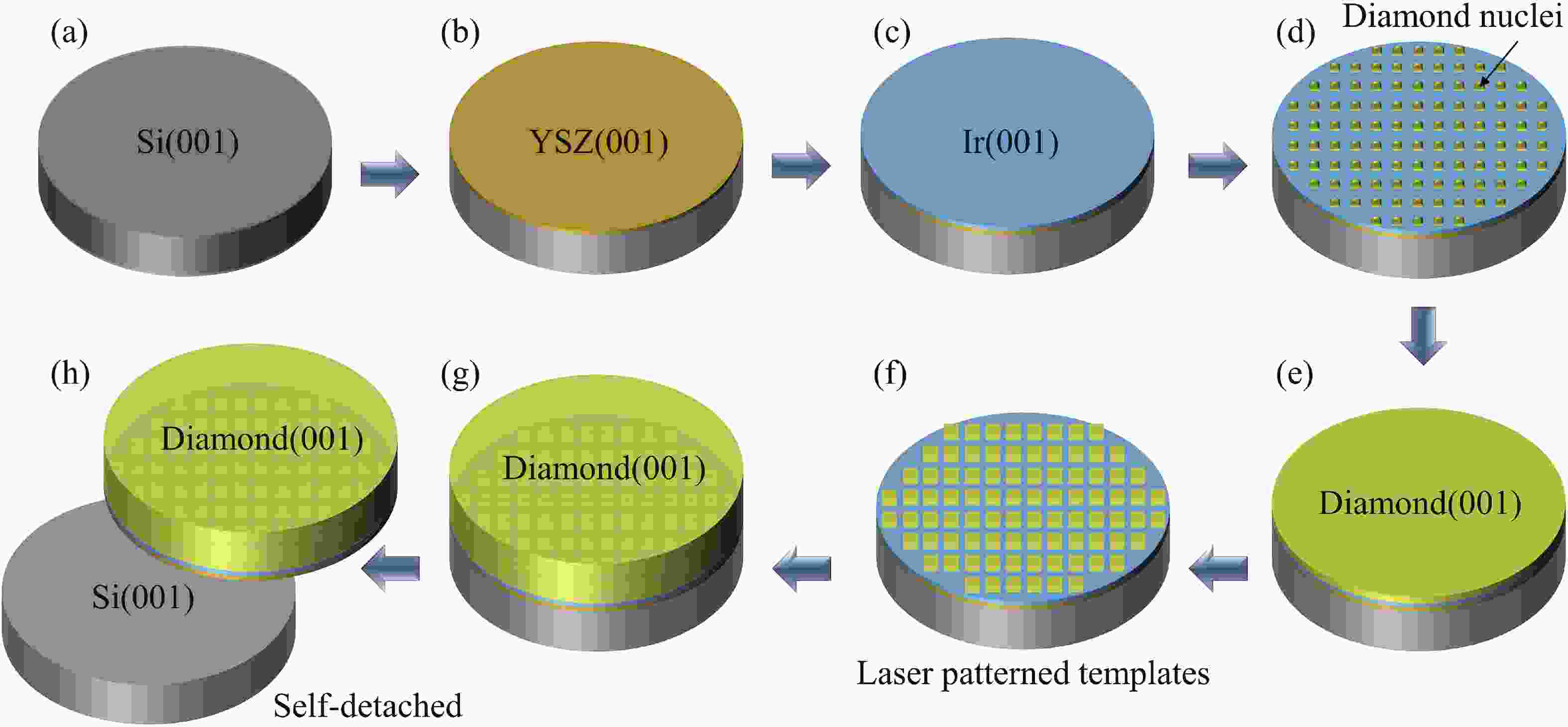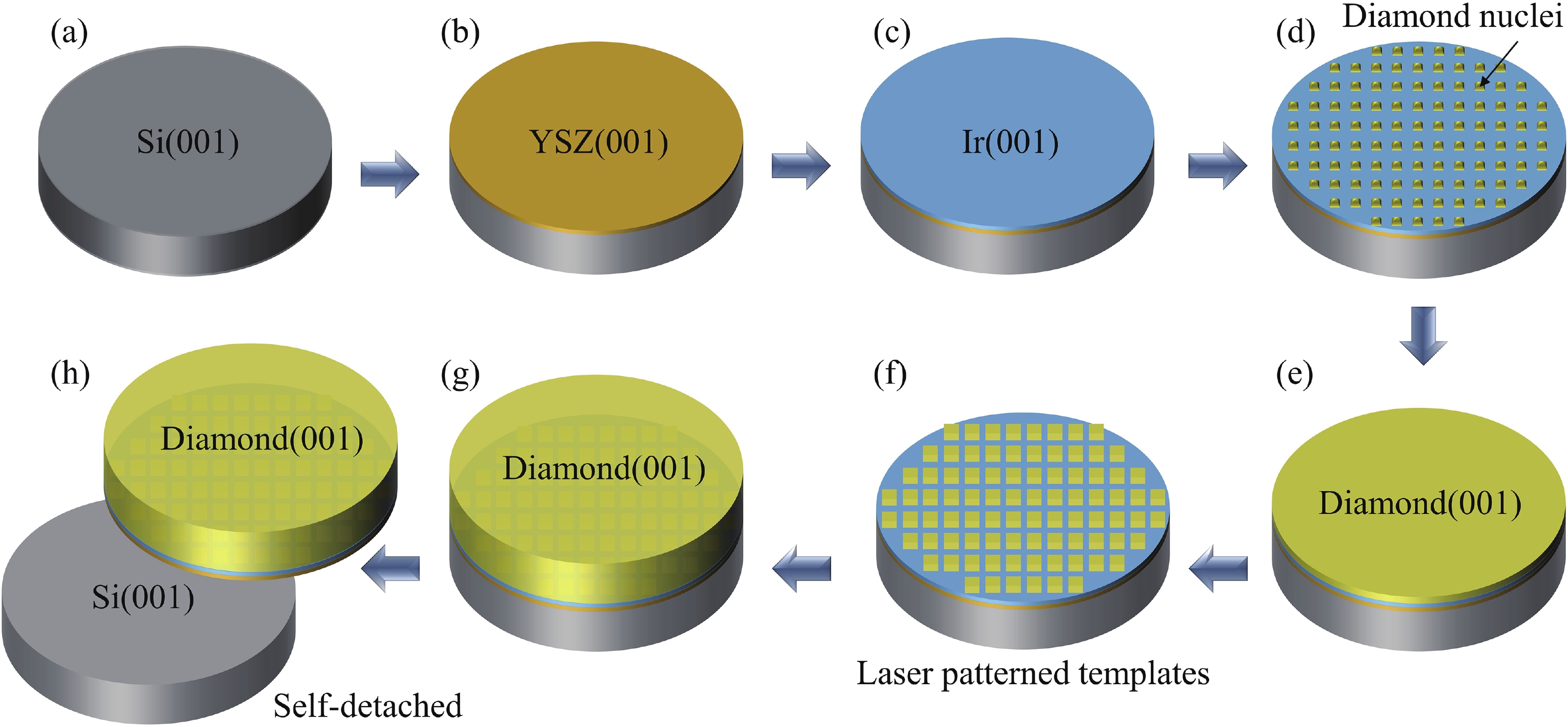 Growth of two-inch free-standing heteroepitaxial diamond on Ir/YSZ/Si (001) substrates via laser-patterned templates