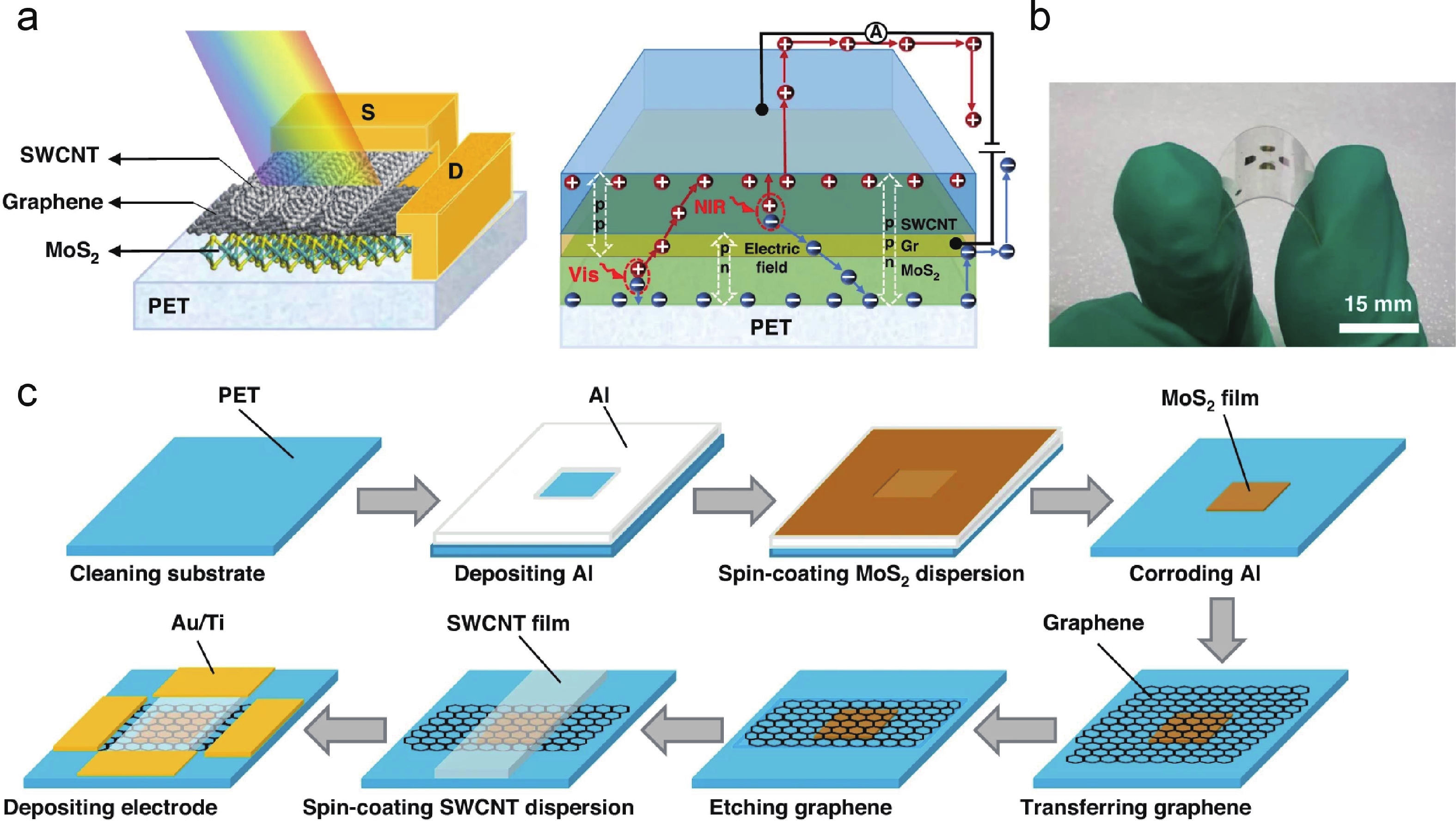 We demonstrate a bipolar graphene/F16CuPc synaptic transistor (GFST) with matched p-type and n-type bipolar properties, which emulates multiplexed neurotransmission of the release of two excitatory neurotransmitters in graphene and F16CuPc channels, separately. This process facilitates fast-switching plasticity by altering charge carriers in the separated channels. The complementary neural network for image recognition of Fashion-MNIST dataset was constructed using the matched relative amplitude and plasticity properties of the GFST dominated by holes or electrons to improve the weight regulation and recognition accuracy, achieving a pattern recognition accuracy of 83.23%. These results provide new insights to the construction of future neuromorphic systems.