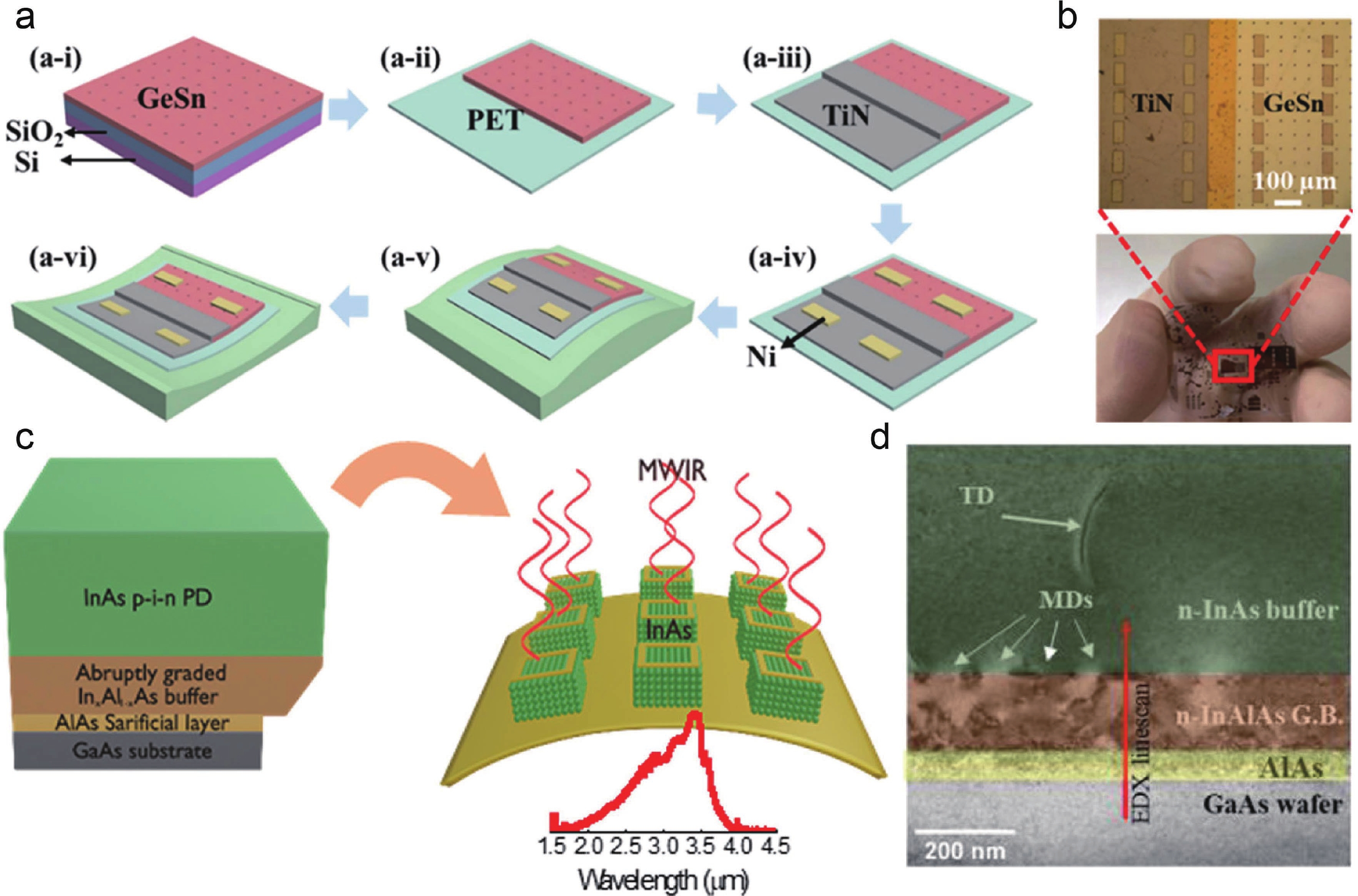 Infrared optoelectronic sensing is the core of many critical applications such as night vision, health and medication, military, space exploration, etc. Further including mechanical flexibility as a new dimension enables novel features of adaptability and conformability, promising for developing next-generation optoelectronic sensory applications toward reduced size, weight, price, power consumption, and enhanced performance (SWaP3). However, in this emerging research frontier, challenges persist in simultaneously achieving high infrared response and good mechanical deformability in devices and integrated systems. Therefore, we perform a comprehensive review of the design strategies and insights of flexible infrared optoelectronic sensors, including the fundamentals of infrared photodetectors, selection of materials and device architectures, fabrication techniques and design strategies, and the discussion of architectural and functional integration towards applications in wearable optoelectronics and advanced image sensing. Finally, this article offers insights into future directions to practically realize the ultra-high performance and smart sensors enabled by infrared-sensitive materials, covering challenges in materials development and device micro-/nanofabrication. Benchmarks for scaling these techniques across fabrication, performance, and integration are presented, alongside perspectives on potential applications in medication and health, biomimetic vision, and neuromorphic sensory systems, etc.