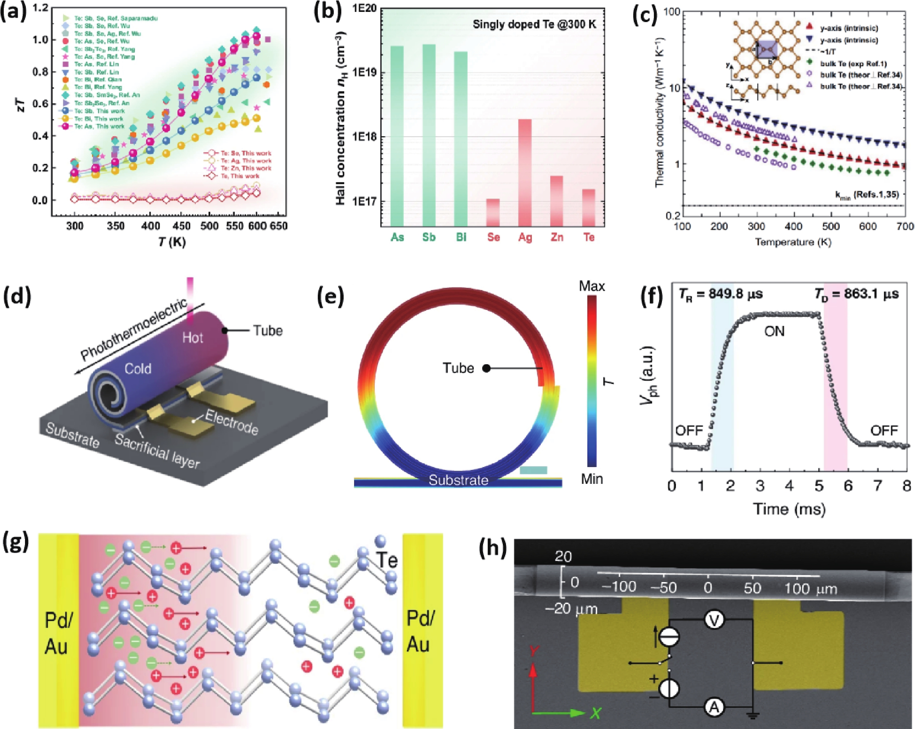 The rapid advancement of information technology has heightened interest in complementary devices and circuits. Conventional p-type semiconductors often lack sufficient electrical performance, thus prompting the search for new materials with high hole mobility and long-term stability. Elemental tellurium (Te), featuring a one-dimensional chiral atomic structure, has emerged as a promising candidate due to its narrow bandgap, high hole mobility, and versatility in industrial applications, particularly in electronics and renewable energy. This review highlights recent progress in Te nanostructures and related devices, focusing on synthesis methods, including vapor deposition and hydrothermal synthesis, which produce Te nanowires, nanorods, and other nanostructures. Critical applications in photodetectors, gas sensors, and energy harvesting devices are discussed, with a special emphasis on their role within the internet of things (IoT) framework, a rapidly growing field that is reshaping our technological landscape. The prospects and potential applications of Te-based technologies are also highlighted.