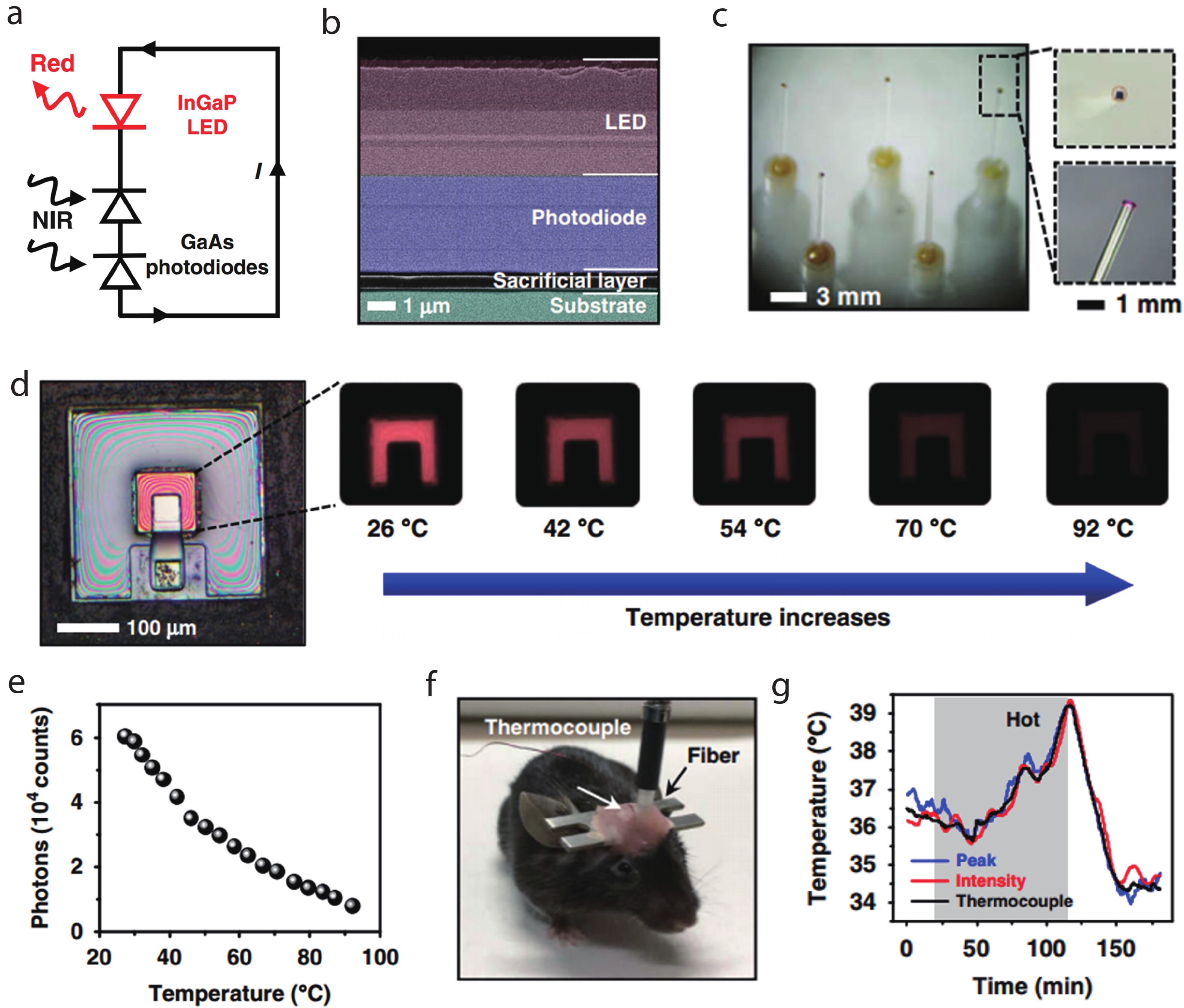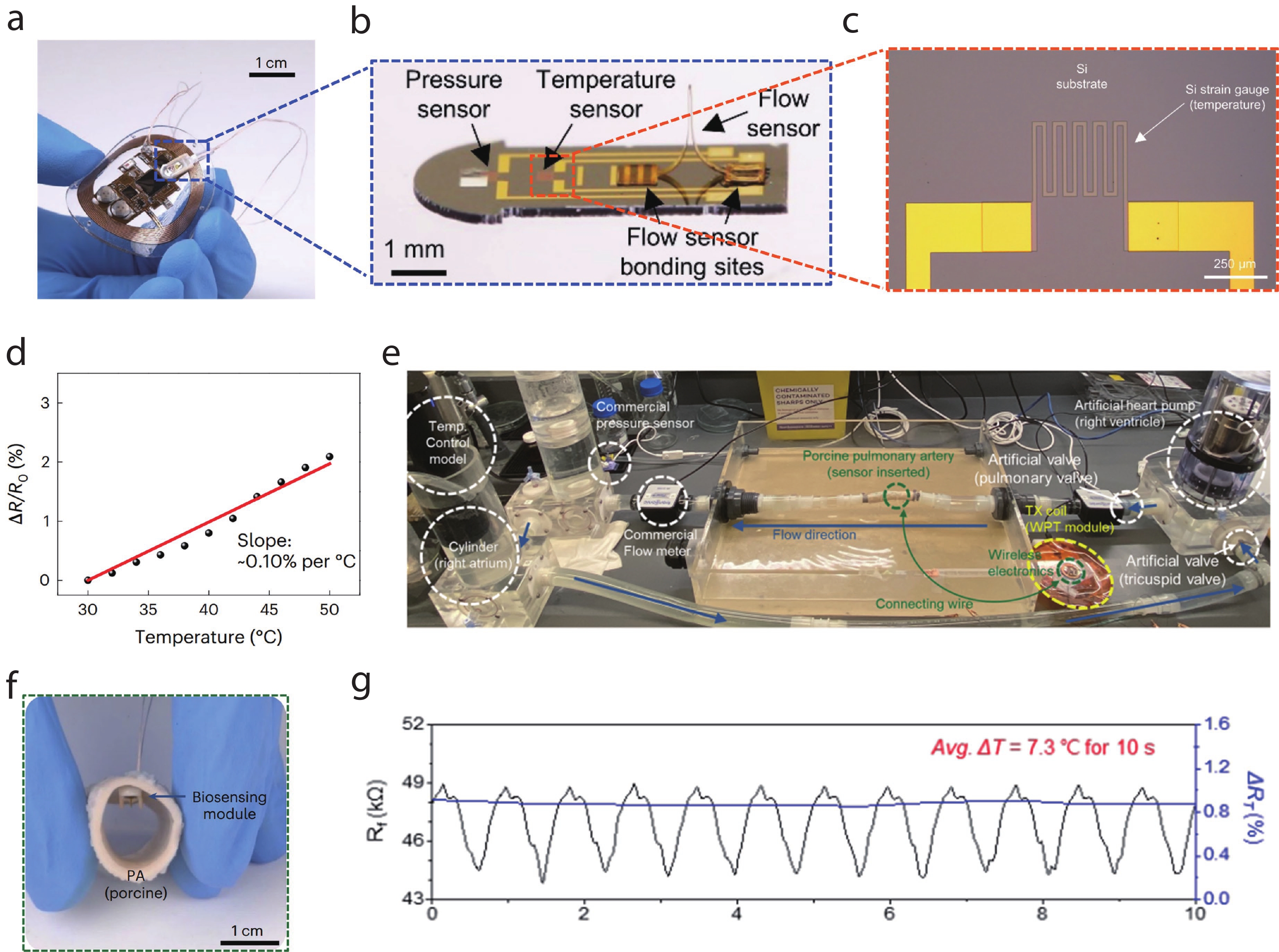 Implantable temperature sensors are revolutionizing physiological monitoring and playing a crucial role in diagnostics, therapeutics, and life sciences research. This review classifies the materials used in these sensors into three categories: metal-based, inorganic semiconductor, and organic semiconductor materials. Metal-based materials are widely used in medical and industrial applications due to their linearity, stability, and reliability. Inorganic semiconductors provide rapid response times and high miniaturization potential, making them promising for biomedical and environmental monitoring. Organic semiconductors offer high sensitivity and ease of processing, enabling the development of flexible and stretchable sensors. This review analyzes recent studies for each material type, covering design principles, performance characteristics, and applications, highlighting key advantages and challenges regarding miniaturization, sensitivity, response time, and biocompatibility. Furthermore, critical performance parameters of implantable temperature sensors based on different material types are summarized, providing valuable references for future sensor design and optimization. The future development of implantable temperature sensors is discussed, focusing on improving biocompatibility, long-term stability, and multifunctional integration. These advancements are expected to expand the application potential of implantable sensors in telemedicine and dynamic physiological monitoring.