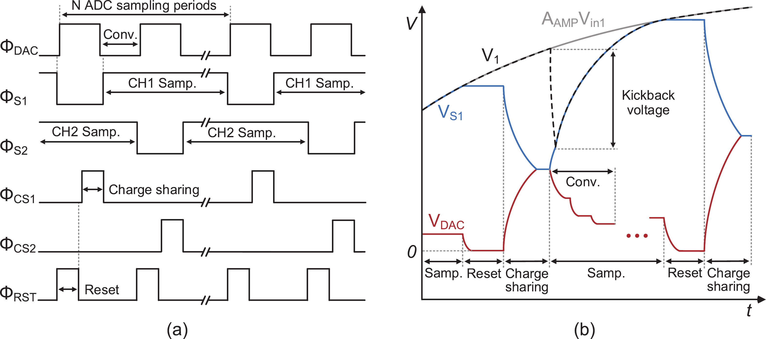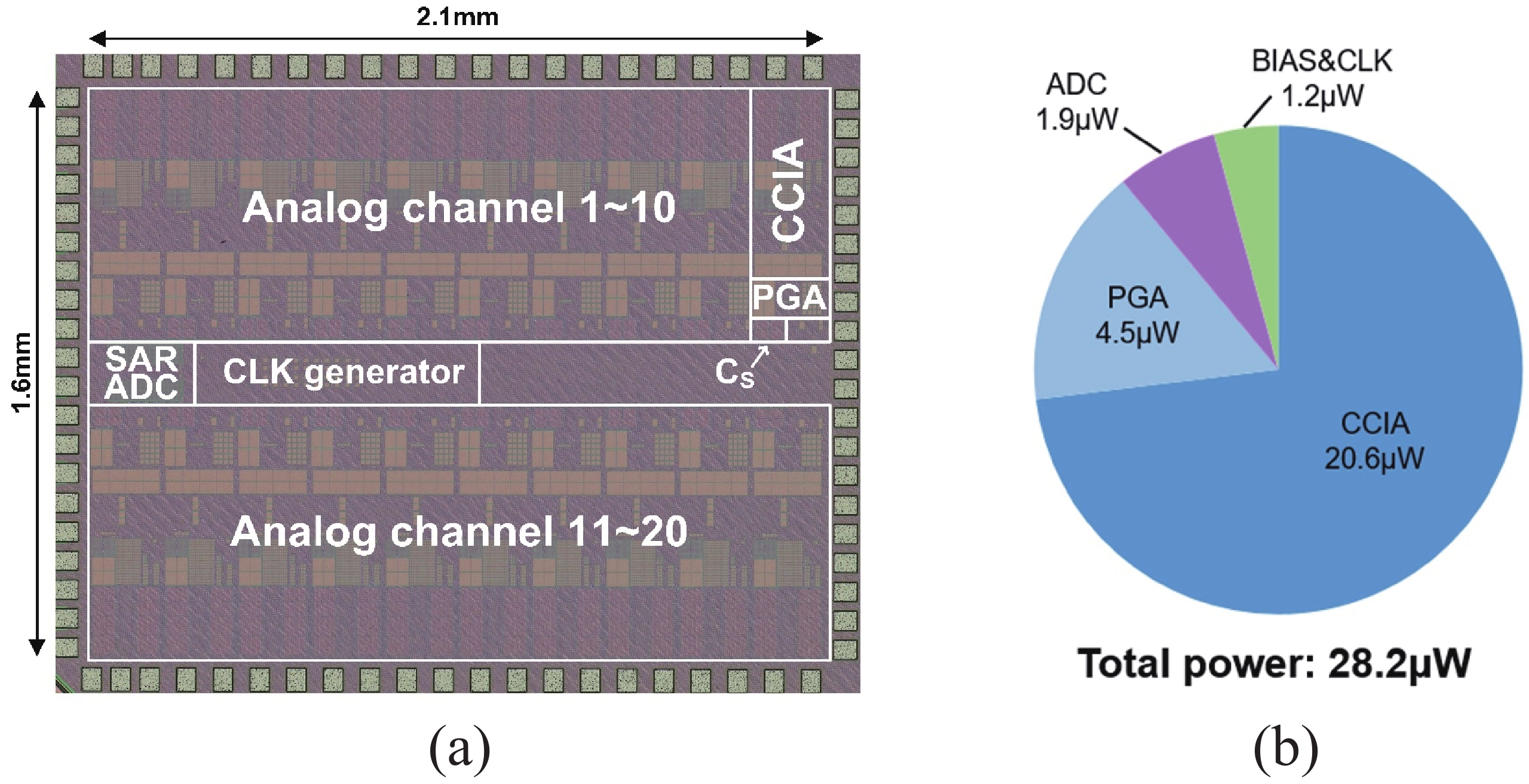 This paper presents the design of a low-power multi-channel analog front-end (AFE) for bio-potential recording. By using time division multiplexing (TDM), a successive approximation register analog-to-digital converter (SAR ADC) is shared among all 20 channels. A charge-sharing multiplexer (MUX) is proposed to transmit the output signals from the respective channels to the ADC. By separately pre sampling the output of each channel, the sampling time of each channel is greatly extended and additional active buffers are avoided. The AFE is fabricated in a 65-nm CMOS process, and the whole system consumes 28.2 μW under 1 V supply. Each analog acquisition channel consumes 1.25 μW and occupies a chip area of 0.14 mm2. Measurement results show that the AFE achieves an input referred noise of 1.8 μV?rms in a 350 Hz bandwidth and a noise efficiency factor (NEF) of 4.1. The 12-bit SAR ADC achieves an ENOB of 9.8 bit operating at 25 kS/s. The AFE is experimented on real-world applications by measuring human ECG and a clear ECG waveform is captured.