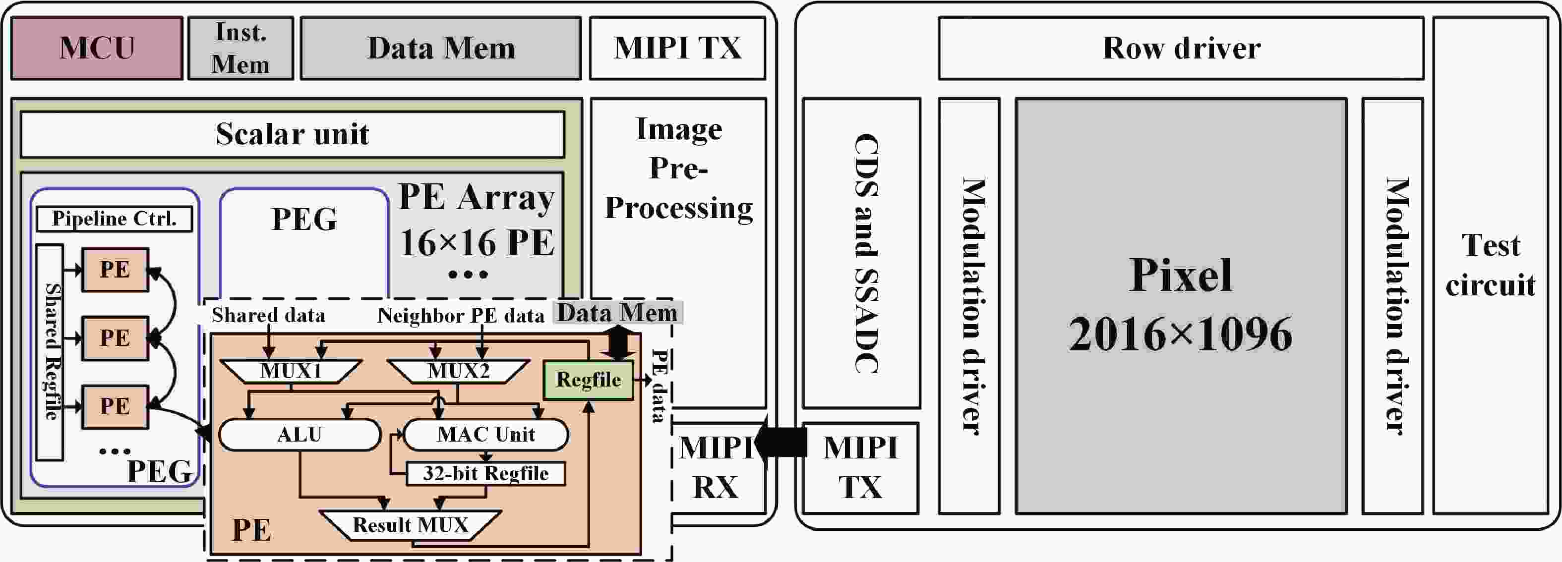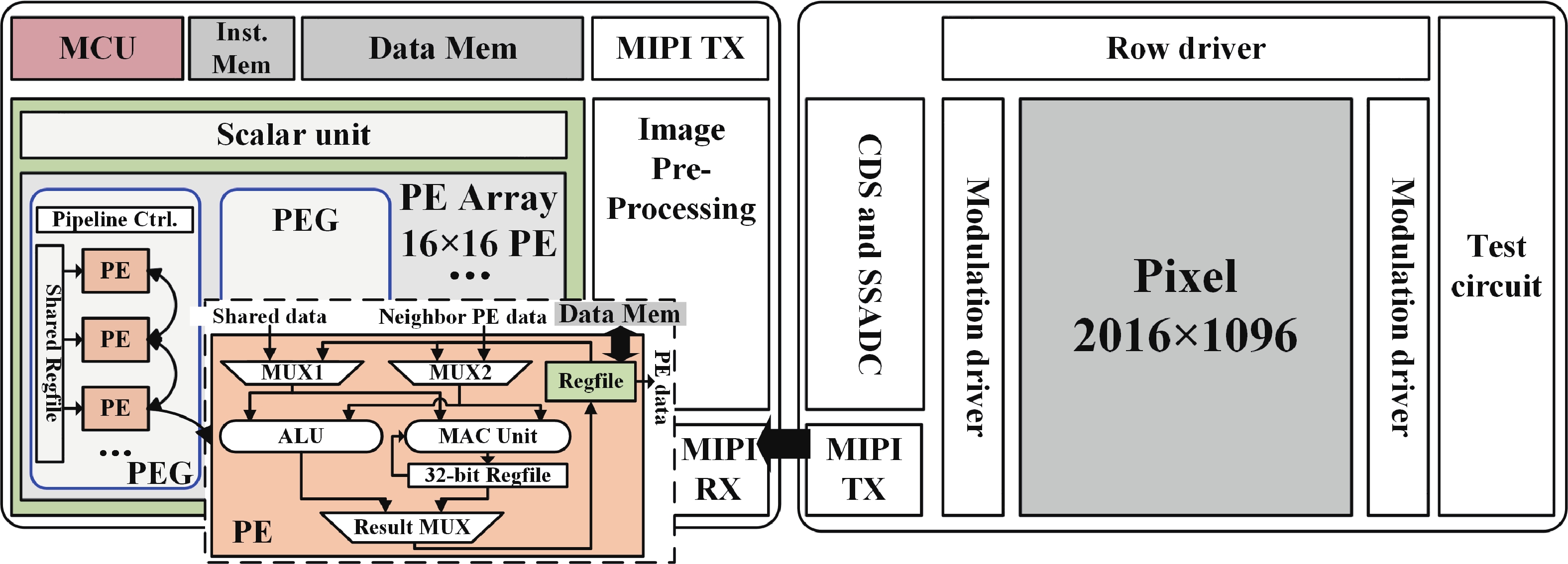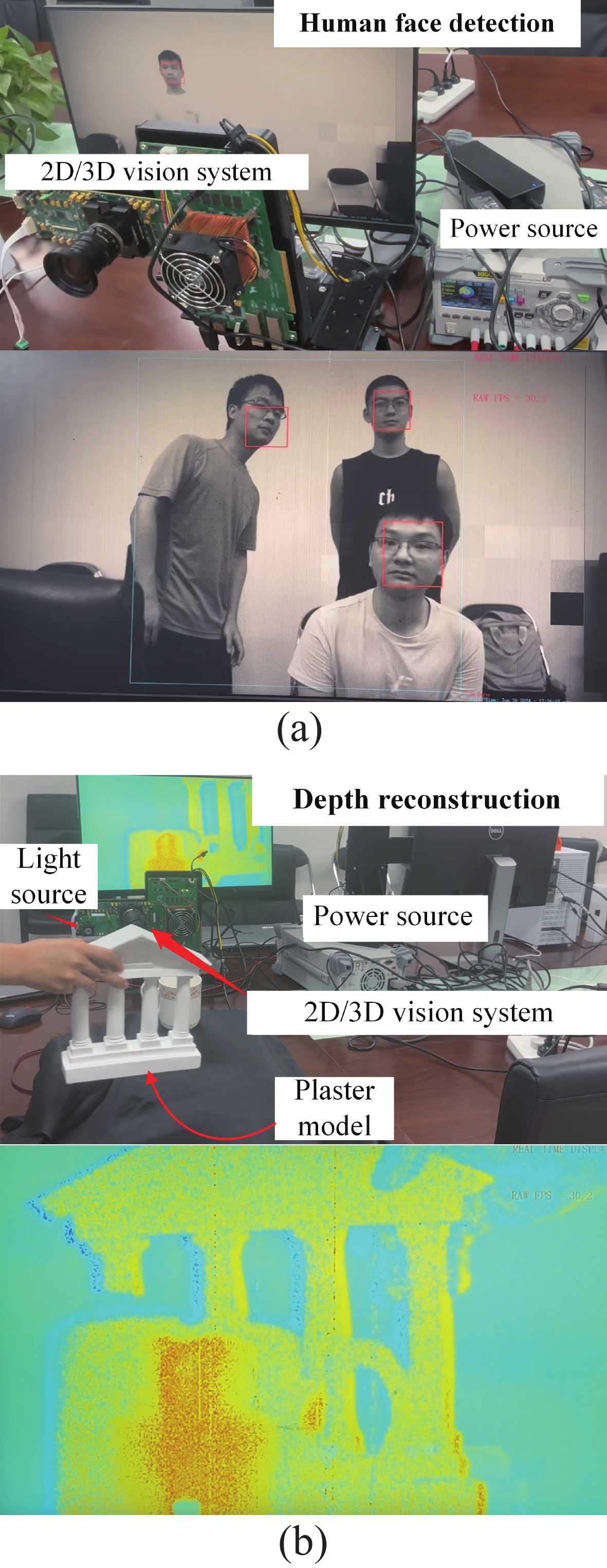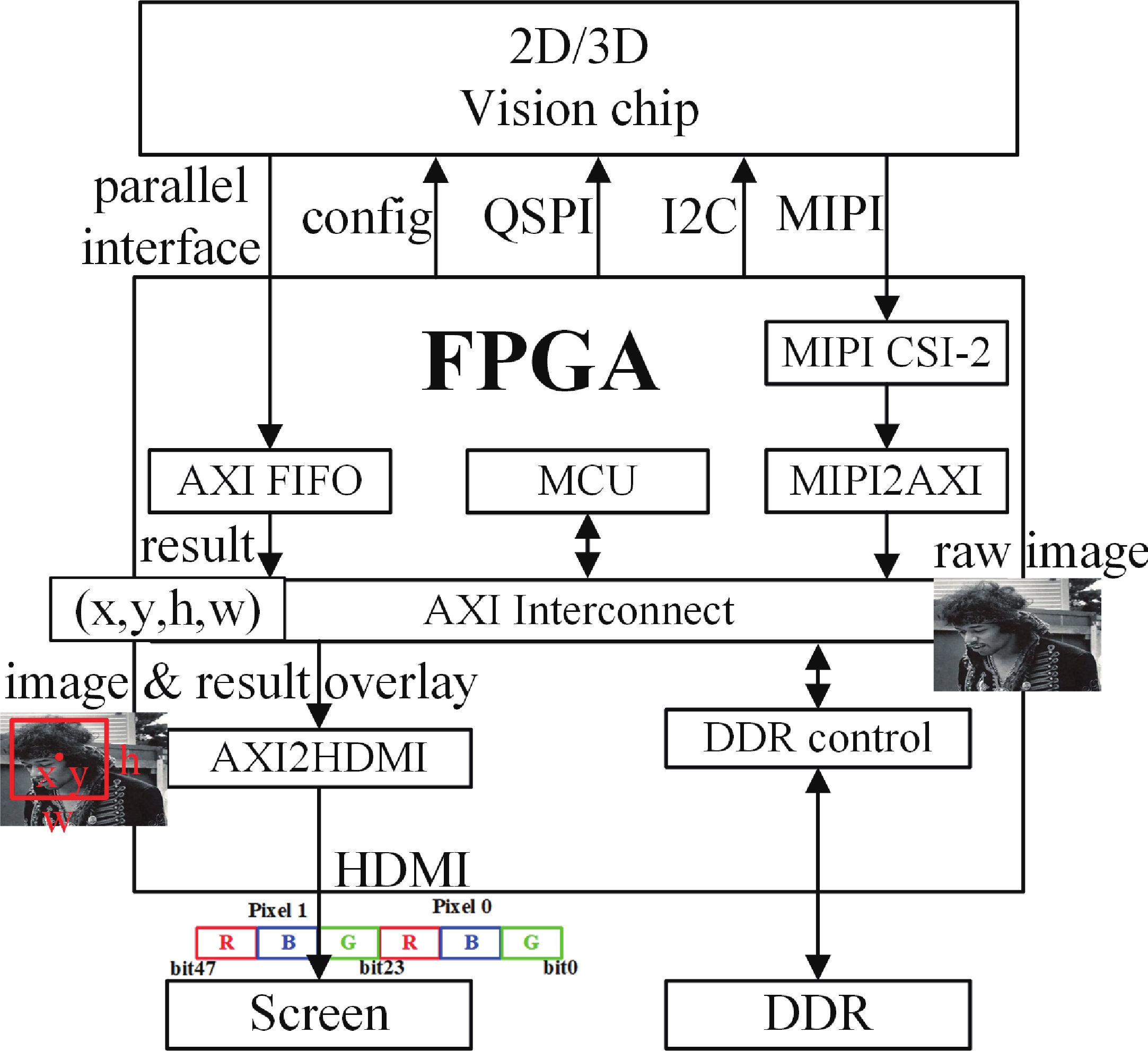 This paper describes a 2D/3D vision chip with integrated sensing and processing capabilities. The 2D/3D vision chip architecture includes a 2D/3D image sensor and a programmable visual processor. In this architecture, we design a novel on-chip processing flow with die-to-die image transmission and low-latency fixed-point image processing. The vision chip achieves real-time end-to-end processing of convolutional neural networks (CNNs) and conventional image processing algorithms. Furthermore, an end-to-end 2D/3D vision system is built to exhibit the capacity of the vision chip. The vision system achieves real-timing applications under 2D and 3D scenes, such as human face detection (processing delay 10.2 ms) and depth map reconstruction (processing delay 4.1 ms). The frame rate of image acquisition, image process, and result display is larger than 30 fps.