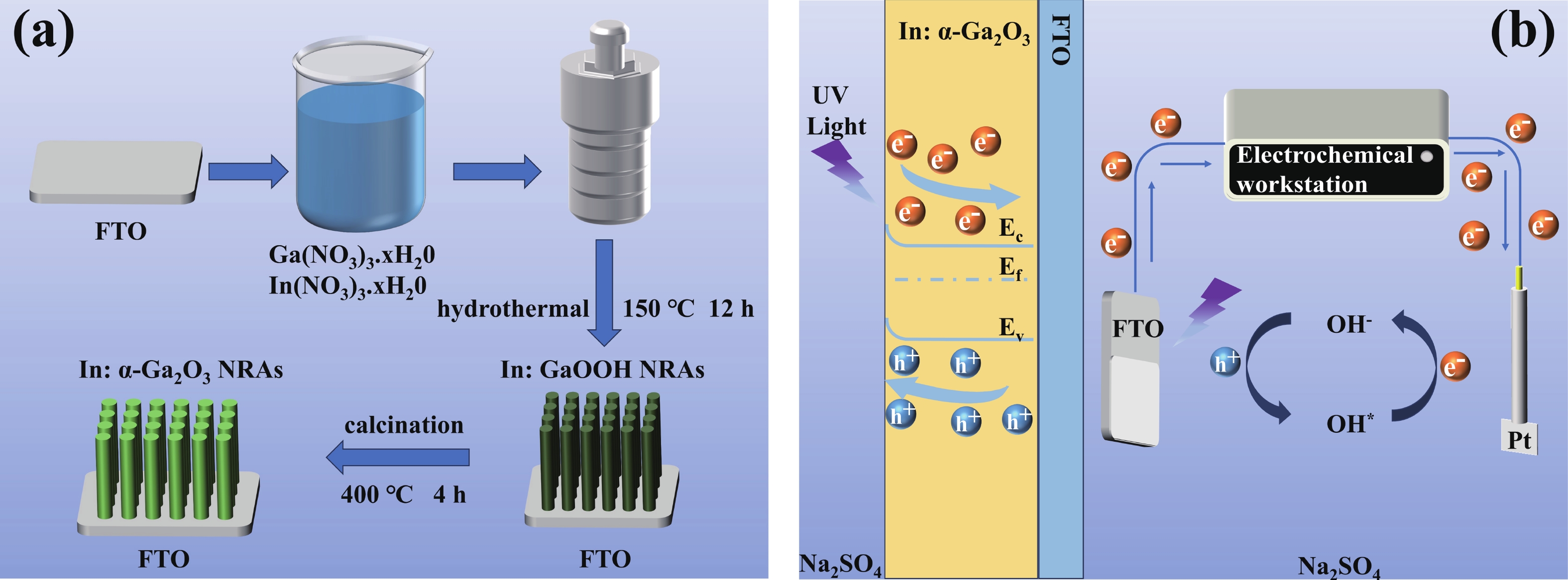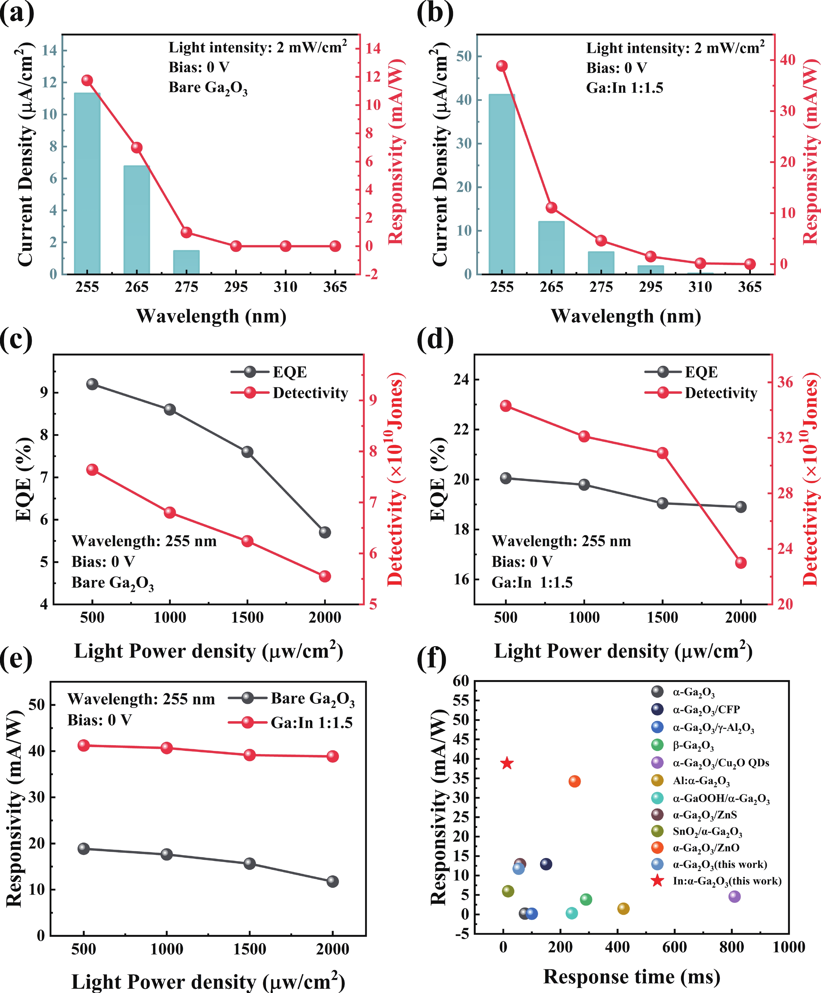 Low power consumption, high responsivity, and self-powering are key objectives for photoelectrochemical ultraviolet detectors. In this research, In-doped α-Ga2O3 nanowire arrays were fabricated on fluorine-doped tin oxide (FTO) substrates through a hydrothermal approach, with subsequent thermal annealing. These arrays were then used as photoanodes to construct a ultraviolet (UV) photodetector. In doping reduced the bandgap of α-Ga2O3, enhancing its absorption of UV light. Consequently, the In-doped α-Ga2O3 nanowire arrays exhibited excellent light detection performance. When irradiated by 255 nm deep ultraviolet light, they obtained a responsivity of 38.85 mA/W. Moreover, the detector's response and recovery times are 13 and 8 ms, respectively. The In-doped α-Ga2O3 nanowire arrays exhibit a responsivity that is about three-fold higher than the undoped one. Due to its superior responsivity, the In-doped device was used to develop a photoelectric imaging system. This study demonstrates that doping α-Ga2O3 nanowire with indium is a potent approach for optimizing their photoelectrochemical performance, which also has significant potential for optoelectronic applications.
