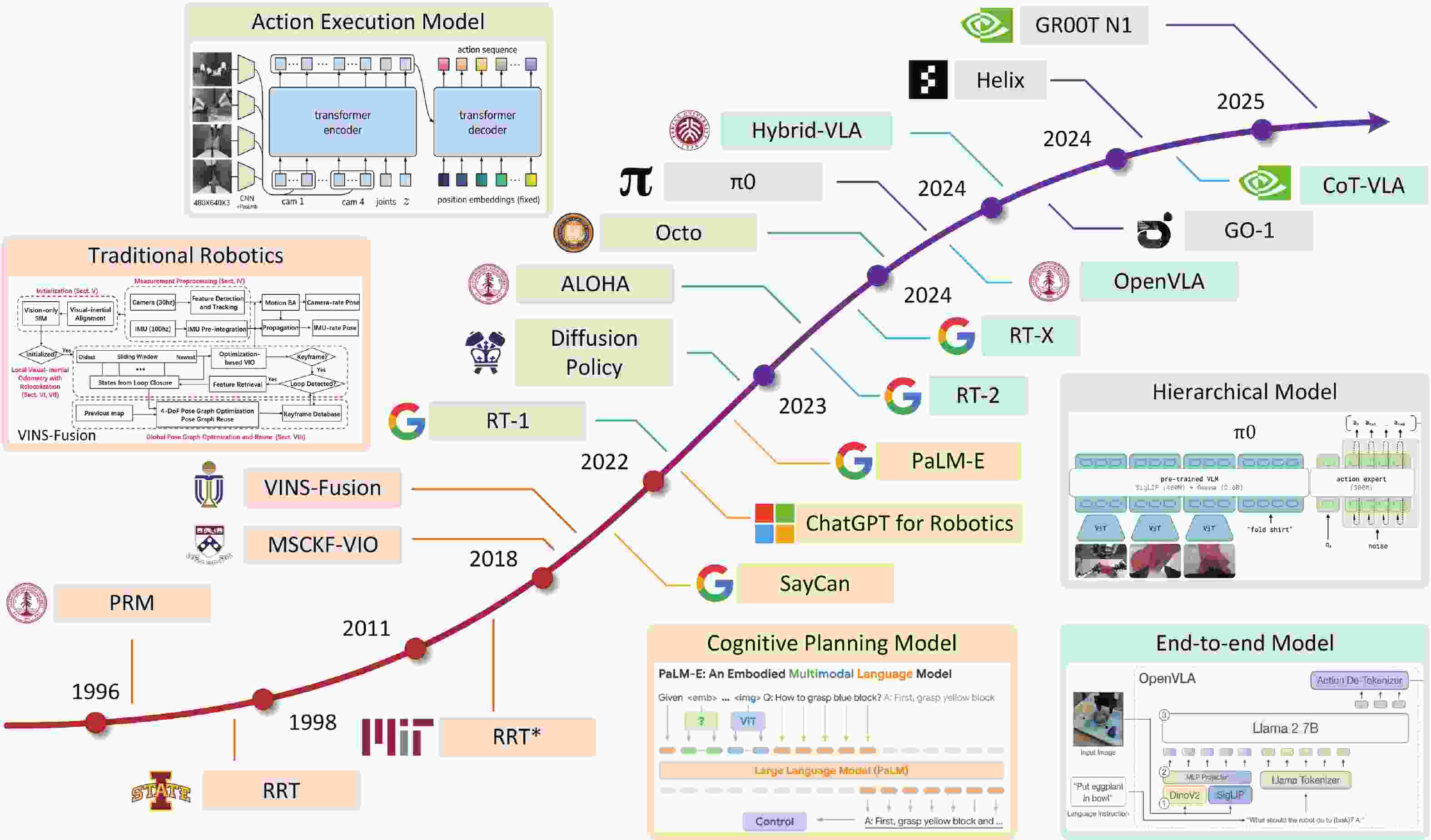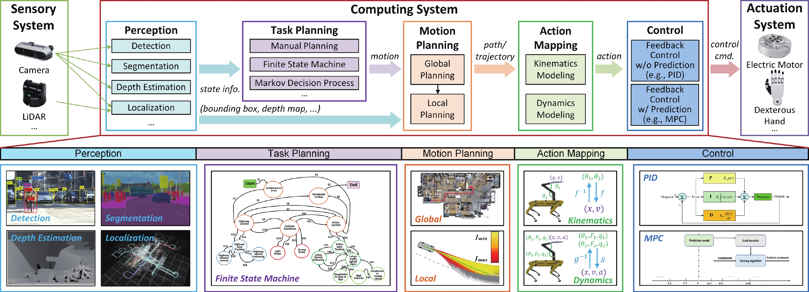 Robotic computing systems play an important role in enabling intelligent robotic tasks through intelligent algorithms and supporting hardware. In recent years, the evolution of robotic algorithms indicates a roadmap from traditional robotics to hierarchical and end-to-end models. This algorithmic advancement poses a critical challenge in achieving balanced system-wide performance. Therefore, algorithm-hardware co-design has emerged as the primary methodology, which analyzes algorithm behaviors on hardware to identify common computational properties. These properties can motivate algorithm optimization to reduce computational complexity and hardware innovation from architecture to circuit for high performance and high energy efficiency. We then reviewed recent works on robotic and embodied AI algorithms and computing hardware to demonstrate this algorithm-hardware co-design methodology. In the end, we discuss future research opportunities by answering two questions: (1) how to adapt the computing platforms to the rapid evolution of embodied AI algorithms, and (2) how to transform the potential of emerging hardware innovations into end-to-end inference improvements.