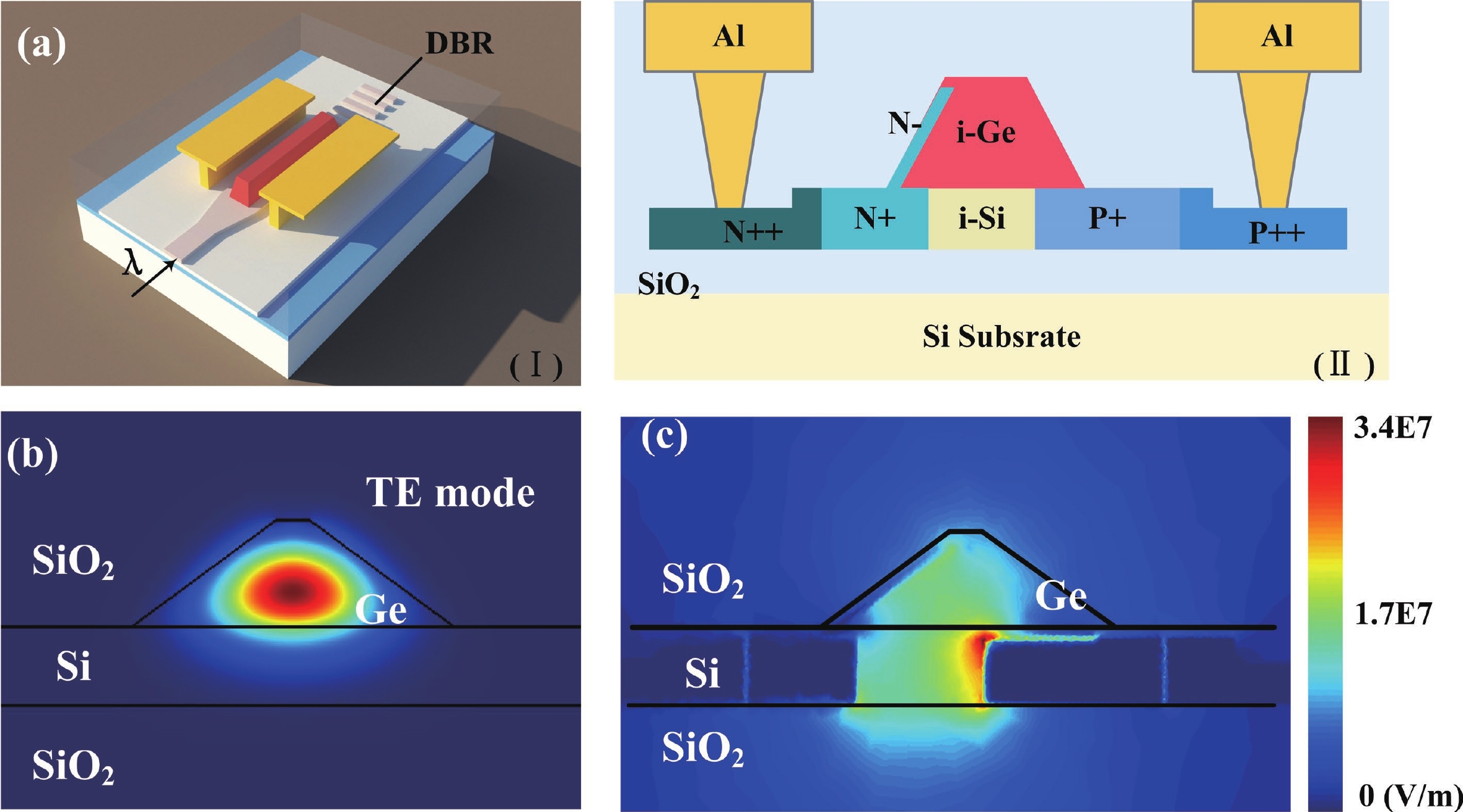 A silicon-based germanium (Ge) photodetector working for C and L bands is proposed in this paper. The device features a novel asymmetric PIN structure, which contributes to a more optimized electric field distribution in Ge and a shorter effective width of depleted region. Meanwhile, the optical structure is designed carefully to enhance responsivity for broadband. Under ?7 V, where the weak avalanche process happens, the responsivity of our device is 1.49 and 1.16 A/W at 1550 and 1600 nm, with bandwidth of 47.1 and 44.5 GHz, respectively. These performances demonstrate the significant application potential of the device in optical communication systems.