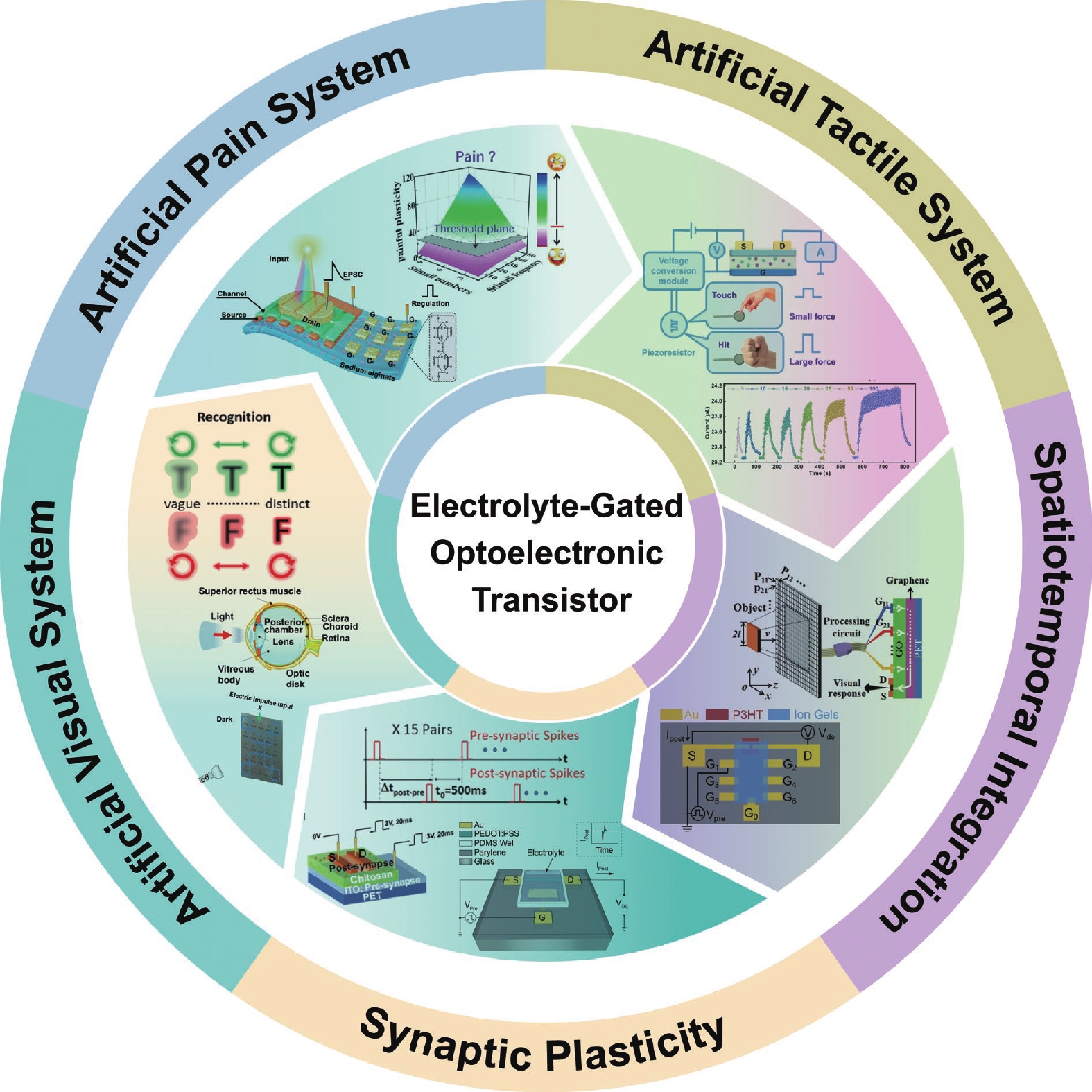 The traditional von Neumann architecture has demonstrated inefficiencies in parallel computing and adaptive learning, rendering it incapable of meeting the growing demand for efficient and high-speed computing. Neuromorphic computing with significant advantages such as high parallelism and ultra-low power consumption is regarded as a promising pathway to overcome the limitations of conventional computers and achieve the next-generation artificial intelligence. Among various neuromorphic devices, the artificial synapses based on electrolyte-gated transistors stand out due to their low energy consumption, multimodal sensing/recording capabilities, and multifunctional integration. Moreover, the emerging optoelectronic neuromorphic devices which combine the strengths of photonics and electronics have demonstrated substantial potential in the neuromorphic computing field. Therefore, this article reviews recent advancements in electrolyte-gated optoelectronic neuromorphic transistors. First, it provides an overview of artificial optoelectronic synapses and neurons, discussing aspects such as device structures, operating mechanisms, and neuromorphic functionalities. Next, the potential applications of optoelectronic synapses in different areas such as artificial visual system, pain system, and tactile perception systems are elaborated. Finally, the current challenges are summarized, and future directions for their developments are proposed.