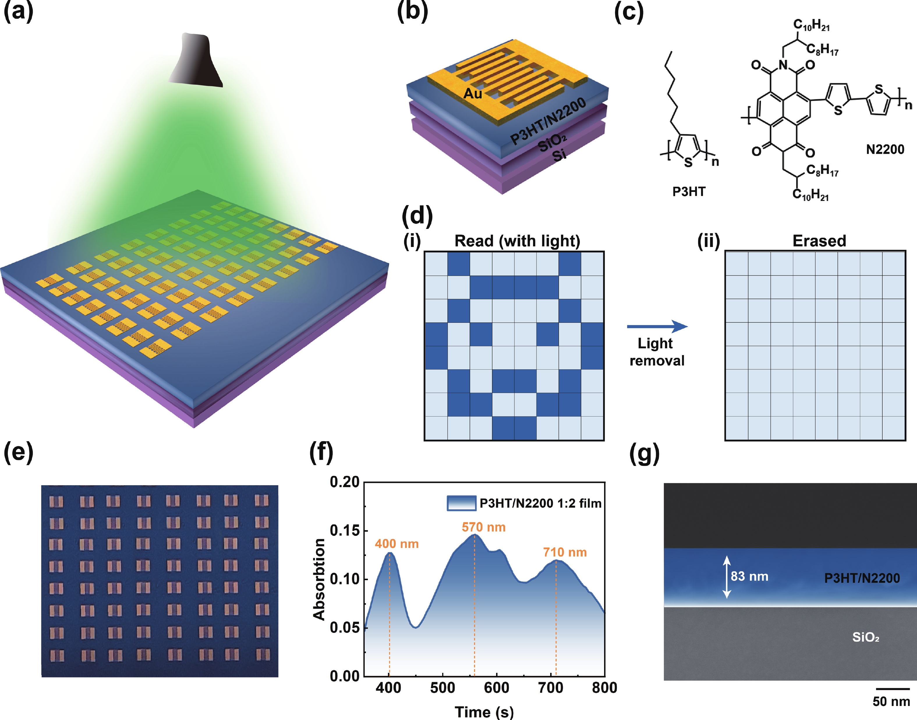 In this data explosion era, ensuring the secure storage, access, and transmission of information is imperative, encompassing all aspects ranging from safeguarding personal devices to formulating national information security strategies. Leveraging the potential offered by dual-type carriers for transportation and employing optical modulation techniques to develop high reconfigurable ambipolar optoelectronic transistors enables effective implementation of information destruction after reading, thereby guaranteeing data security. In this study, a reconfigurable ambipolar optoelectronic synaptic transistor based on poly (3-hexylthiophene) (P3HT) and poly [[N,N-bis(2-octyldodecyl)-napthalene-1,4,5,8-bis(dicarboximide)-2,6-diyl]-alt-5,5′-(2,2′-bithiophene)] (N2200) blend film was fabricated through solution-processed method. The resulting transistor exhibited a relatively large ON/OFF ratio of 103 in both n- and p-type regions, and tunable photoconductivity after light illumination, particularly with green light. The photo-generated carriers could be effectively trapped under the gate bias, indicating its potential application in mimicking synaptic behaviors. Furthermore, the synaptic plasticity, including volatile/non?volatile and excitatory/inhibitory characteristics, could be finely modulated by electrical and optical stimuli. These optoelectronic reconfigurable properties enable the realization of information light assisted burn after reading. This study not only offers valuable insights for the advancement of high-performance ambipolar organic optoelectronic synaptic transistors but also presents innovative ideas for the future information security access systems.