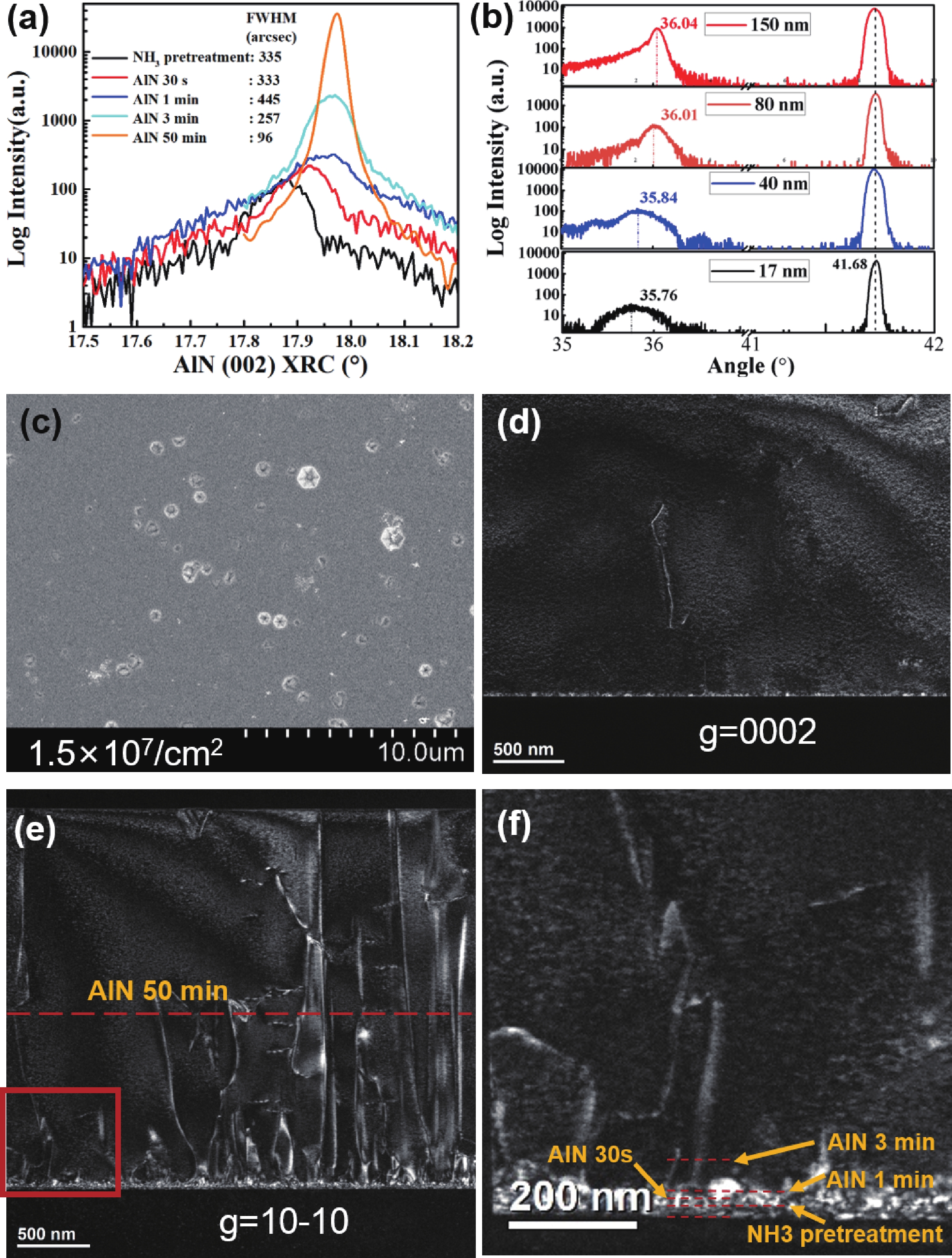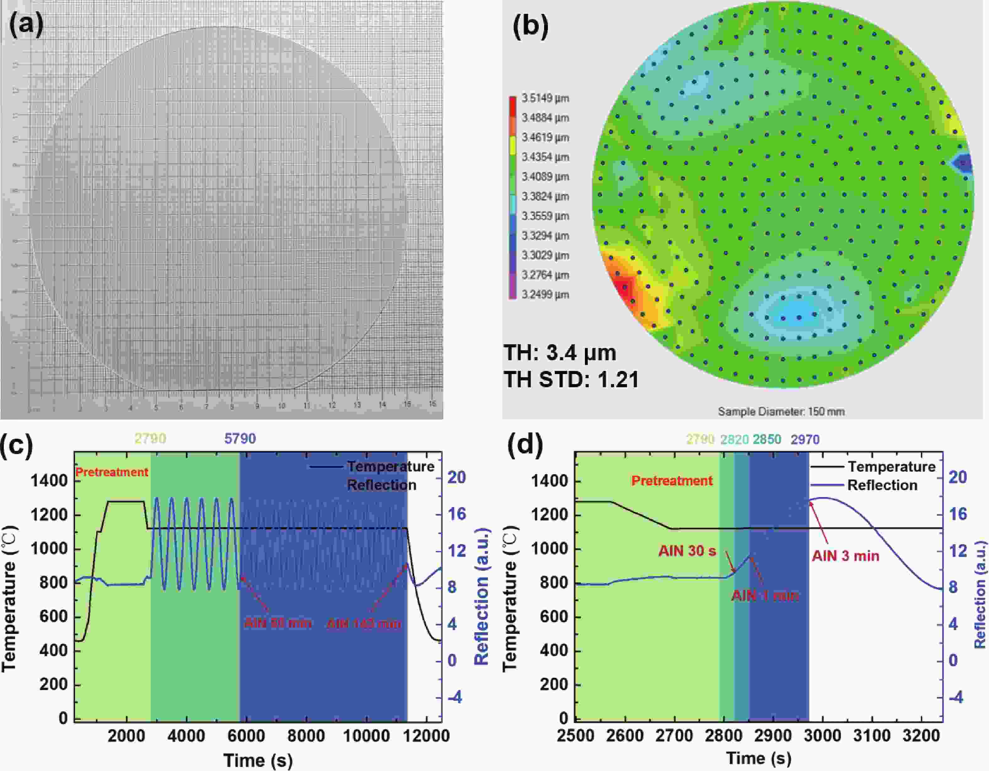 6-inch AlN epitaxial films with low dislocation densities via MOCVD