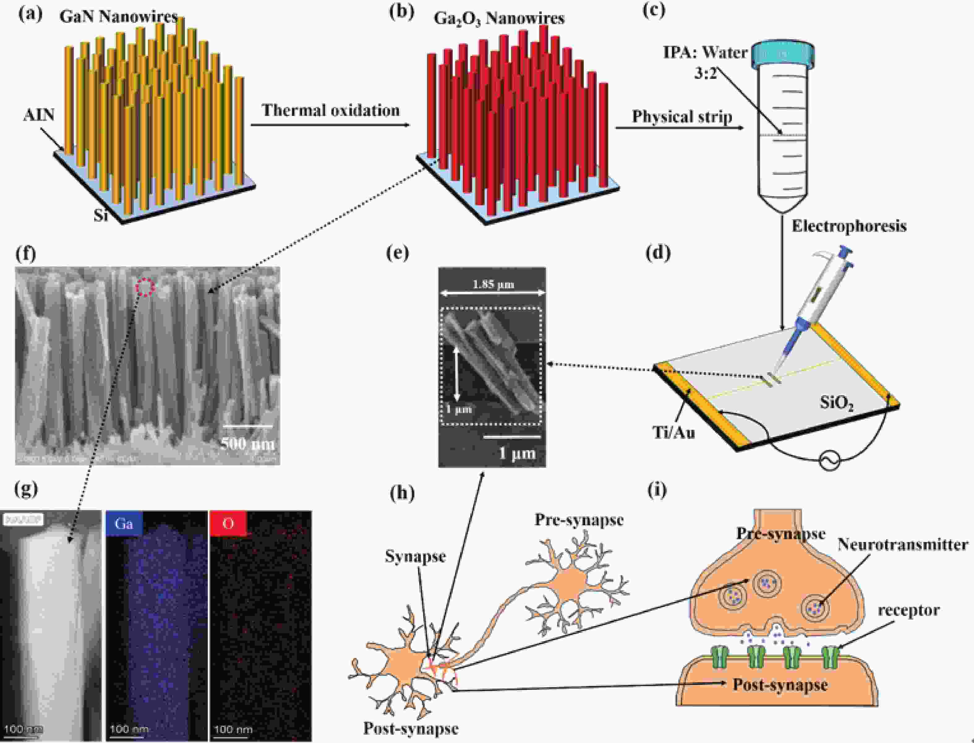 Synaptic nano-devices have powerful capabilities in logic, memory and learning, making them essential components for constructing brain-like neuromorphic computing systems. Here, we have successfully developed and demonstrated a synaptic nano-device based on Ga2O3 nanowires with low energy consumption. Under 255 nm light stimulation, the biomimetic synaptic nano-device can stimulate various functionalities of biological synapses, including pulse facilitation, peak time-dependent plasticity and memory learning ability. It is found that the artificial synaptic device based on Ga2O3 nanowires can achieve an excellent "learning?forgetting?relearning" functionality. The transition from short-term memory to long-term memory and retention of the memory level after the stepwise learning can attribute to the great relearning functionality of Ga2O3 nanowires. Furthermore, the energy consumption of the synaptic nano-device can be lower than 2.39 × 10?11 J for a synaptic event. Moreover, our device demonstrates exceptional stability in long-term stimulation and storage. In the application of neural morphological computation, the accuracy of digit recognition exceeds 90% after 12 training sessions, indicating the strong learning capability of the cognitive system composed of this synaptic nano-device. Therefore, our work paves an effective way for advancing hardware-based neural morphological computation and artificial intelligence systems requiring low power consumption.