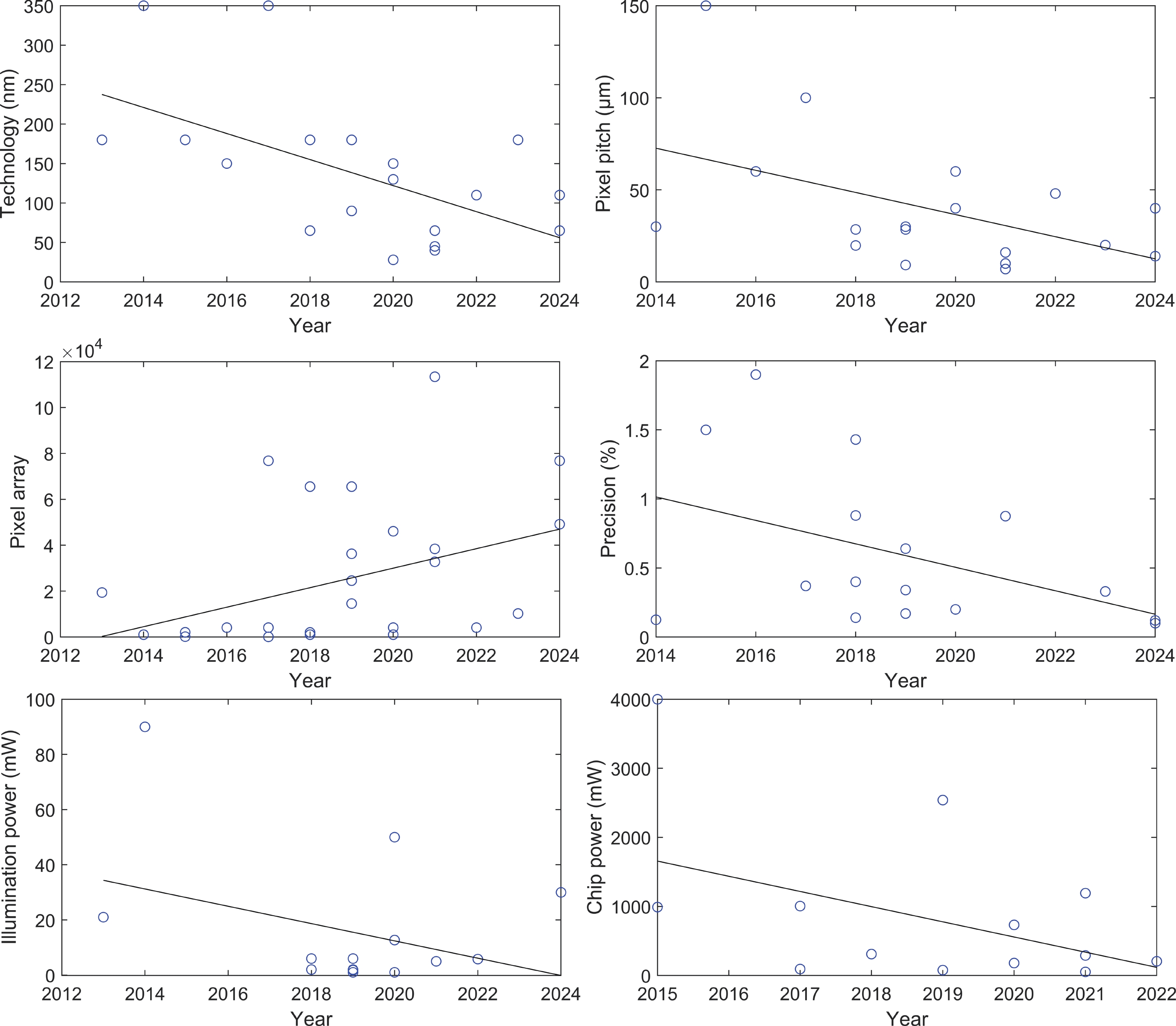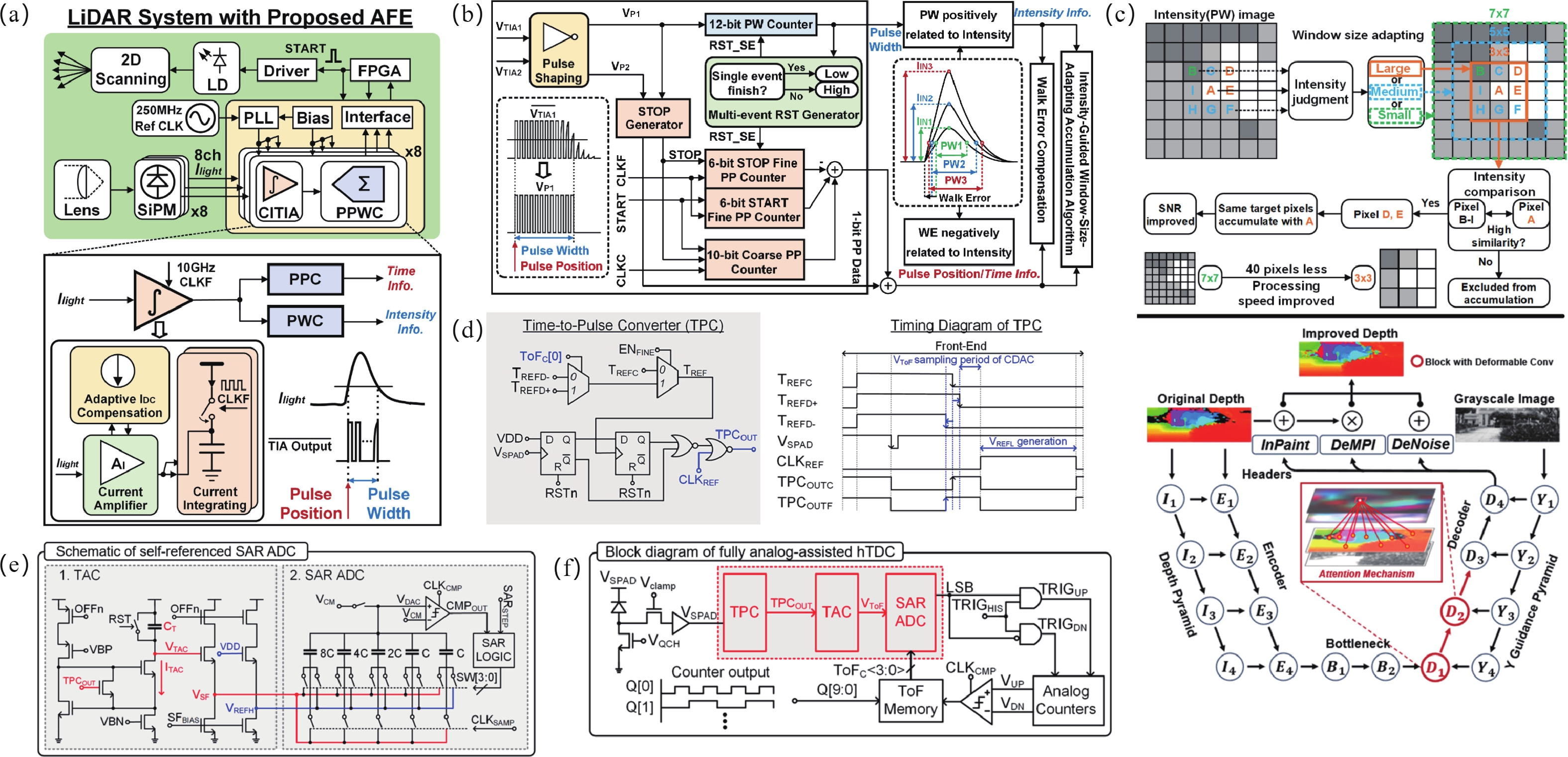Zou C R, Ou Y Z, Zhu Y, et al. 6.8 A 256 × 192-pixel 30fps automotive direct time-of-flight LiDAR using 8 × current-integrating-based TIA, hybrid pulse position/width converter, and intensity/CNN-guided 3D inpainting. 2024 IEEE International Solid-State Circuits Conference (ISSCC), 2024, 114 doi: 10.1109/ISSCC49657.2024.10454461