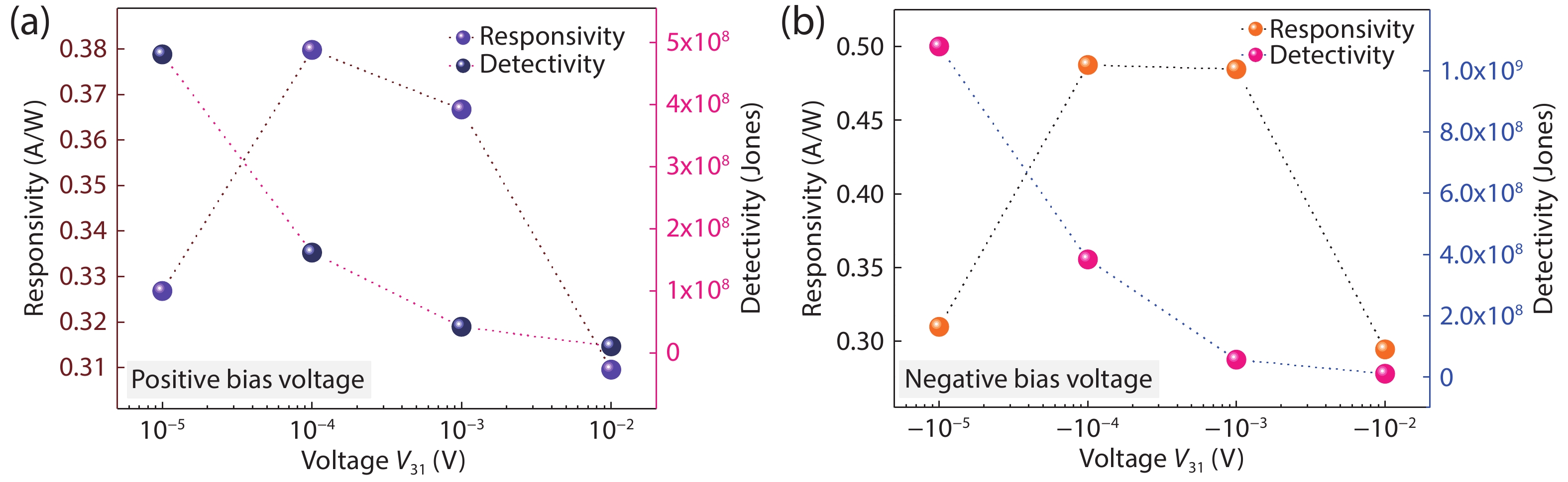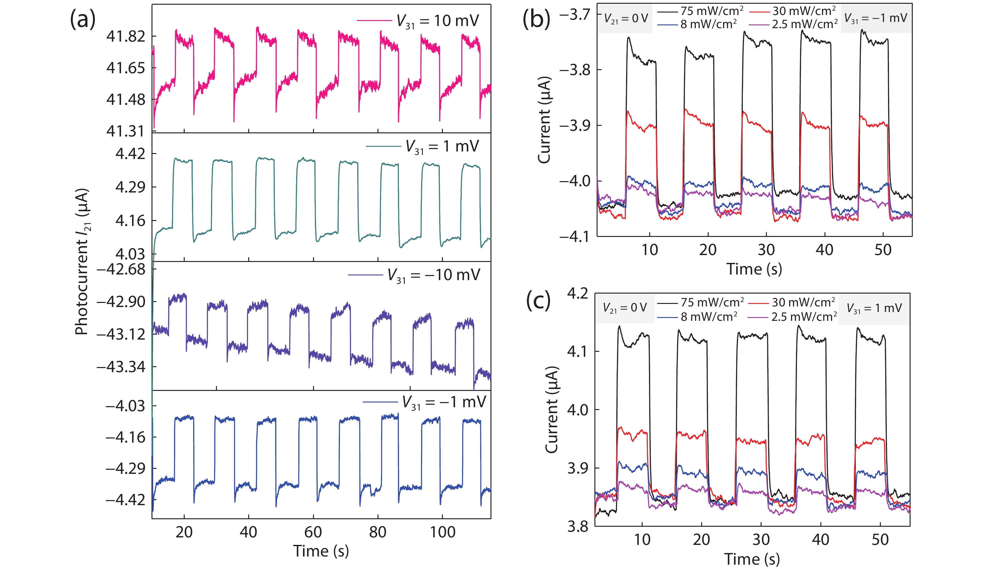 | Ag/(R/S-β-MPA)4AgBiI8 bulk single crystal | 5 V, 520 nm (270 mW/cm2) |