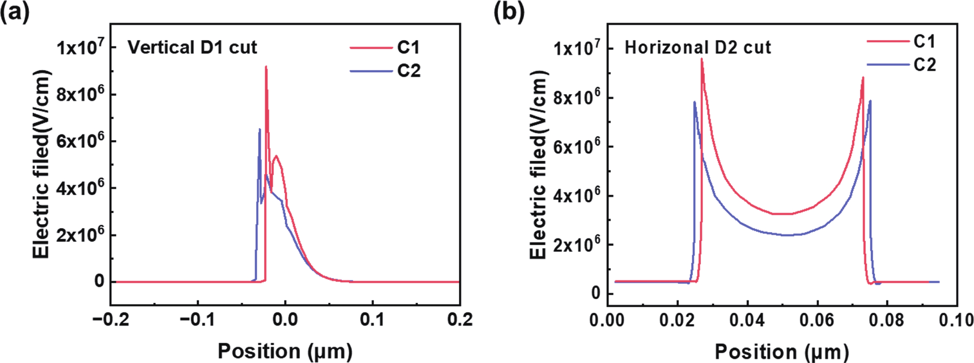 | TCAD horizontal e-field peak value (V/cm) | 9.58 × 106 | 7.82 × 106 | ?18.4% |