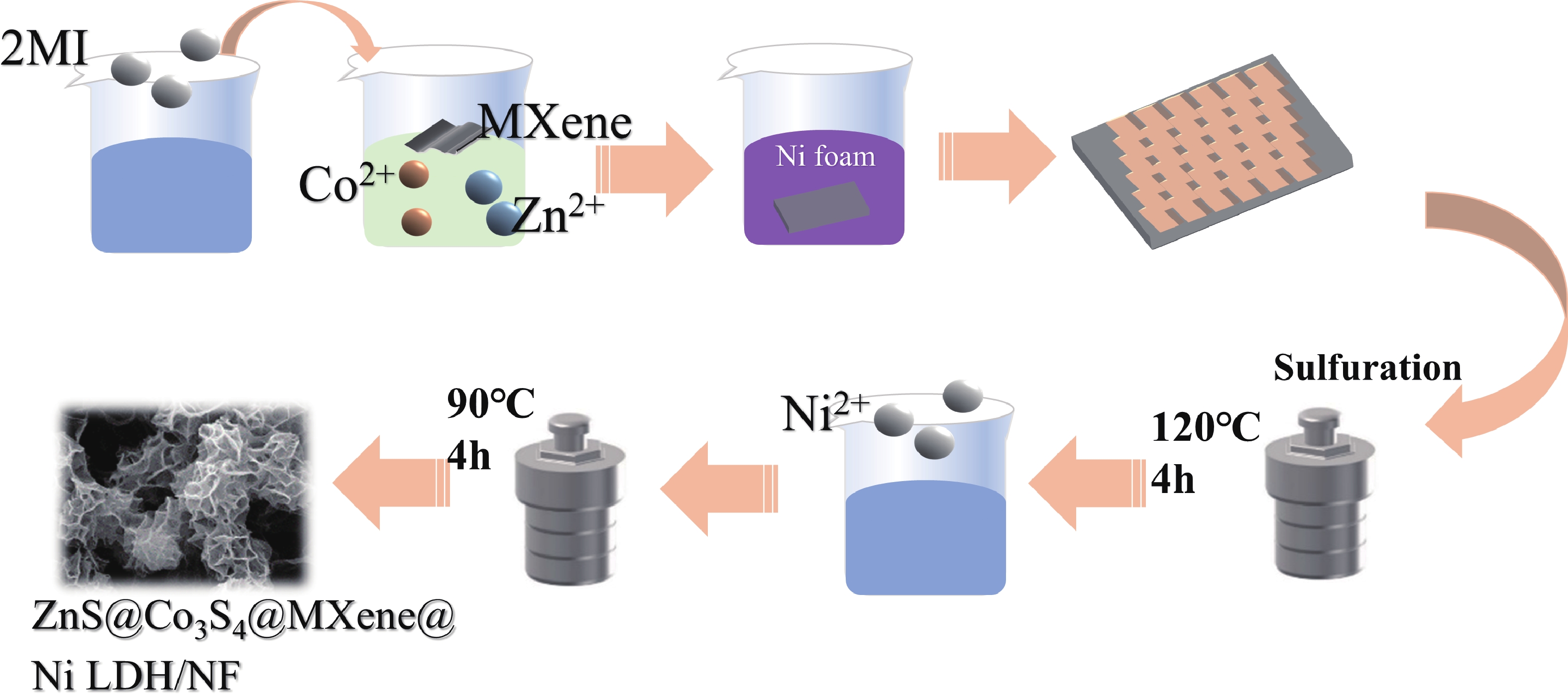 Xiang Luo, Kexin Li, Gentian Yue, Yueyue Gao, Chen Dong, Furui Tan. A ZIF-derived ZnS@Co3S4 coupled with MXene and Ni-LDH on Ni foam: constructing a honeycomb-like electrode for advanced supercapacitor[J]. Journal of Semiconductors, 2026, 47(3): 032702. doi: 10.1088/1674-4926/25060002