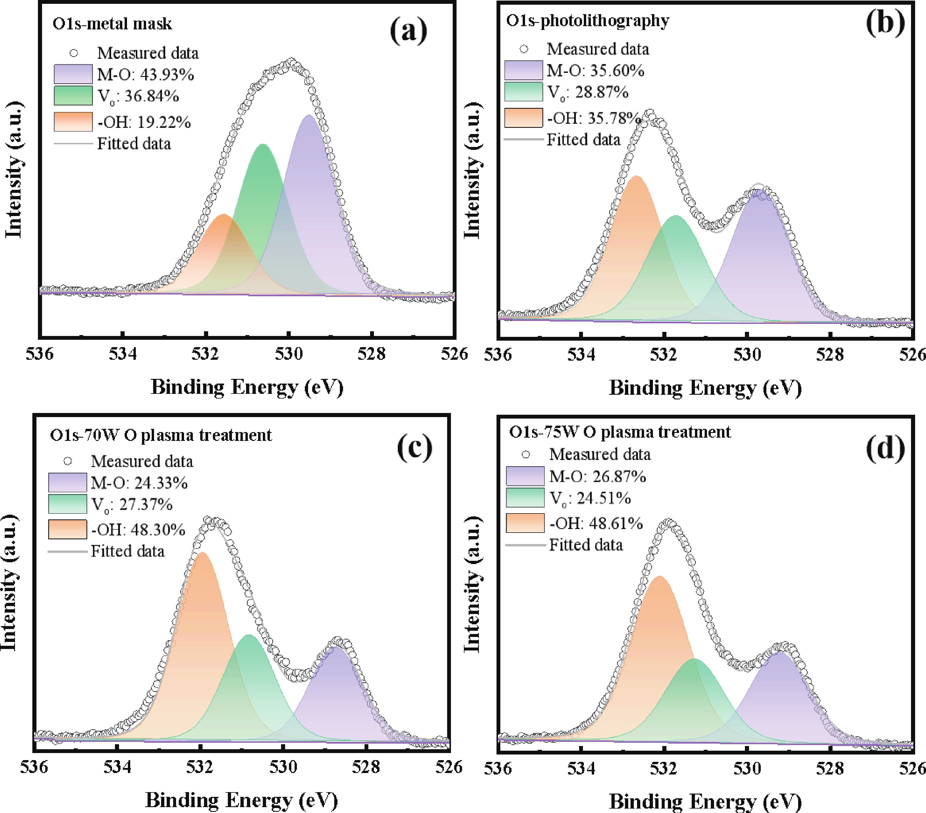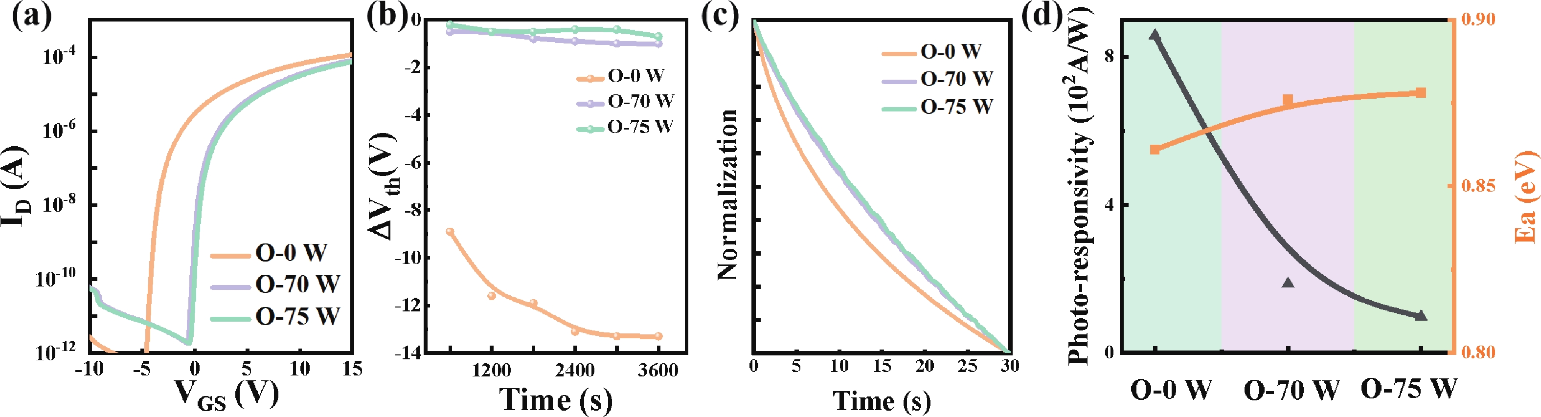 Table 2. Summary of the photoelectrical properties of TFTs following oxygen plasma treatment.