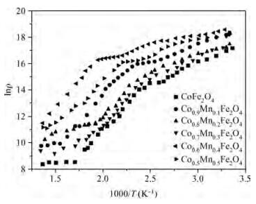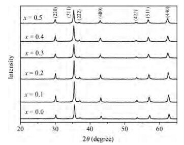 Table 1. Variation of the structural properties of Co-ferrite samples with Mn content.
