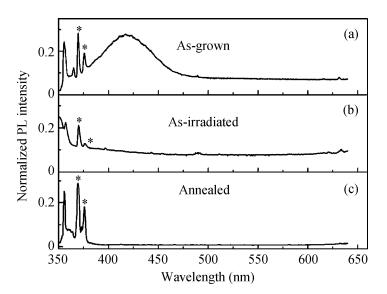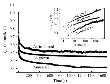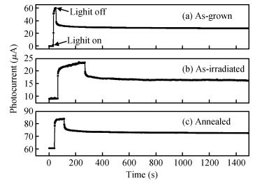 Abstract: Unintentionally doped GaN films grown by MOCVD were irradiated with neutrons at room temperature. In order to investigate the influence of neutron irradiation on the optical properties of GaN films, persistent photoconductivity (PPC) and low temperature photoluminescence (PL) measurements were carried out. Pronounced PPC was observed in the samples before and after neutron irradiation without the appearance of a yellow luminescence (YL) band in the PL spectrum, suggesting that the origin of PPC and YL are not related. Moreover, PPC phenomenon was enhanced by neutron irradiation and quenched by the followed annealing process at 900℃. The possible origin of PPC is discussed.