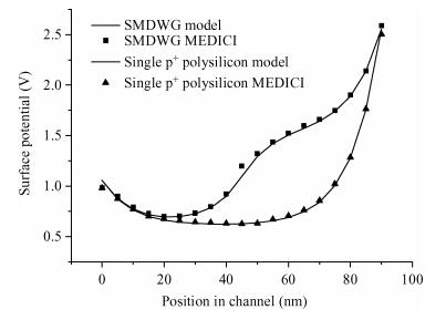 Key words: analytical model, surface potential, single material double work function gate (SMDWG) MOSFET, simulation, DIBL