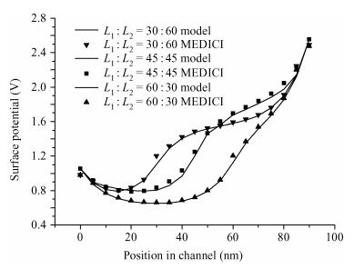Kumar M J, Chaudhry A. Two-dimensional analytical modeling of fully depleted DMG SOI MOSFET and evidence for diminished SCEs. IEEE Trans Electron Devices, 2004, 51:569 doi: 10.1109/TED.2004.823803