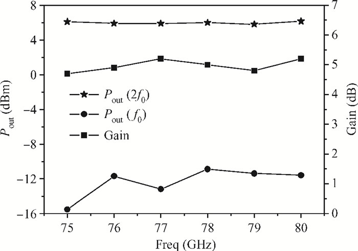 Abstract: A W-band frequency doubler MMIC is designed and fabricated using 1-μm InP DHBT technology. Active balun is employed to transform the single-ended signal into differential output. Push-push configuration loaded with harmonic resonant network is utilized to acquire the second harmonic frequency. A multi-stage differential structure improves the conversion gain and suppresses the fundamental frequency. The MMIC occupies an area of 0.55×0.5 mm2 with 18 DHBTs integrated. Measurements show that the output power is above 5.8 dBm with the suppression of fundamental frequency below -16 dBc and the conversion gain above 4.7 dB over 75-80 GHz.