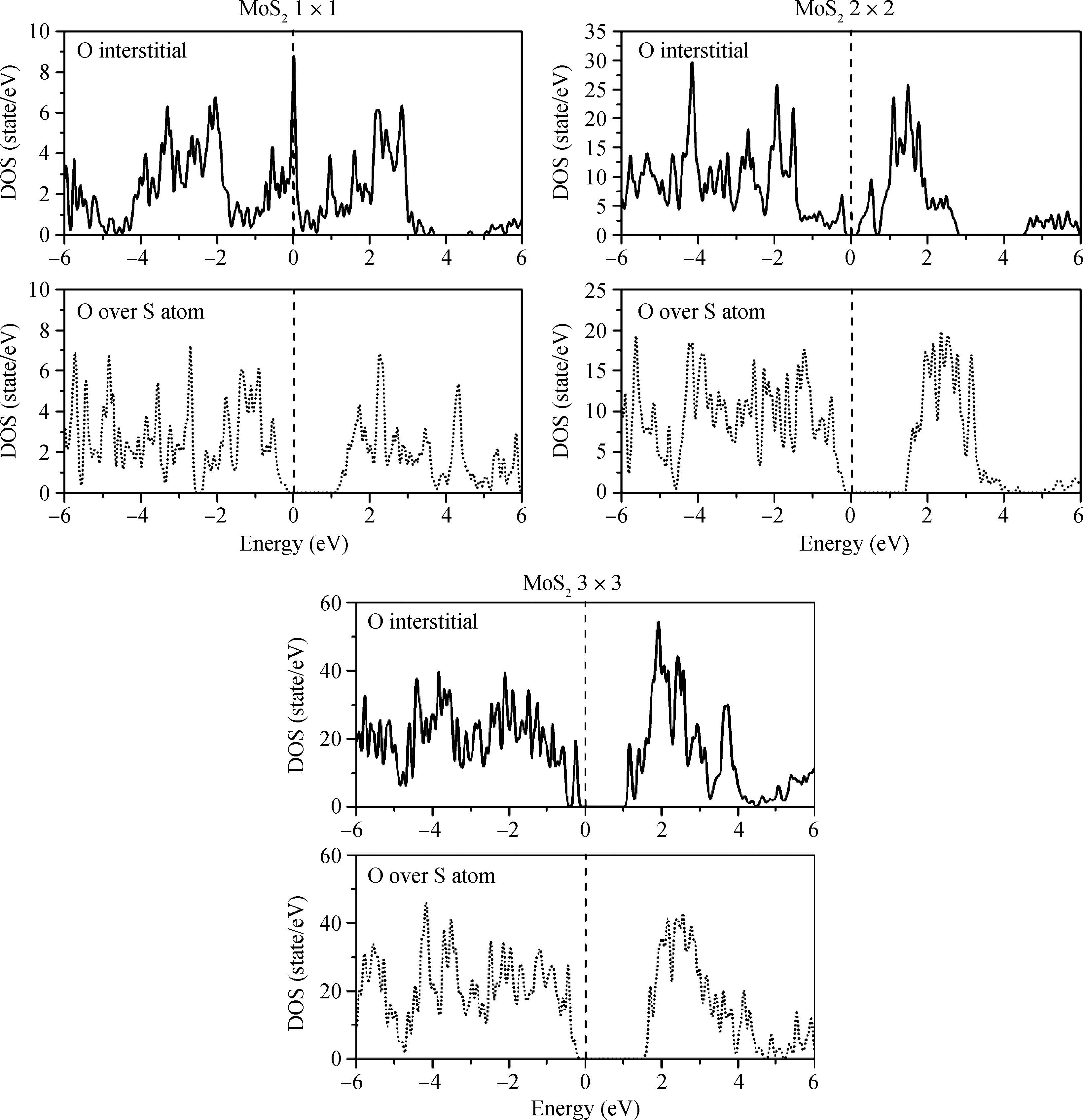 Key words: two-dimensional crystal, molybdenum disulfide, band gap, vacancy, oxygen
