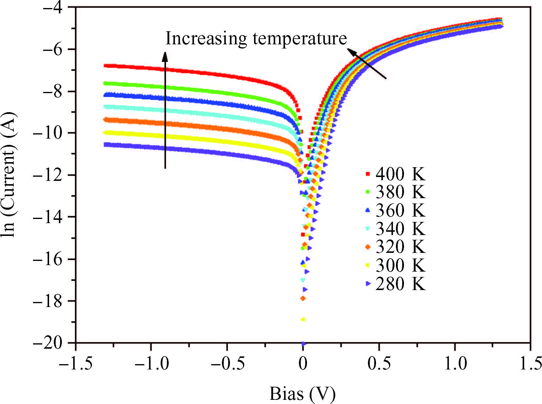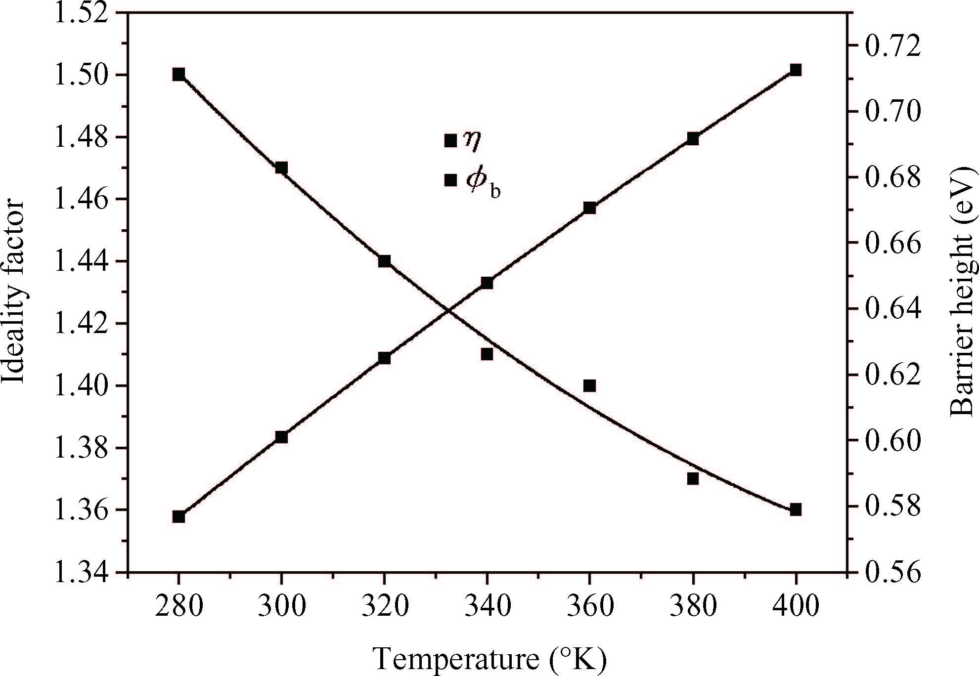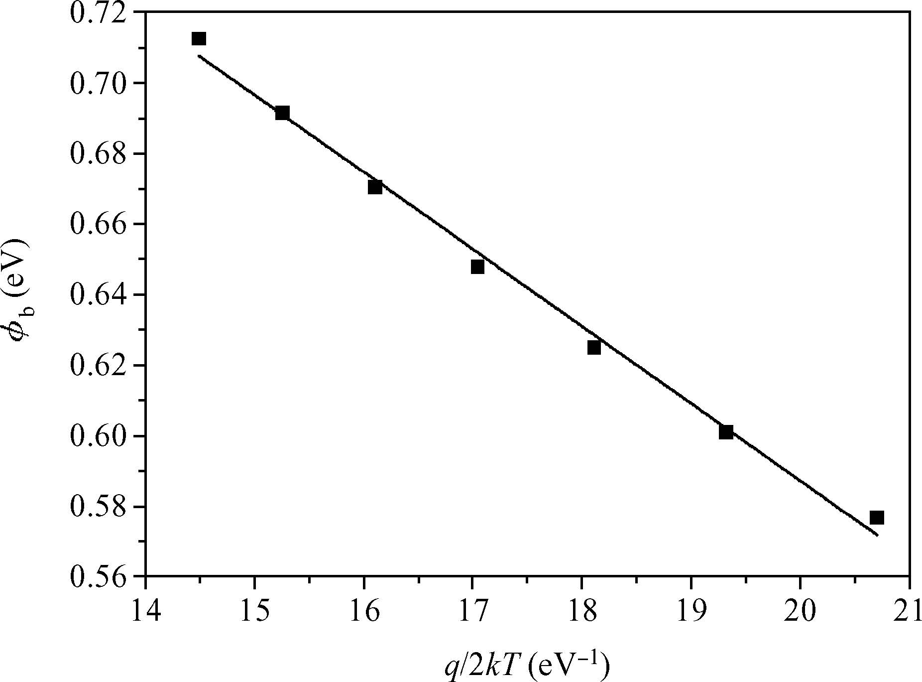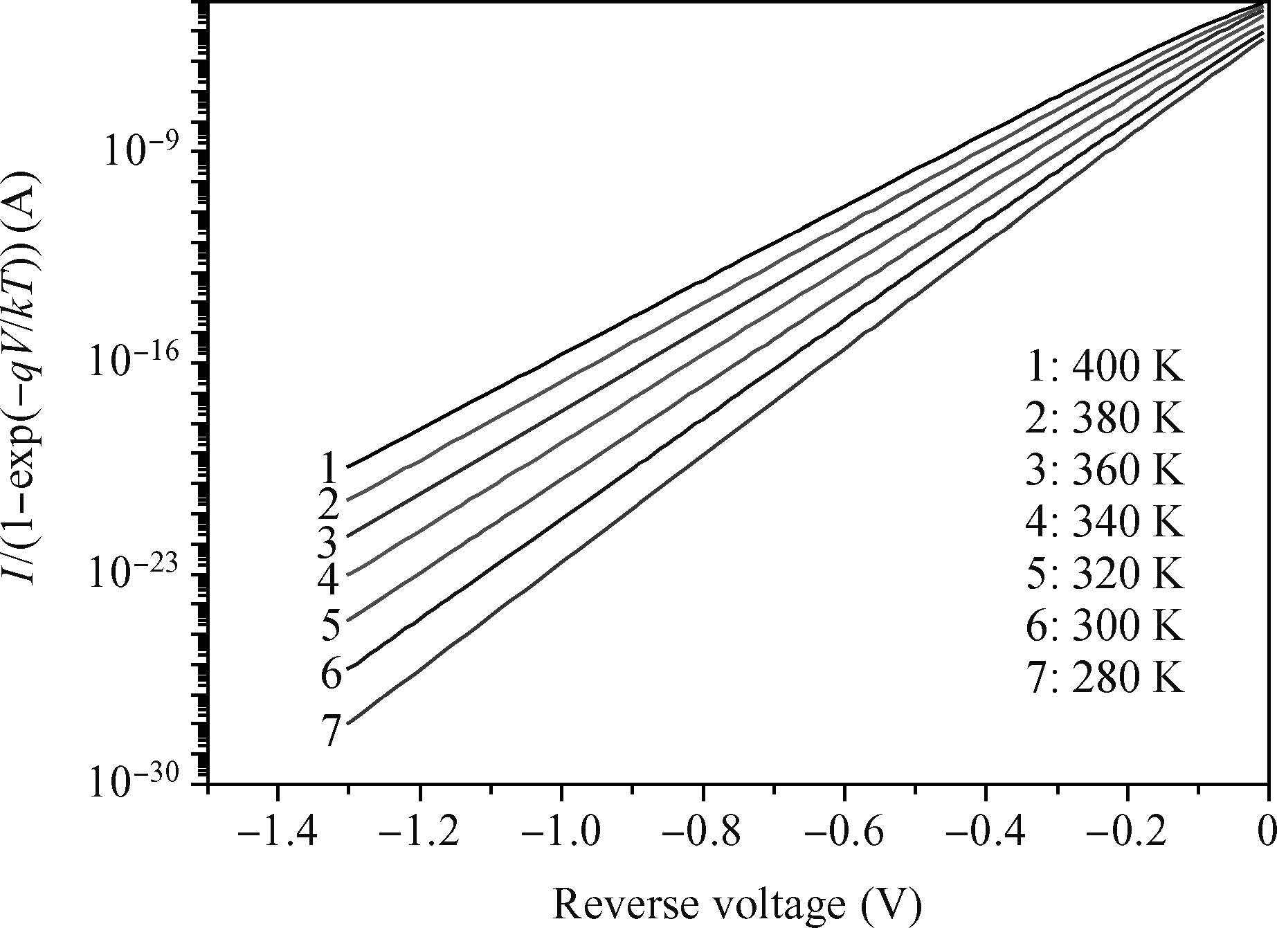 Abstract: We report the current-voltage(I-V) characteristics of the Schottky diode(Au/n-InP) as a function of temperature. The SILVACO-TCAD numerical simulator is used to calculate the I-V characteristic in the temperature range of 280-400 K. This is to study the effect of temperature on the I-V curves and assess the main parameters that characterize the Schottky diode such as the ideality factor, the height of the barrier and the series resistance. The I-V characteristics are analyzed on the basis of standard thermionic emission(TE) theory and the inhomogeneous barrier heights(BHs) assuming a Gaussian distribution. It is shown that the ideality factor decreases while the barrier height increases with increasing temperature, on the basis of TE theory. Furthermore, the homogeneous BH value of approximately 0.524 eV for the device has been obtained from the linear relationship between the temperature-dependent experimentally effective BHs and ideality factors. The modified Richardson plot, according to the inhomogeneity of the BHs, has a good linearity over the temperature range. The evaluated Richardson constant A* was 10.32 A·cm-2·K-2, which is close to the theoretical value of 9.4 A·cm-2·K-2 for n-InP. The temperature dependence of the I-V characteristics of the Au/n-InP Schottky diode have been successfully explained on the basis of the thermionic emission(TE) mechanism with a Gaussian distribution of the Schottky barrier heights(SBHs). Simulated I-V characteristics are in good agreement with the measurements[Korucu D, Mammadov T S. J Optoelectronics Advanced Materials, 2012, 14:41]. The barrier height obtained using Gaussian Schottky barrier distribution is 0.52 eV, which is about half the band gap of InP.