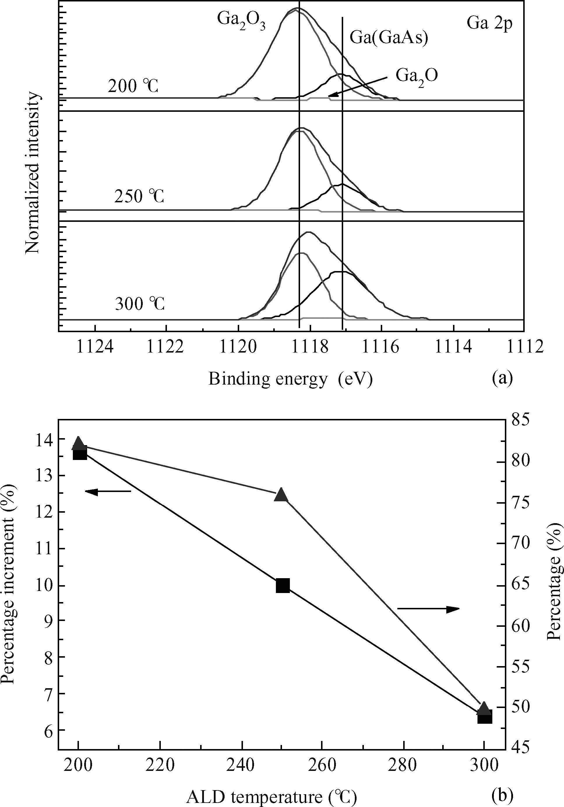 Abstract: We have investigated the temperature dependent interfacial and electrical characteristics of p-GaAs metal-oxide-semiconductor capacitors during atomic layer deposition(ALD) and annealing of HfO2 using the tetrakis(ethylmethyl) amino hafnium precursor. The leakage current decreases with the increase of the ALD temperature and the lowest current is obtained at 300℃ as a result of the Frenkel-Poole conduction induced leakage current being greatly weakened by the reduction of interfacial oxides at the higher temperature. Post deposition annealing(PDA) at 500℃ after ALD at 300℃ leads to the lowest leakage current compared with other annealing temperatures. A pronounced reduction in As oxides during PDA at 500℃ has been observed using X-ray photoelectron spectroscopy at the interface resulting in a proportional increase in Ga2O3. The increment of Ga2O3 after PDA depends on the amount of residual As oxides after ALD. Thus, the ALD temperature plays an important role in determining the high-k/GaAs interface condition. Meanwhile, an optimum PDA temperature is essential for obtaining good dielectric properties.