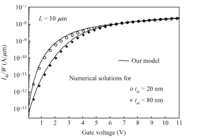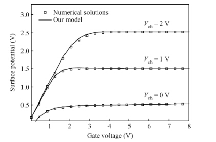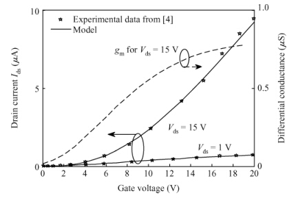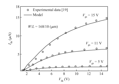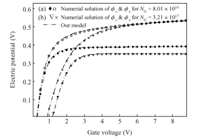 Abstract: Accounting for the deep Gaussian and tail exponential distribution of the density of states, a physical approximation for potentials of amorphous silicon thin-film transistors using a symmetric dual gate(sDG a-Si:H TFT) has been presented. The proposed scheme provides a complete solution of the potentials at the surface and center of the layer without solving any transcendental equations. A channel current model incorporating features of gate voltage-dependent mobility and coupling factor is derived. We show the parameters required for accurately describing the current-voltage(I-V) characteristics of DG a-Si:H TFT and just how sensitively these parameters affect TFT current. Particularly, the parameters' dependence on the I-V characteristics with respect to the density of deep state and channel thickness has been investigated in detail. The resulting scheme and model are successively verified through comparison with numerical simulations as well as the available experimental data.